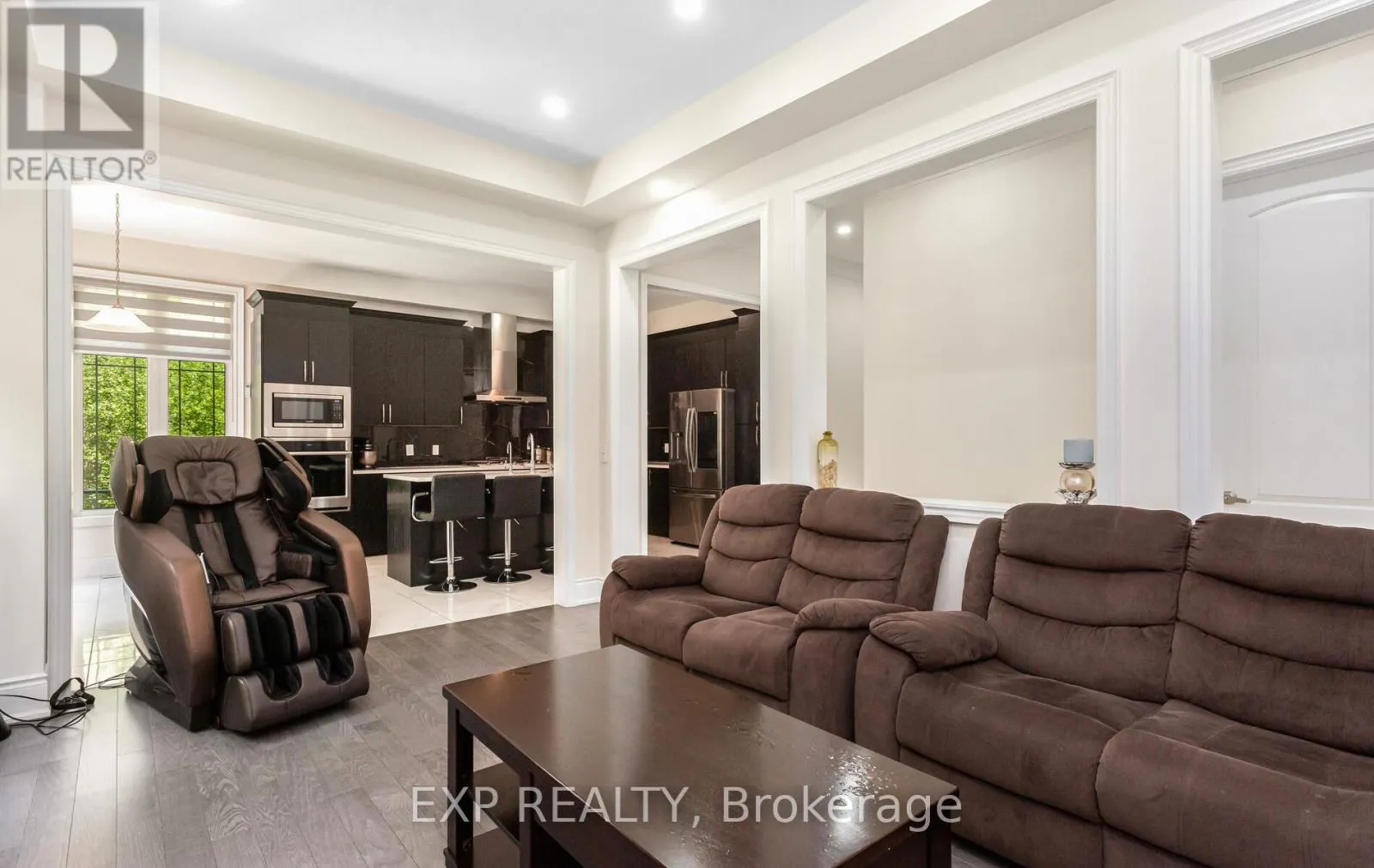 Old Church Rd & Innis Lake Rd Experience refined luxury in one of Caledon East most desirable communities. This stunning, fully upgraded corner detached home sits on a premium extra-deep 50' ravine lot, offering a rare combination of space, privacy, and scenic views. From the moment you arrive, the attention to detail and high-end finishes are evident. The open-to-above foyer and rich hardwood flooring set a sophisticated tone throughout the main level. The formal living and dining areas are thoughtfully positioned to enjoy natural light and serene views of the lush green trail behind, creating a perfect space for entertaining or relaxing with family. The heart of the home is the modern chefs kitchen, complete with premium quartz countertops, sleek custom cabinetry, and built-in appliances. The open-concept layout flows seamlessly into the spacious family room and breakfast area, making it ideal for both daily living and entertaining. The main floor library can be used as an office or an additional bedroom. Upstairs, you'll find four generously sized bedrooms, each offering access to four beautifully appointed bathrooms, ensuring comfort and privacy for everyone. The primary suite features a spa-like ensuite and ample closet space, while the additional bedrooms are perfect for growing families or guests. The unspoiled basement offers endless potential for a custom recreation area, gym, home theatre, or in-law suite ready for your personal touch. Perfect for large or multi-generational families, this home combines functionality with luxurious finishes in every corner. Located in a prestigious Caledon East neighborhood, you're just minutes from top-rated schools, scenic parks, extensive trails, and the Caledon East Community Complex. Don't miss this rare opportunity to own a ravine-lot home with countless upgrades in a prime location! (id:27476)