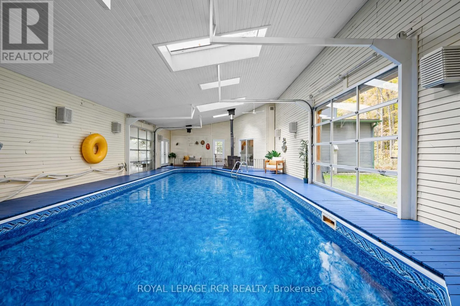 Cross Streets: Beech Grove Sdrd/Mountainview Rd. ** Directions: Hwy 9 east, south on Mountainview Rd to below Beech Grove Sdrd. **Public Open House Sat, Nov 22nd, 1:00pm-3:00pm**Enjoy pool days in every season - all from the comfort of home! Escape to your own private paradise on this beautiful 1-acre lot, set along a paved country road and surrounded by towering, mature trees. This spacious 2-storey home offers the perfect blend of comfort, character, and resort-style living with over 2,700 square feet of living space, 3 bedrooms, 4 bathrooms, and a stunning enclosed pool you can enjoy all year long. Step inside to discover a bright, open kitchen designed for both everyday living and entertaining. Featuring ceiling-height cabinetry, a centre island with breakfast bar, and modern pot lighting, this space flows seamlessly into the breakfast area with a walk-out to the pool-perfect for morning coffee or family brunches. Multiple living areas ensure there's room for everyone: a formal dining room with fireplace, a living room with a second fireplace, and a spacious family room ideal for gatherings. The enclosed pool area is truly a showstopper-complete with a sitting area warmed by a wood stove, two clear roll-up doors that open to let the breeze flow through, and patio doors leading to a covered outdoor dining space. Whether you're hosting summer get-togethers or relaxing on a quiet evening, this home was made for enjoying every season. The upper level offers three generously sized bedrooms and two bathrooms. The primary suite is a retreat of its own, featuring a bonus space currently used as a gym and a private 3-piece ensuite with shower. The additional bedrooms are equally spacious, with bedroom three featuring a walk-in closet. A second 3-piece bathroom with tub conveniently serves both bedrooms two and three, completing the upper level. Outside, you'll find a detached 2-car garage, a serene backdrop of mature trees, and endless space to unwind and reconnect with nature-all just a short drive from town amenities. (id:27476)
