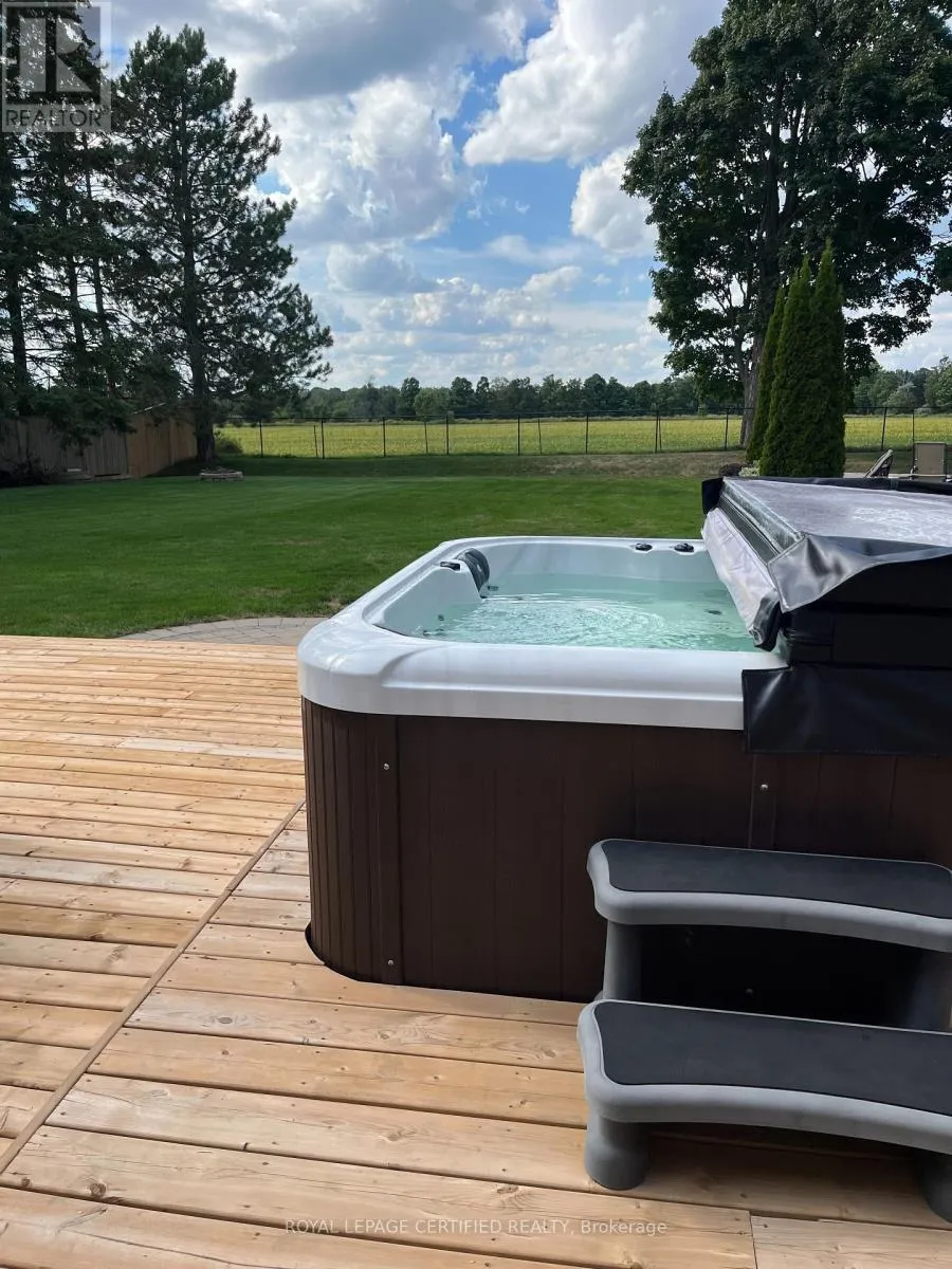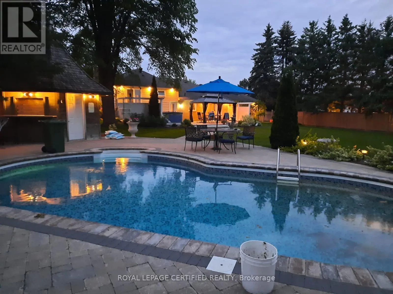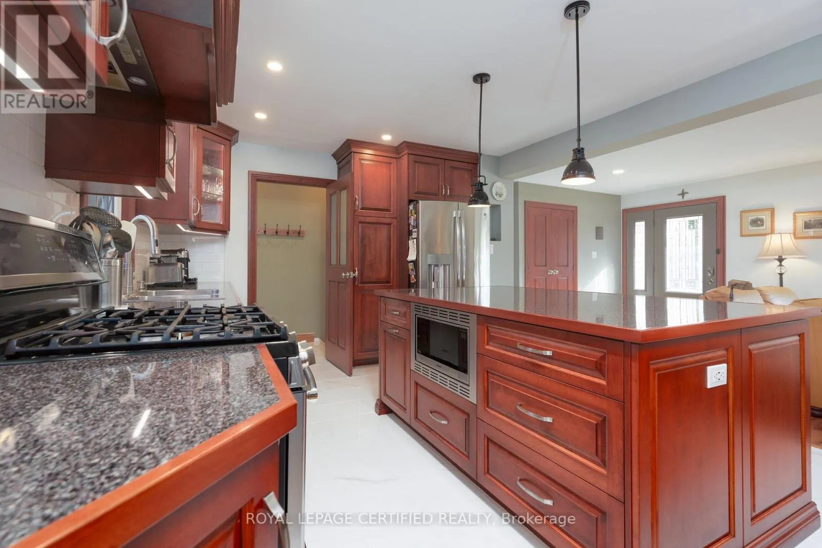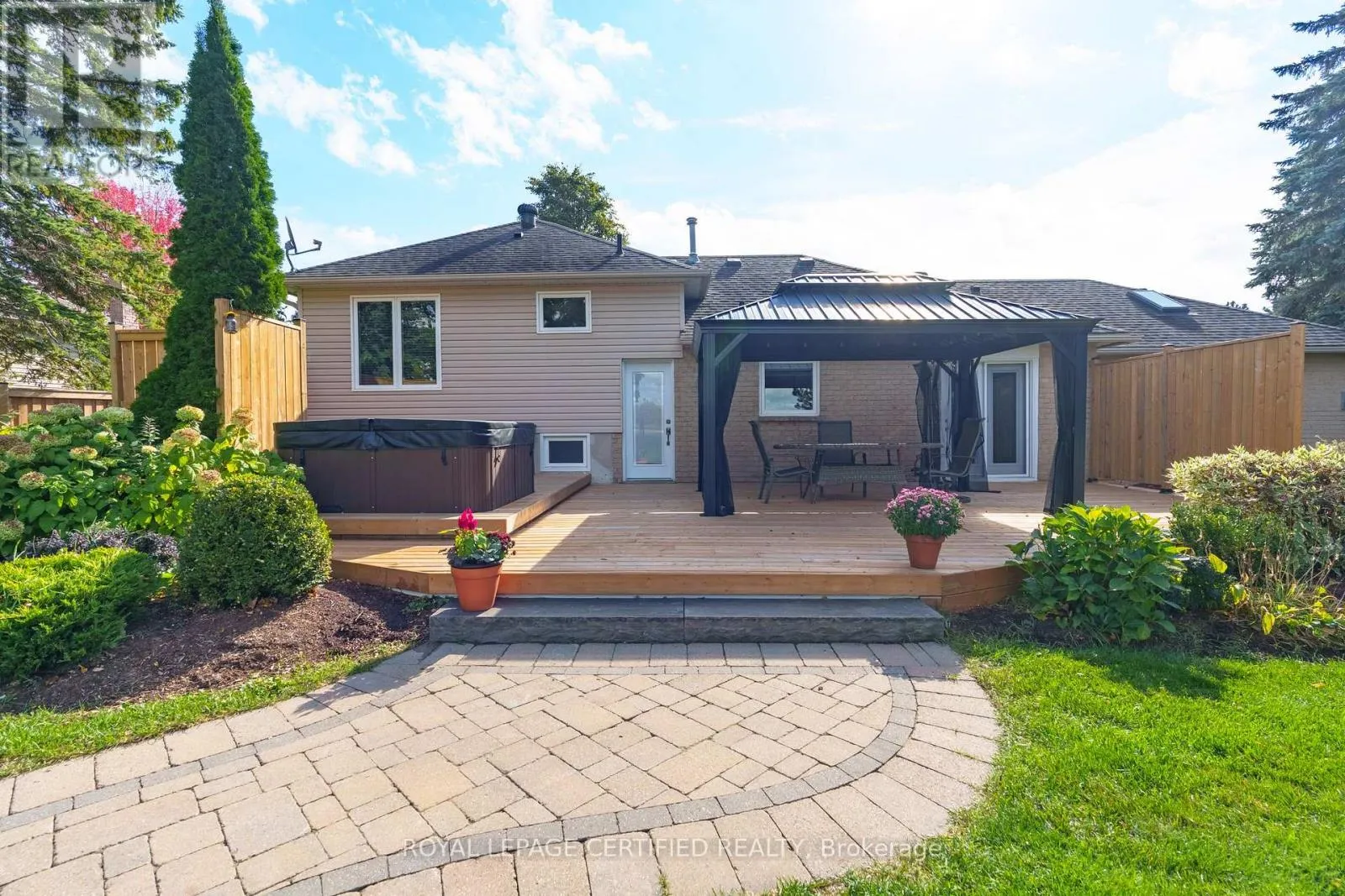 Hurontario St/Charleston Sdrd Welcome home to this Cozy 3-bedroom family gem . The upper level offers 3 spacious bedrooms, a 4-piece bath with a heated floor. Primary BR with double closets. The main floor flows beautifully with ceramic tile from the entrance through the bright, updated kitchen and hardwood floors in the cozy living and dining rooms. Living Room with gas fireplace and Skylight. Step outside to a brand-new 2-level deck (2025) with hot tub perfect for family fun. The private backyard oasis features a heated inground kidney-shaped pool, a change house and a garden Shed with no homes behind. A separate entrance leads to the lower level with family room, office, gas fireplace, 3-pc bath with heated floor, and large windows. The basement adds a rec room, 5th bedroom, heated floors and laundry. The 2-car garage is converted to a nanny suite with gas fireplace and 3-pc bath. Interlocking Stone(2020) and 200-amp Service complete this wonderful home. (id:27476)