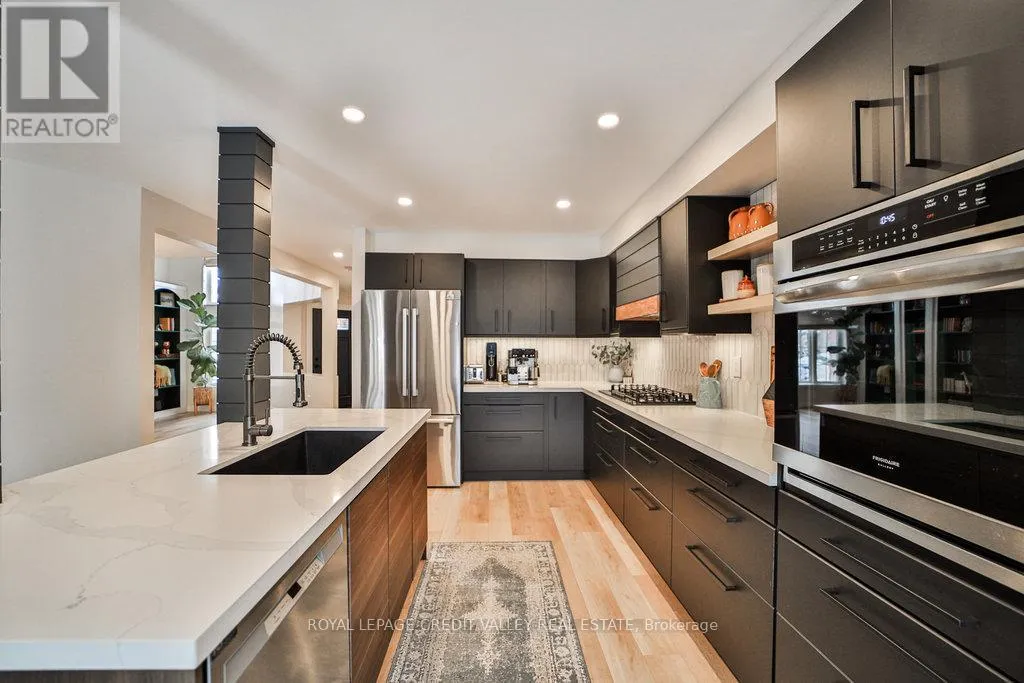 Landsbridge/Queensgate Immaculate detached home in a sought-after Bolton neighbourhood, offering approximately 2,650 sq. ft. of living space including a fully finished basement with a separate entrance. This beautifully renovated residence features a bright open-concept layout, a modern kitchen with sleek finishes and premium appliances, and spacious principal rooms filled with natural light. The lower level provides versatile living options ideal as an in-law suite, guest quarters, or rental unit. The private, professionally landscaped backyard is fully fenced and perfect for entertaining or relaxation. Walking distance to schools, parks, shops, and dining. A true turnkey home with exceptional value. Windows - 2025 | Roof - 2015 |Furnace - 2015 | Rental Income - $1,850 (id:27476)