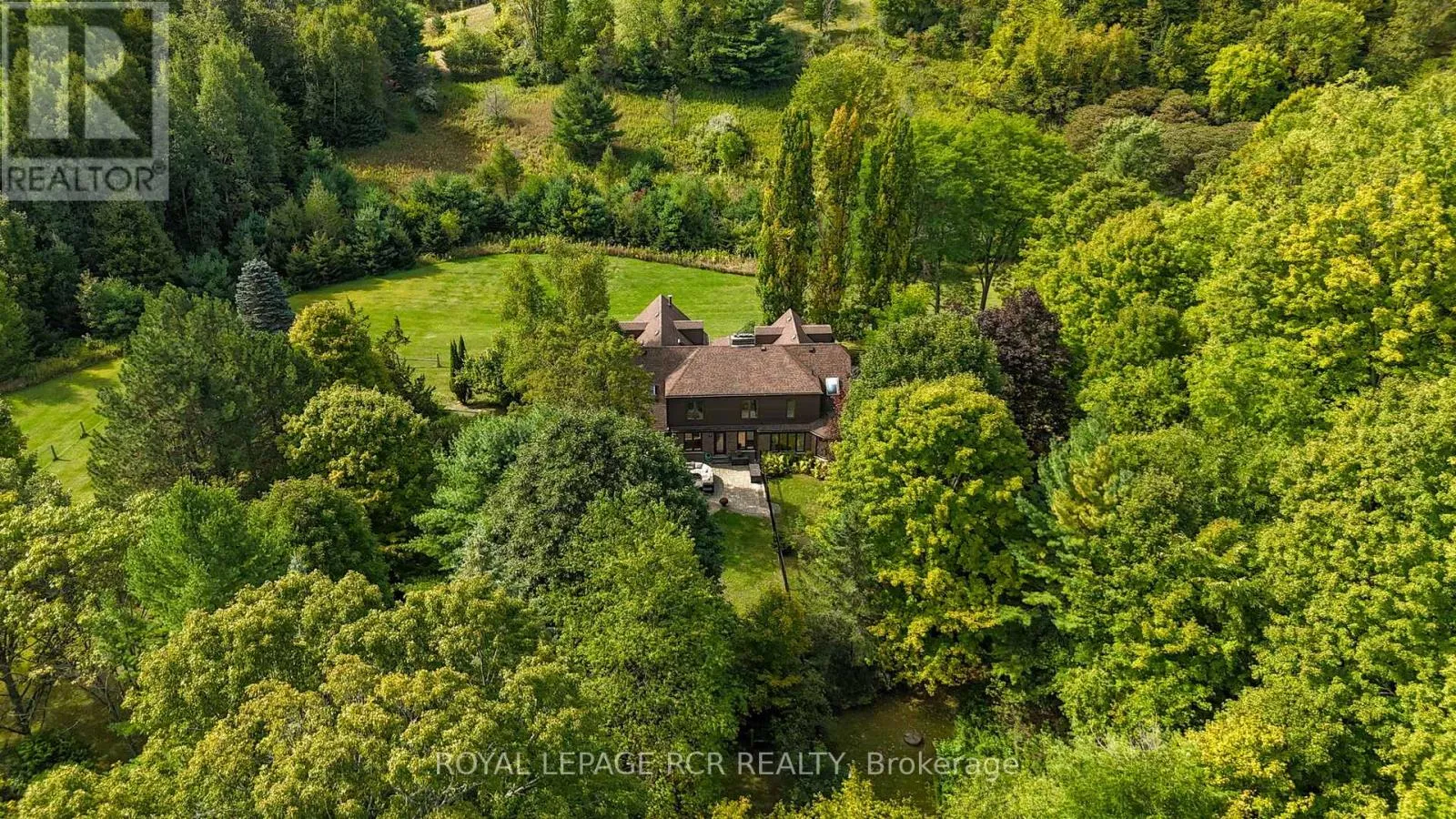 Cross Streets: Hwy 50 & Finnerty Side Rd. ** Directions: North on Hwy 50 to Finnerty Side Rd. Experience tranquility and endless opportunity on this breathtaking 10-acre retreat, surrounded by majestic mature trees offering complete privacy. Hidden away from the everyday yet just minutes from local amenities, this idyllic woodland haven blends peaceful seclusion with modern convenience-perfect for those seeking a versatile lifestyle in nature's embrace. A long, winding driveway creates a true sense of arrival, leading to a custom-built home thoughtfully designed to showcase its natural surroundings. Step through the inviting front foyer into the main level, where hardwood floors and warm, welcoming spaces invite you to relax. The open-concept living room offers comfort and warmth while the expansive family room impresses with a stunning stone wall feature, soaring open-to-above ceilings, and walk-outs to both the back patio and spacious deck, ideal for entertaining or quiet reflection. At the heart of the home, the bright eat-in kitchen is filled with natural light, its large windows framing beautiful views of the property. A convenient mudroom with side door entrance also connects to the attached two-car garage. The main level also features a generous bedroom with 3-piece ensuite, a second bedroom, and a full 4-piece bath. Upstairs, discover striking architectural details in the loft and study area, where skylights and large windows bathe the space in sunlight. The upper level also boasts a spacious primary suite with 3-piece ensuite, and ample closets, along with a large skylit laundry room for everyday ease. The partially finished lower level offers exceptional potential for multi-generational living or growing families. Enjoy a large recreation room with walk-out, a 3-piece bath with sauna, a second recreation space, wet bar, and direct access to the yard. Whether you dream of expanding, relaxing, or simply savouring the quiet beauty of Caledon, this private sanctuary is ready to welcome you home. (id:27476)