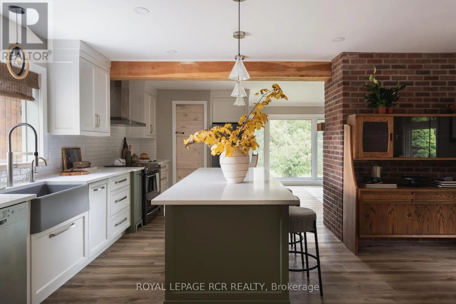 The Grange/Mountainview Set on nearly 14 acres in one of Caledon's most desirable pockets, this spacious 3 + 2 bedroom, 5-bathroom home offers a rare two-in-one layout AND each home with its own private entrance, above-grade living space, walkout basement, and separate laundry (!!!). Perfect for multi-generational living or flexible use, the property combines space, privacy, and natural beauty. A mature, tree-lined driveway welcomes you to the main residence, where a professionally designed kitchen with custom cabinetry and island (2021) pairs beautifully with a thoughtfully updated bathroom. The bright and spacious primary suite includes a cozy sunroom and private balcony overlooking the expansive backyard, along with generous closet space. At the heart of the home, a courtyard garden and BBQ terrace, create a seamless indoor-outdoor connection-ideal for entertaining or quiet evenings. On the other side of the home, a generous-sized apartment offers a newly renovated bathroom and a massive picture window that floods the space with natural light, perfect for extended family, guests, or income potential. Large windows throughout frame views of rolling lawns, mature forest, and a tranquil pond, filling the interior with natural light and warmth. The grounds are private and picturesque, featuring wooded trails that wind through the property-perfect for walking, exploring, or simply enjoying the landscape year-round. Outside, a classic barn offers space for a hobby farm, workshop, or additional storage. With income potential from the self-contained apartment, this property perfectly balances lifestyle, family, and investment. Located at The Grange and Mountainview, minutes to golf, groceries, farm shops, and Caledon East, with convenient access to major routes and the GO Station for easy commuting. Under Forest Management (2025 taxes: $5,005). (id:27476)
