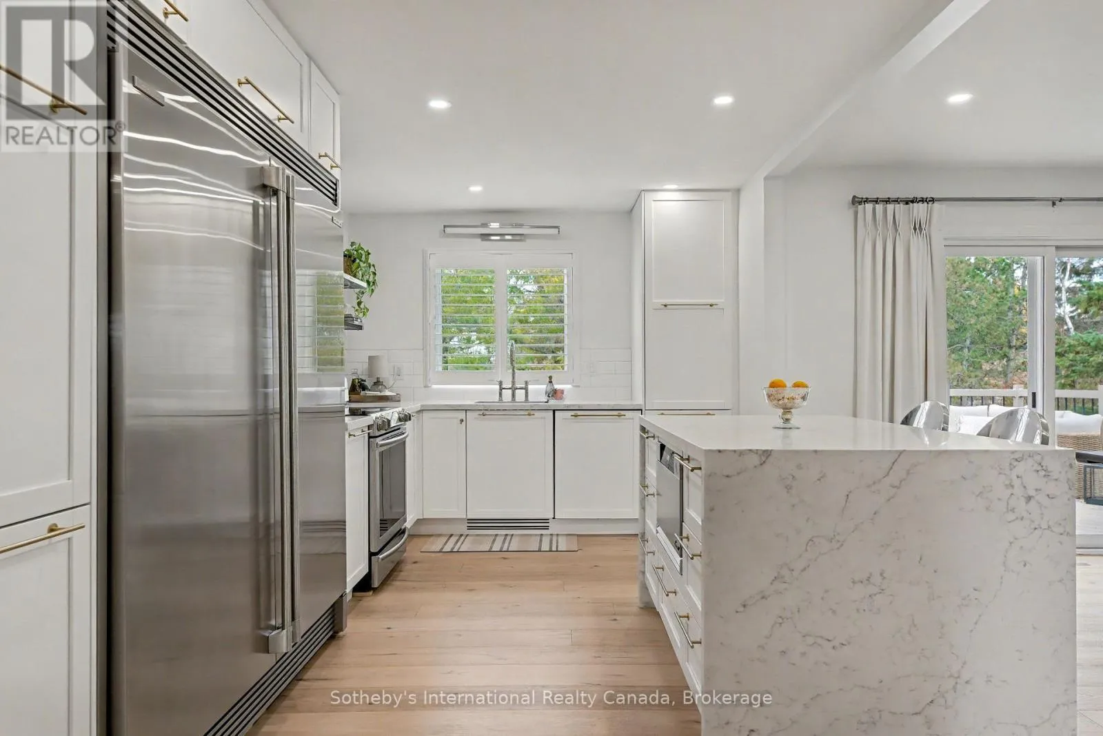 Cross Streets: Patterson Side Road and Highway 50. ** Directions: North on Hwy 50 to Patterson Side Rd, North on Brawton Dr. Welcome to 5 Brawton Drive, a beautifully renovated bungalow with walkout lower level, nestled in the heart of the Village of Palgrave - one of Caledon's most sought-after and family-friendly communities. This elegant 3+1 bed, 3 bath renovated residence blends timeless sophistication with everyday comfort, offering nearly 3000 sqft of finished living space surrounded by mature trees and scenic privacy. Step inside to find a bright, open-concept main level anchored by a custom white kitchen featuring thick quartz counters, high-end appliances, and a statement waterfall island perfect for gathering. Sunlight pours through large windows, illuminating wide-plank white oak hardwood floors and seamless transitions from kitchen to dining to a walk-out deck. Retreat to the restful side of the home with 3 beds, including a primary suite with ensuite bath and walk-in closet. Clever custom built-ins create a wonderful craft or workspace in the third bedroom. Note the tailored finish to all the bathrooms, with natural tile selections and stone topped vanities. The spacious walk-out lower level feels like an extension of the main floor - bright and fully finished with family lounge, built-in wet bar, home office area, and direct access to the backyard. With an additional bedroom and full bathroom with heated flooring on this level, you can comfortably welcome guests. Outdoors, the deep private lot offers lush lawn, raised garden beds, a play structure, and serene backdrop of Palgrave's natural beauty. Palgrave residents enjoy a rare blend of rural tranquility and connected community living - from local trails like the Caledon Trailway and Equestrian Park, to nearby hiking and cycling through the Albion Hills. The area is home to the highly regarded Palgrave PS and offers quick access to Bolton, Caledon East, and Hwy 50 for commuting. This is more than a home - it's a lifestyle defined by fresh air, space to grow, and a welcoming small-town charm only Palgrave can offer. (id:27476)