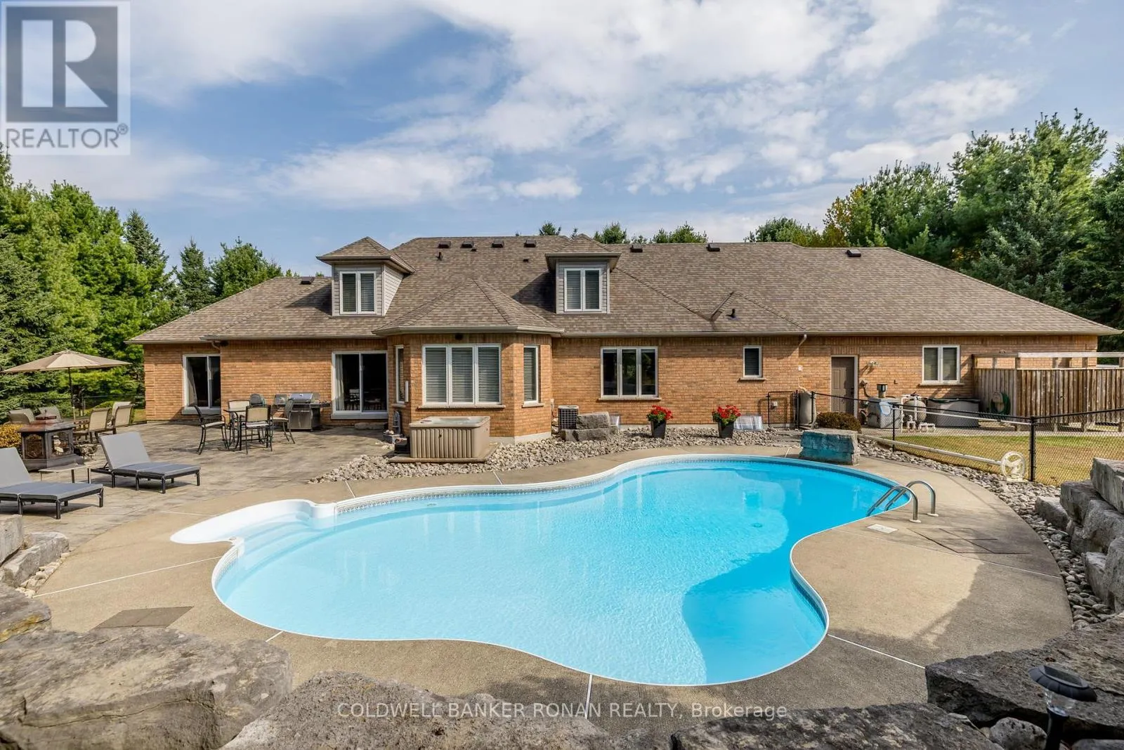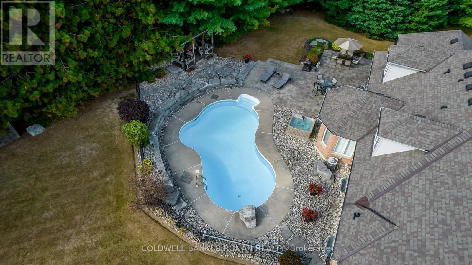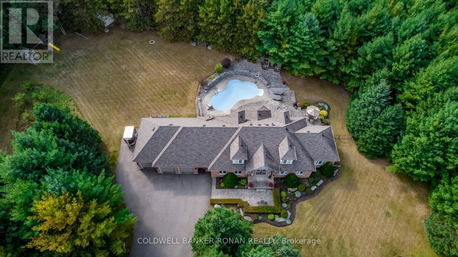 Mount Hope Rd - Indiana Dr Welcome to this exceptional 2-storey custom built estate home, perfectly nestled on a private and mature treed 4.83 acre lot. The kitchen is surrounded by windows, and fills the space with natural light. The family room, featuring a gas fireplace and a walkout to the patio, provides a cozy gathering space, while the formal dining room is ideal for hosting. An elegant office with french doors adds charm and functionality for remote work or study. This home offers 5 bedrooms, including a main-floor primary suite with a walk-in closet, private ensuite, and walkout access to the back patio. Upstairs, you'll find four spacious bedrooms, including one with a private 2-piece ensuite, ensuring comfort for family and guests. Outdoors, enjoy time with family or entertaining guests with a spectacular inground pool, 65 yard golf hole and a versatile outdoor rink, perfect for skating in the winter and other activities in the warmer months. The expansive backyard provides ample space, sheds for storage, surrounded by lush greenery, and a private trail to access the Caledon Trailway. Additional highlights include an oversized 3-car garage, mudroom/laundry room with garage access and walk-up from the basement. Partly finished basement/rec room/man cave/play zone, and large amounts of additional storage. Don't miss your opportunity to own this incredible home - schedule your showing today! (id:27476)