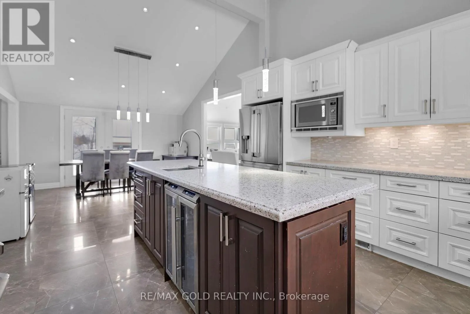 King-Mclaughlin (North) Exceptional home offering 3 bedrooms and 2.5 bathrooms, highlighted by soaring vaulted ceilings and expansive great and family rooms. Open-concept oak kitchen with granite countertops flows into the dining area with fireplace and walk-out to deck. Renovated powder room and main bath. The primary suite features walk in closet and a spa-inspired 4-piece ensuite with Jacuzzi.The basement includes an office with above-grade windows and a 2-piece bath (unfinished). Completed by an attached 2-car garage with basement access and a rare detached heated 3-car garage/workshop. 200-amp service and two wells, including one dedicated for gardening. (id:27476)