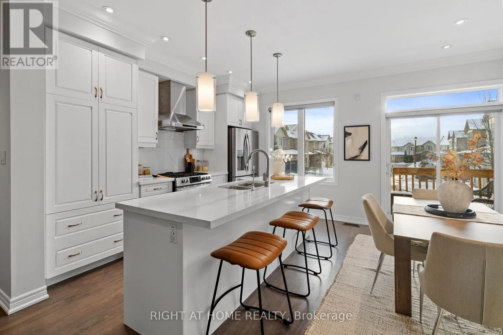 Cross Streets: Kennedy & Mayfield. ** Directions: Learmont Ave & Benadir Ave. Like-new end-unit townhome built by Treasure Hill, featuring thousands of dollars in upgrades throughout. Carpet-free with laminate and vinyl flooring, this home offers modern interior and exterior pot lights and a fully upgraded kitchen with quartz countertops and an abundance of cabinetry. The well-designed layout includes 3 spacious bedrooms, 2.5 bathrooms, an upper-level office/den, and a primary bedroom with two walk-in closets. The finished basement adds exceptional value with a full bathroom, wet bar featuring quartz counters, a beverage fridge, and a second dishwasher-ideal for entertaining or extended living. The end-unit design allows for the potential of a secondary suite with a side entrance. Additional highlights include 9 ft ceilings, multiple work-from-home office spaces, new appliances, open backyard views, and enhanced security with three exterior cameras. The property features an extended driveway with no sidewalk, offering parking for up to three vehicles (one in the garage, two on the driveway).Premium upgrades include an owned RO water system, owned Whirlpool water softener, quartz countertops in the kitchen, bathrooms, and basement wet bar. Conveniently located close to parks, schools, Highway 410, and the Southfields Community Centre-this home offers an exceptional layout and outstanding functionality for modern living. (id:27476)