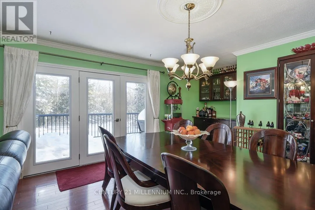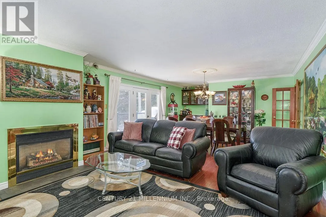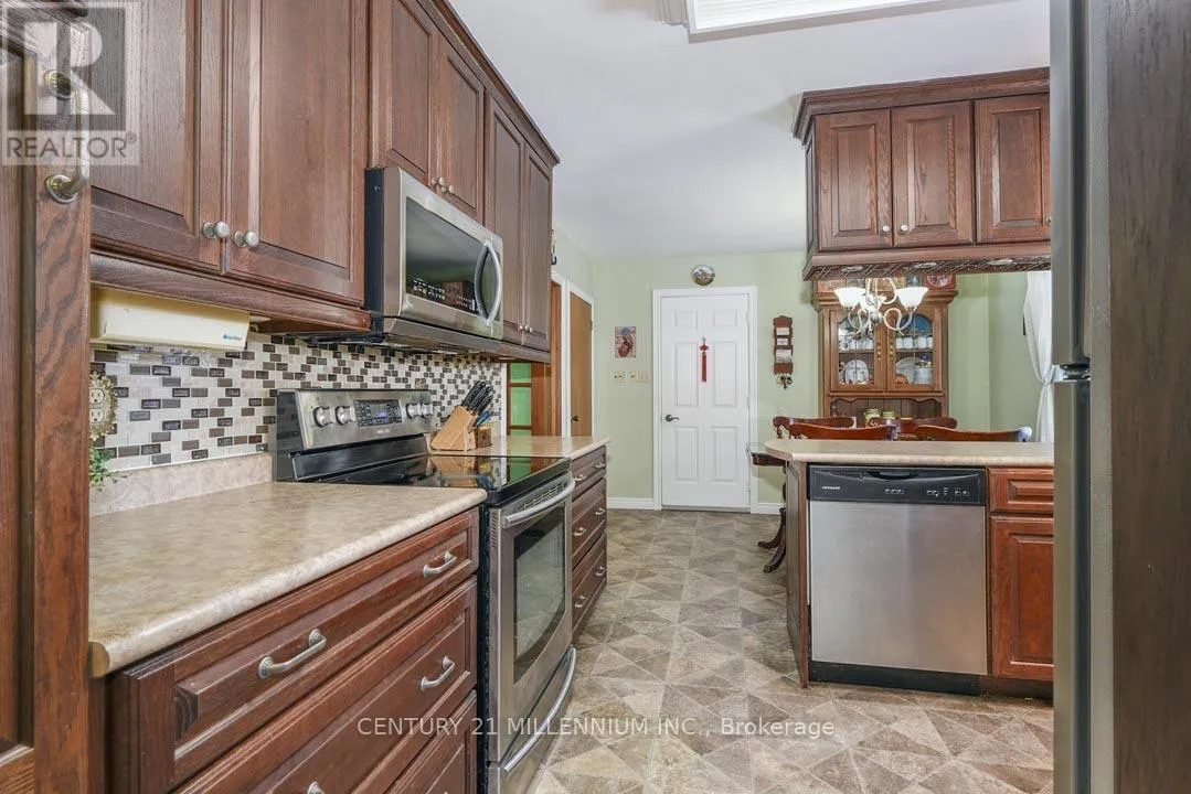 Cross Streets: Charleston, North On Horseshoe. ** Directions: Charleston Sdrd, North On Horseshoe Hill Rd. Located on a paved country road, this 3+2 bedroom, 3-bathroom raised bungalow set on a private, treed 2.89-acre lot features a pond, stream, bush, trails, fenced backyard, circular driveway, and a detached approx. 24 ft. x 30 ft. outbuilding with excellent workshop potential. An ideal property for nature lovers, hobbyists, and extended family living! The main level features an oak kitchen with stainless steel appliances, bright living spaces, and a south-facing deck overlooking the private backyard. The Living room offers hardwood flooring and a propane gas fireplace. Fabulous for extended family or in-law living, the finished basement with above-ground windows includes a spacious rec room with a gas woodstove, laundry area, hobby/workshop, 3-piece bath, bedrooms #4 & #5, and a cold room. The home has a steel roof, vinyl siding, and vinyl casement/awning windows, along with a ground-source heat pump and a fenced backyard. The attached, insulated approx. 23 x 23-foot garage is propane-heated w/ 11 ft. ceiling, a 16 x 10 ft. insulated roll-up steel door, and includes a vertical platform lift (elevator) for enhanced accessibility. An 8 ft. x 12 ft. greenhouse has water, hydro and propane heater. A fabulous opportunity combining privacy, functionality, and natural beauty in a tranquil setting close to major commuter highways 10, 9, and Airport Road. Minutes to all shopping amenities and hospital in nearby Orangeville, 20 mins to Brampton, 1hr to Toronto and 45 minutes to Pearson Airport. (id:27476)