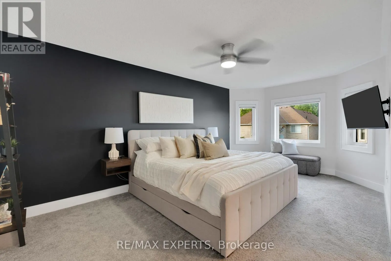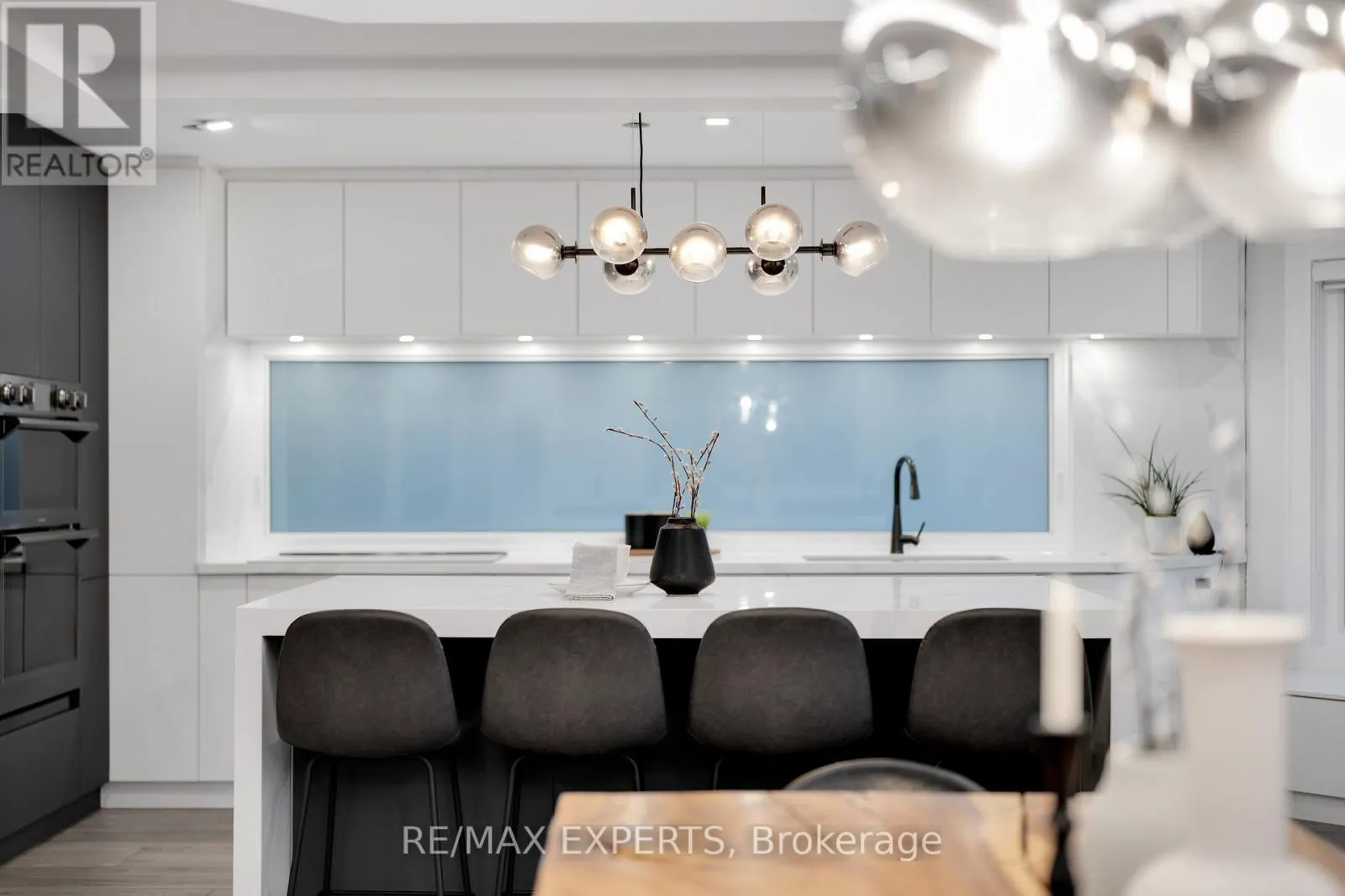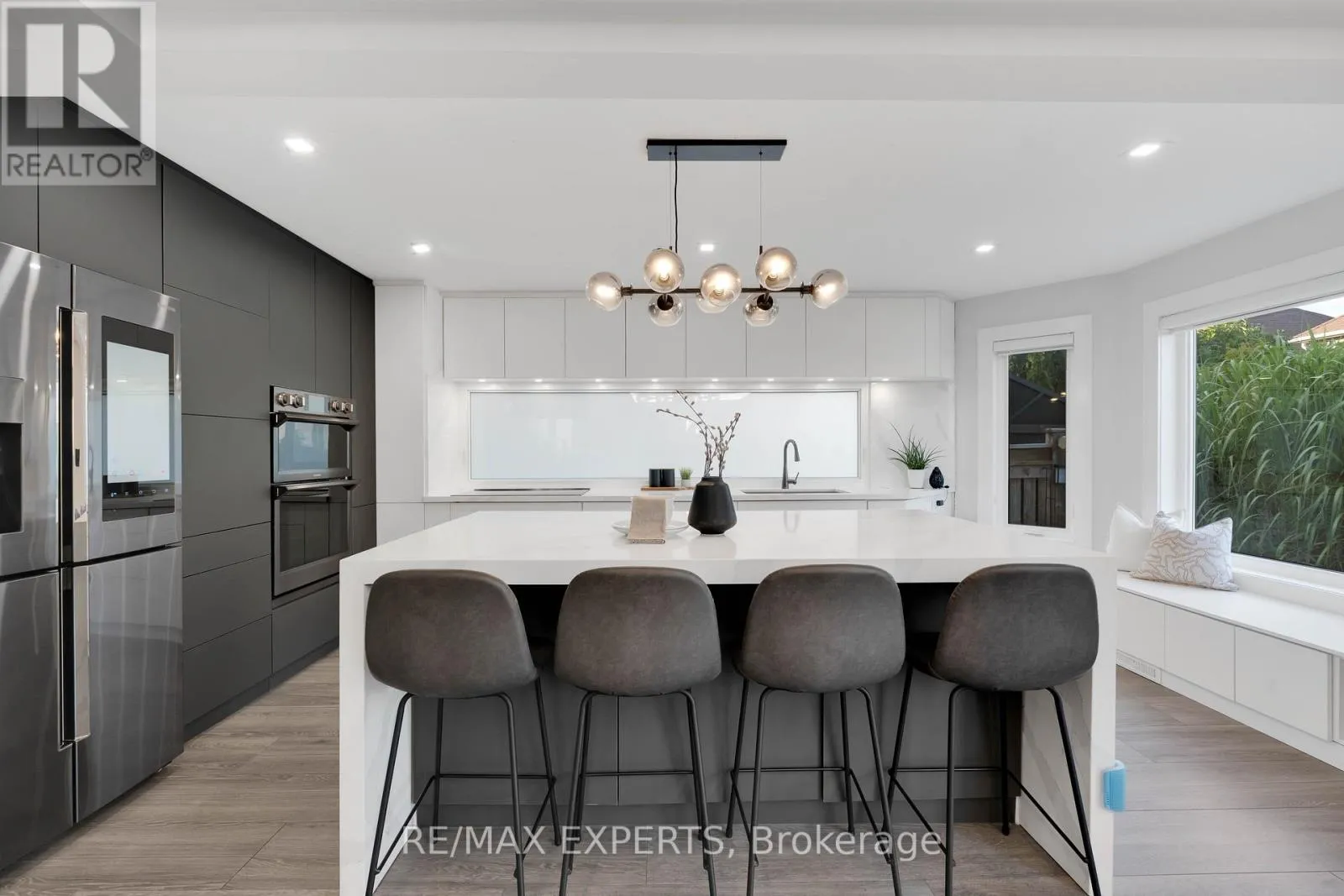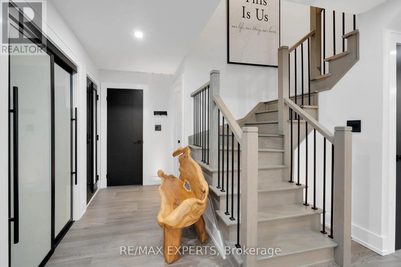 Harvestmoon/King Welcome to refined modern living in the heart of sought-after Bolton West. This exceptional detached residence showcases striking curb appeal, a double-car garage, and a beautifully landscaped lot that sets the tone for the elegance found within. Step inside to a fully customized interior where meticulous attention to detail is evident throughout.The open-concept main floor is anchored by a stunning chef-inspired kitchen featuring a dramatic waterfall island, premium built-in appliances, and a sophisticated combination of matte oak and crisp white cabinetry. Oversized windows bathe the space in natural light, highlighting the designer finishes and wide-plank flooring.The seamless flow between the kitchen, dining, and living areas creates an ideal setting for both everyday living and entertaining. Contemporary lighting and clean architectural lines further enhance the home's modern aesthetic.Thoughtfully upgraded from top to bottom, this turnkey home offers luxury, comfort, and style in one of Bolton's most desirable family-friendly communities. (id:27476)