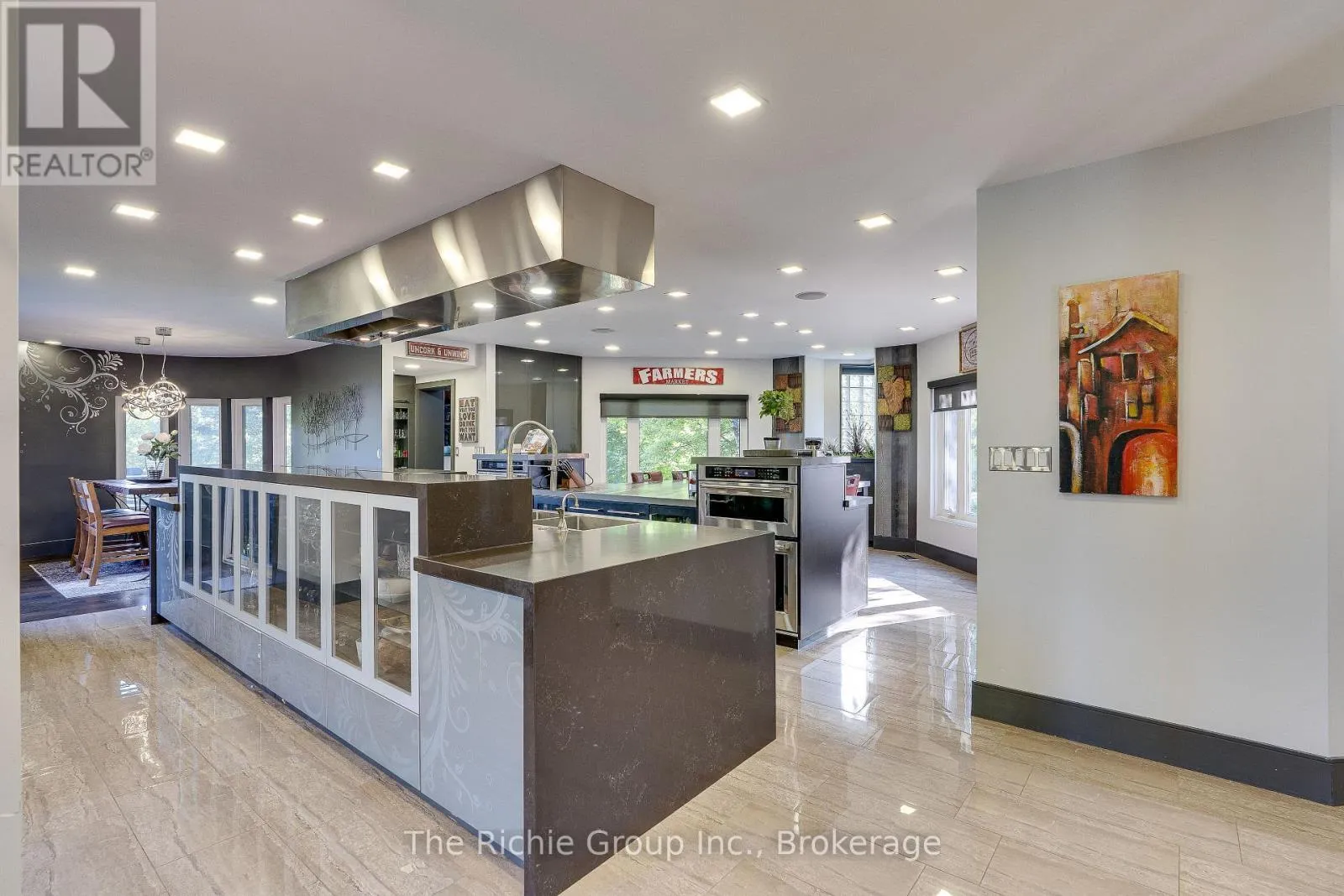 Cross Streets: Old Church Road and Humber Station Road. ** Directions: Old Church and Humberstation Rd. Sought after private 4 acre lot in a prestigious estate subdivision!This comprehensively renovated home offers a sophisticated living environment designed for those who value privacy, quality, and understated luxury. From the showpiece gourmet kitchen curated for high-level entertaining and everyday functionality. premium appliances, double wall ovens, dual dishwashers, and a discreet telescoping television & A walk-in pantry with secondary access-ideal for catered events or seamless hosting. Extending from the Kitchen is an opulent living room with vaulted ceiling & massive windows offering abundant natural light.The primary suite serves as a secluded retreat, complete with balcony & The spa-inspired eight-piece ensuite is thoughtfully appointed with a frameless glass shower, dual rain heads, and body jets, delivering a refined wellness experience for couples to enjoy! Multi level living allows for home office convenience . Don't miss the third-level covered crows nest deck offers panoramic vistas-an ideal setting for sunset views or evening relaxation. The fully finished walk-out lower level provides independent living accommodations, featuring a secondary kitchen, living area, bedroom, full bath, private office, and direct patio access to the gardens-well-suited for extended family, guests, or executive live-in support. A rare four-car garage with dedicated workshop space and a rear bay door for direct yard access is a car and hobbyist delight. The landscaped grounds are designed for both leisure and low maintenance, with curated gardens, a backyard fire feature for outdoor gatherings, a level lawn for recreation, and a secondary driveway offering ample additional parking, including space for recreational vehicles.Conveniently Set between Caledon East and Bolton, This property represents a rare convergence of architectural sophistication, functional luxury, and serene natural surroundings-offering an executive lifestyle without compromise. (id:27476)