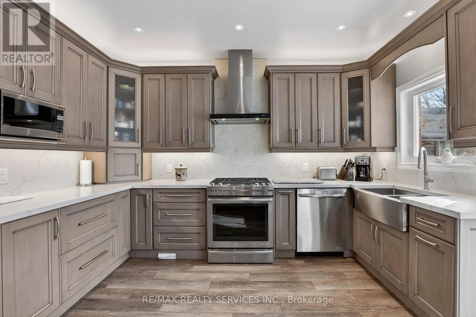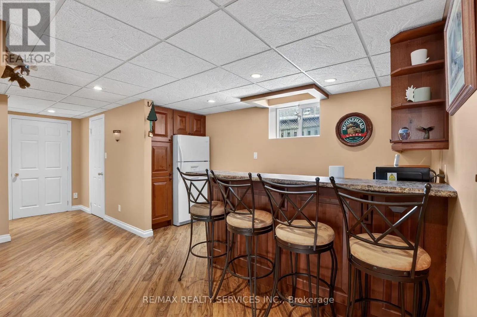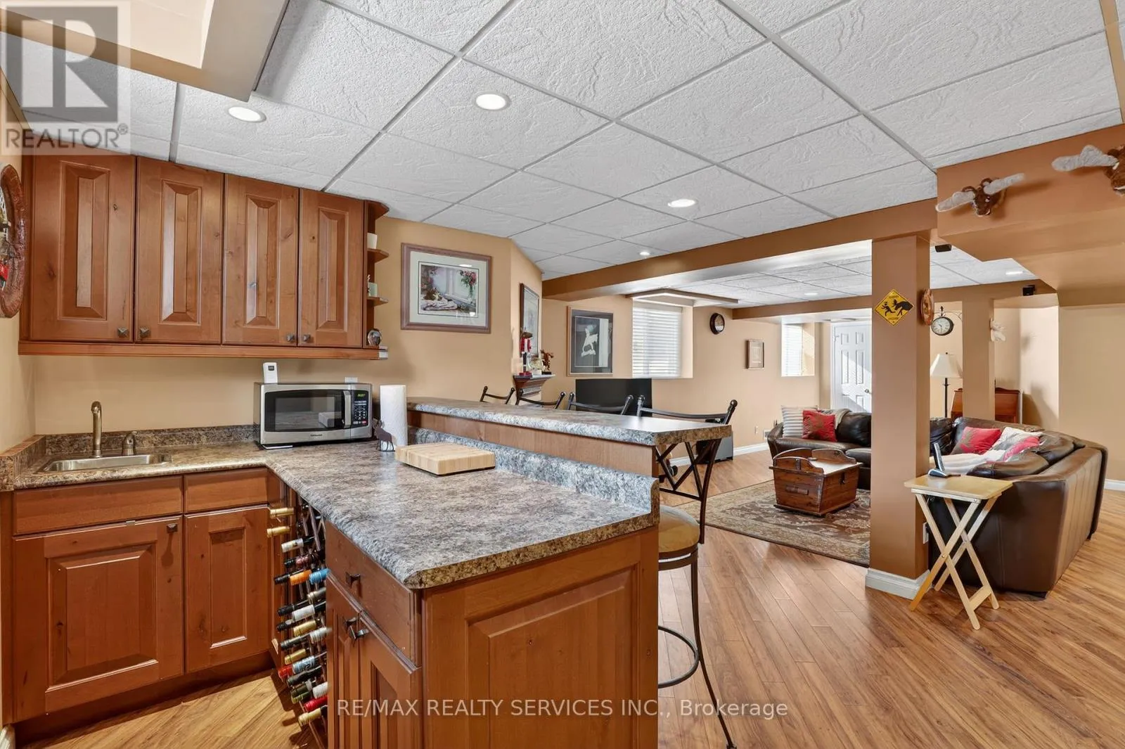 ROYAL VALLEY DR/KIRKWOOD CRES Welcome to one of Caledon's most sought-after neighbourhoods of Valleywood. Ideally located just off Highway 410, this home offers exceptional convenience for commuters while being close to excellent schools, scenic nature trails, the local library, and a large community park complete with soccer fields and a playground.This beautifully-maintained raised bungalow offers just over 1,500 sq ft on the main level, featuring an open-concept living and dining area designed for comfortable and effortless entertaining. The living room impresses with a soaring cathedral ceiling, creating a bright and inviting space to gather with family and friends.The renovated kitchen is a true showpiece, boasting custom modern cabinetry, quartz countertops, a centre island with breakfast bar for casual meals, and abundant storage. A Walk-out to the deck extends your living space outdoors, perfect for Summer barbecues (gas hook-up) and relaxing evenings.The main floor features three bedrooms, including a primary retreat complete with a private 3-piece ensuite. A renovated 4-piece bathroom serves the additional bedrooms. Convenient main floor laundry with direct access to the two-car garage adds to the home's functional layout.The fully finished basement provides additional living space, featuring a spacious rec room with a gas fireplace and a wet bar with full-size fridge, ideal for entertaining or family movie nights. A 4th bedroom and a 3-piece bathroom offer flexibility for guests or extended family, while an additional unfinished area presents the perfect opportunity to create a fifth bedroom, if desired. With above-grade windows and ample storage, the lower level feels bright and open. Situated on a quiet court, this property offers parking for four vehicles in the driveway and no sidewalk to maintain, an added convenience year-round. An exceptional opportunity for a growing family or downsizers seeking the ease of main floor living without compromising on space. (id:27476)