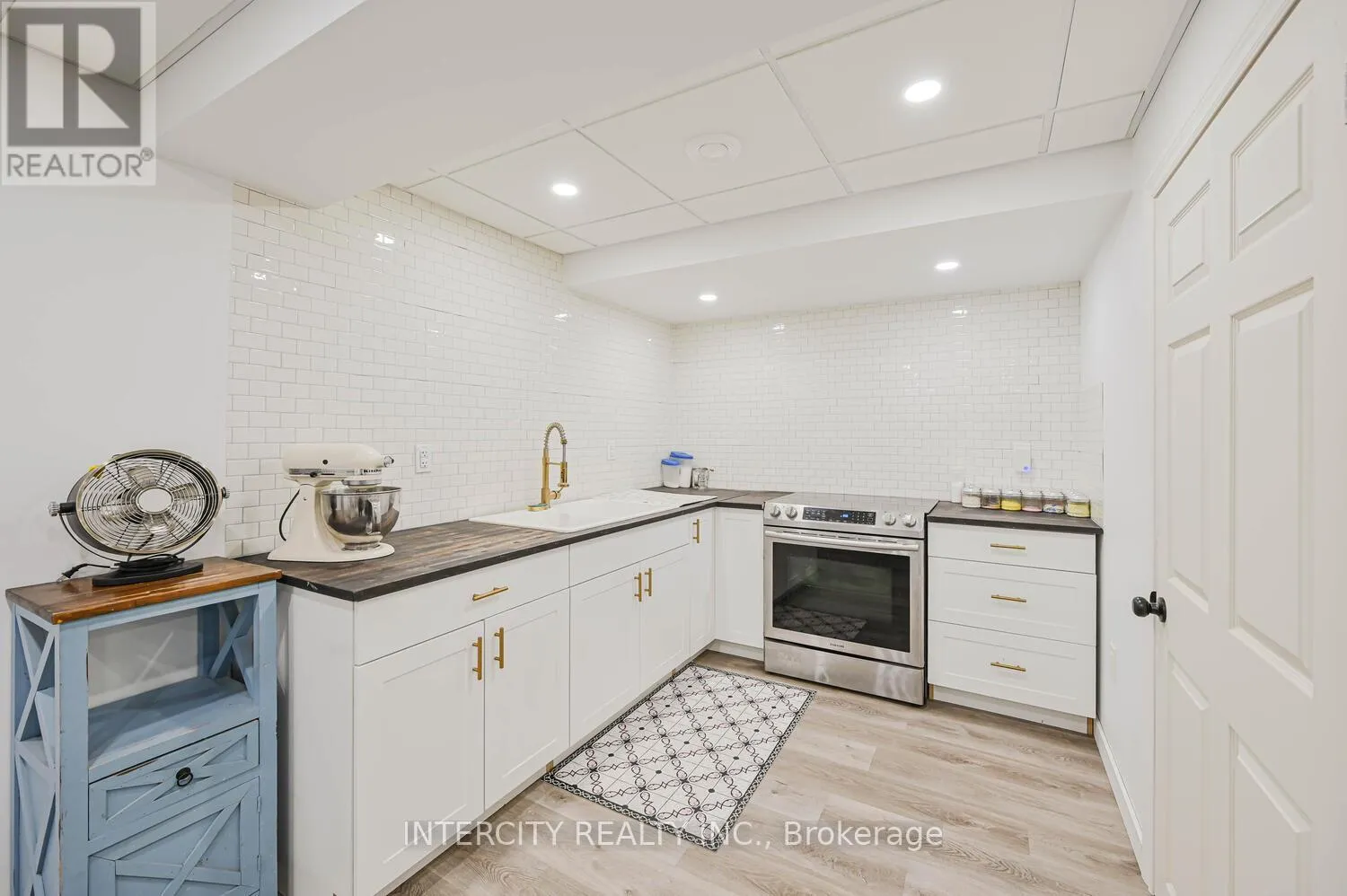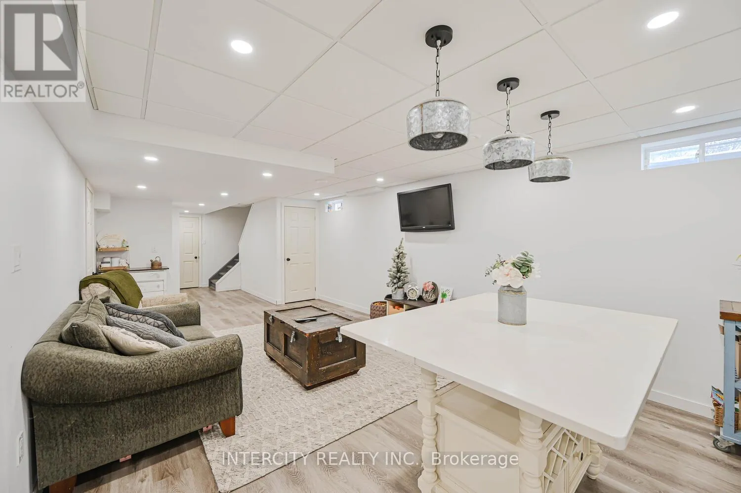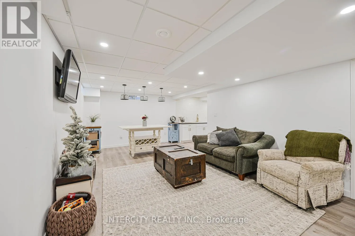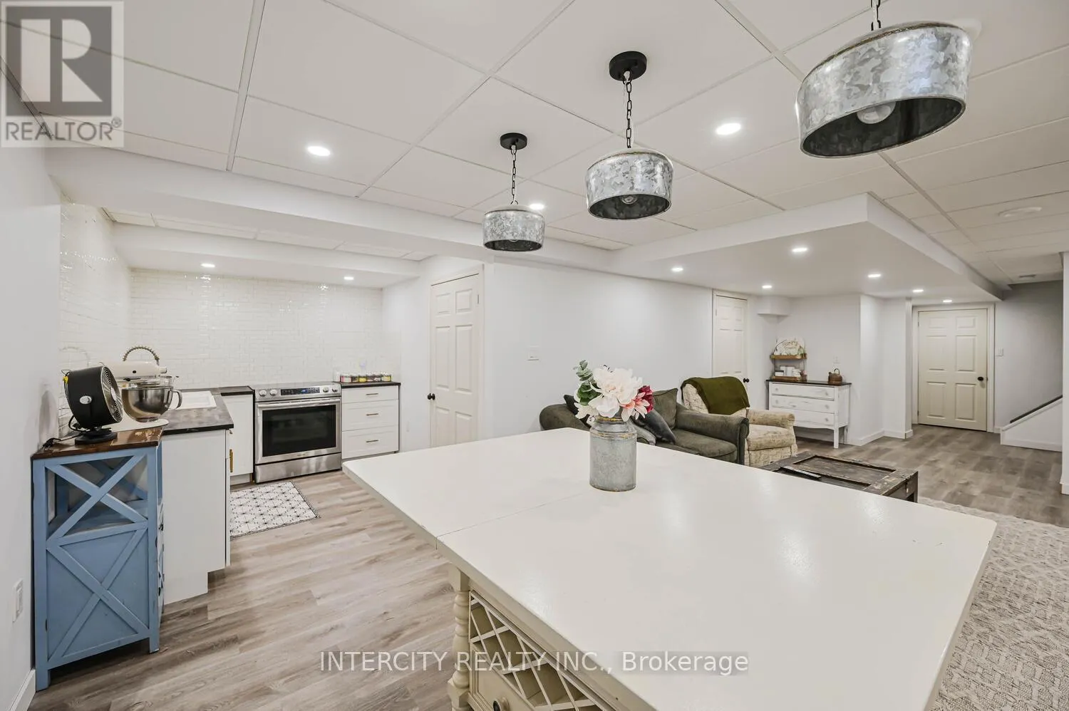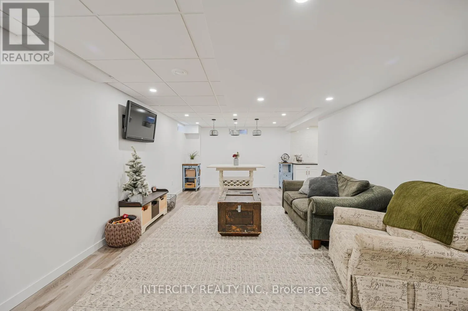 Old Church Rd. Airport Road Exceptional executive end-unit 4-bedroom townhouse situated on a quiet, upscale cul-de-sac in sought-after Caledon East. This fully finished home offers approximately 1,974 sq. ft. of refined living space and an elegant open-concept design. The eat-in kitchen features quartz countertops, a centre island, and stainless steel appliances, seamlessly overlooking the family and dining areas-ideal for entertaining. Highlights of the main level include gleaming hardwood floors, a 2-piece bath, 9-foot ceilings, and direct access to the garage.The spacious primary suite is a private retreat, complete with a walk-in closet and a luxurious ensuite with a walk-in shower and built-in tub. Three additional well-appointed bedrooms, a 4-piece main bath, and a convenient upper-level laundry area complete the second floor.The professionally finished basement offers a large recreation room with a kitchenette with wet bar. Enjoy the gorgeous, fully fenced backyard featuring a extra side-yard space, and backintranquil greenspace/conservation lands. Ideally located in the heart of Caledon, just steps to schools, a community centre, and the public library-offering the perfect blend of luxury and convenience in one of the area's most desirable neighborhoods (id:27476)