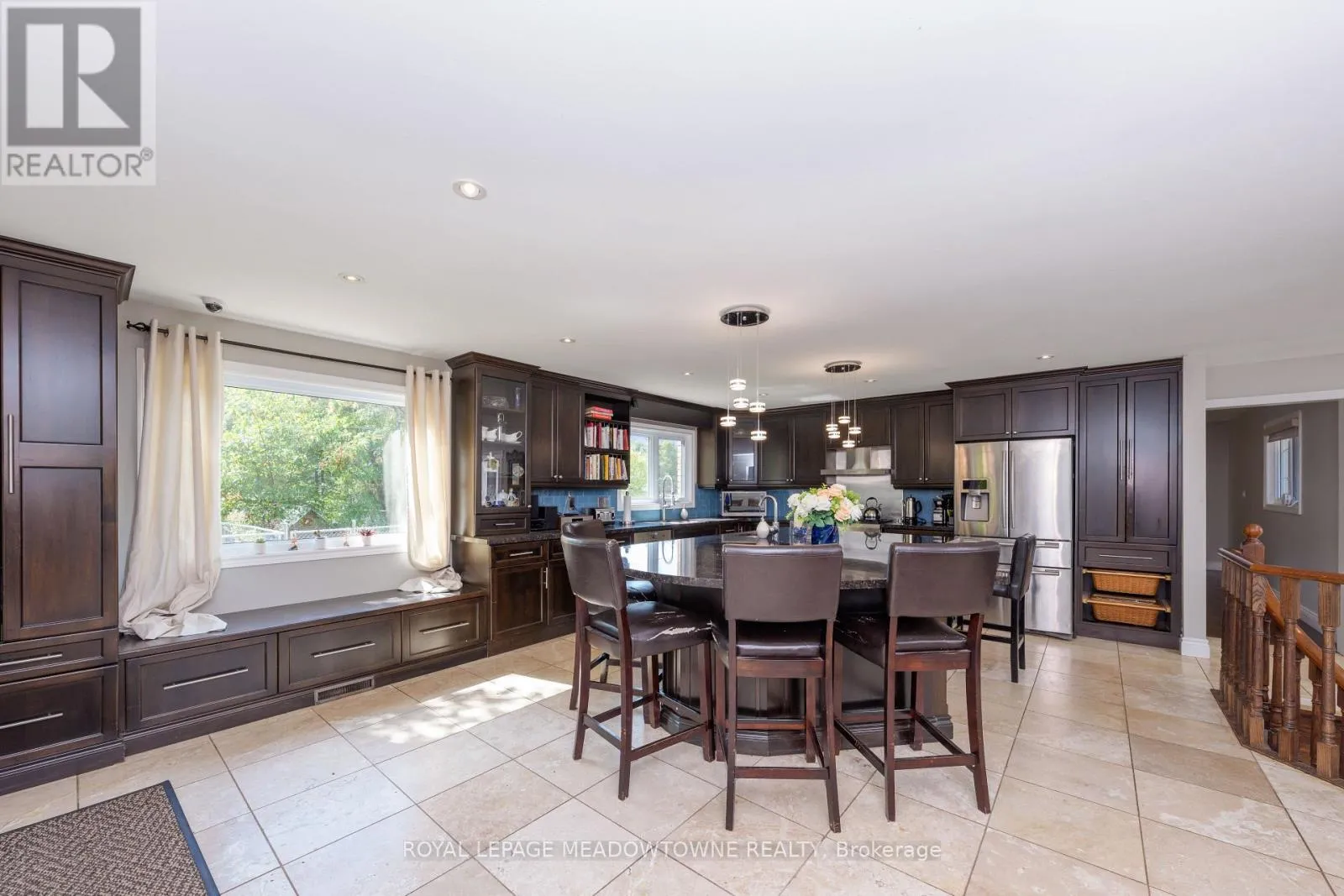 Cross Streets: King St / Heritage Rd. ** Directions: King St-Heritage Rd-Cassidy Ln. Where country serenity meets city convenience, this exceptional 5-acre hilltop property is located just moments from the quaint hamlet of Terra Cotta and the scenic Credit River. Set within an exclusive enclave of executive homes, it offers a rare blend of privacy, space, and natural beauty. Perfect for multigenerational living, the home includes a fully self-contained and beautifully finished 2-bedroom in-law suite. The thoughtfully designed layout features a spacious family-sized kitchen with walkout to a large deck overlooking the tranquil landscape. The main level offers formal living and dining rooms, three generous bedrooms, and a primary retreat complete with a walk-in closet and private ensuite. The lower level provides added flexibility with a large recreation room and dedicated office space. Both kitchens and all four bathrooms have been tastefully updated, while geothermal heating and cooling, natural gas, Rogers high-speed internet, town water, and a 3-car garage ensure everyday comfort and convenience. Enjoy easy access to year-round outdoor recreation including skiing, golfing, and hiking throughout the beautiful Caledon Hills. (id:27476)