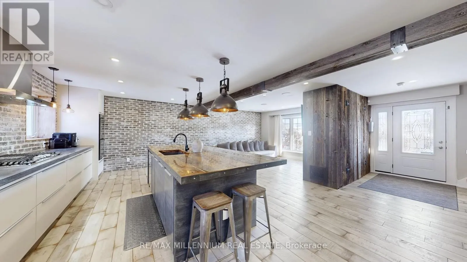 King / Humberlea Best-Kept Secret! A secluded paradise in Bolton's prestigious North Hill Court. This unique property features a beautifully renovated home highlighted by a warm wood-rustic vibe throughout. The open-concept main floor includes an entertainer's dream kitchen island, stylish cabinetry, and a charming dining area that flows seamlessly to the backyard oasis. Set on an exceptional 140 ft deep lot, the yard is thoughtfully tiered into three levels, offering incredible privacy. Enjoy your own resort-style retreat with an in-ground heated pool, outdoor kitchen, dedicated outdoor washroom, and extraordinary landscaping-well over $300K invested. The ultimate private escape for both entertaining and relaxation. The finished basement includes a wet bar, and the home offers a spacious driveway and a cozy, inviting interior aesthetic centered around warm wood tones and rustic design elements. (id:27476)