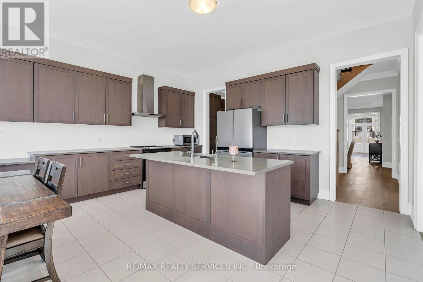 Cross Streets: Airport Rd/Walker Way. ** Directions: off Airport Rd. turn east onto Old Church Rd. north on to Atchinson dr.,James will be the first right. This exceptional 5-bed, 6-bath home offers spacious living with each bedroom featuring a private ensuite and customized walk-in closet. Enjoy 10-ft ceilings on the main floor, 9-ft on the second, a main-floor office, and smooth ceilings throughout. Features include 4 engineered hardwood, oak veneer stairs with metal pickets, crown molding, upgraded baseboards, and main-floor laundry.The walk-out basement boasts 9-ft ceilings, upgraded French doors to a ravine, and rough-ins for a separate suite, including plumbing, electrical, and gas line for BBQ. Optional side entrance available. Additional Features: 200 AMP service, 2-car garage with openers, 4-car driveway parking. Steps to trails, nature, and recreational amenities. (id:27476)