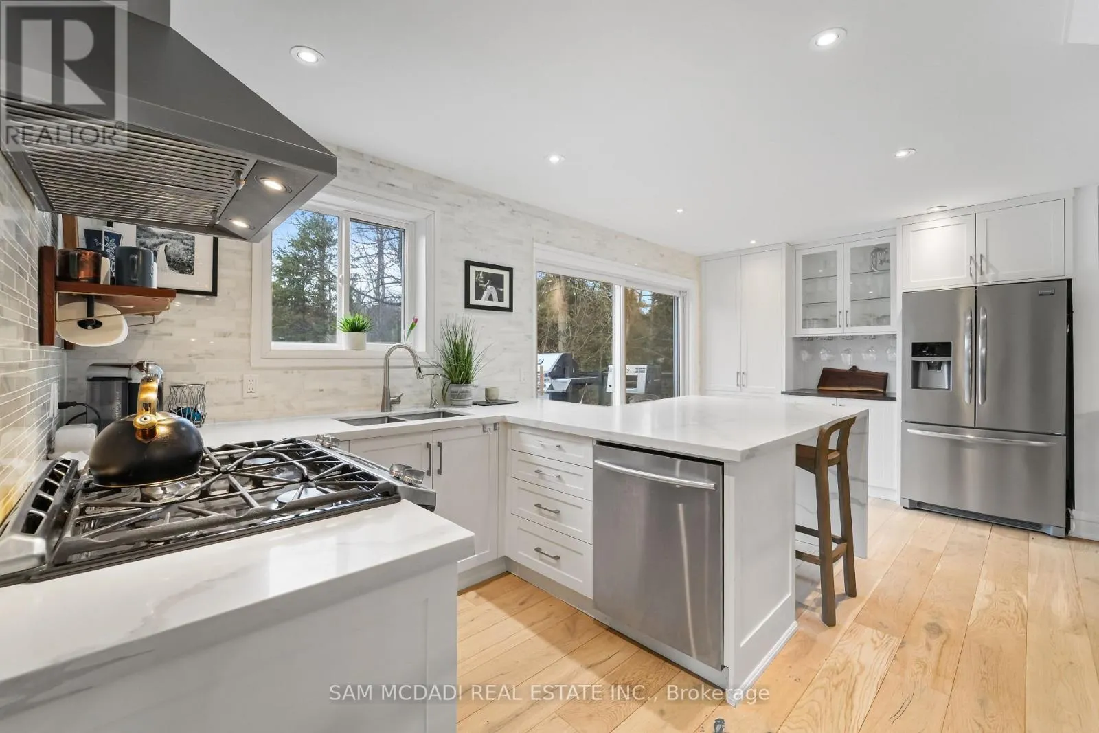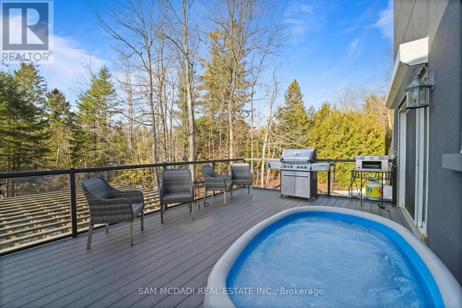 Cross Streets: Hurontario St & Forks of the Credit Rd. ** Directions: If heading northbound on Hurontario St, turn left onto Forks of the Credit Rd. If heading southbound on Hurontario St, turn right onto Forks of the Credit Rd. The property will be on your right side. Discover a truly unique and breathtaking country estate where nature, privacy, and exceptional design come together in perfect harmony. Set on a picturesque 2.71 acres and ideally positioned between the Pulpit Club, Caledon Mountain Trout Club, Caledon Ski Club, Brampton Flying Club, and along the Bruce Trail, this magnificent property offers an unmatched lifestyle within close proximity to the city. A resort-like sanctuary awaits, designed for both grand entertaining and quiet, restorative living. An inground saltwater pool, outdoor shower, and cold plunge offer spa-like relaxation, while the wood-fired pizza oven, outdoor bar, and firepit create exceptional gathering spaces. Extensive, thoughtfully constructed walking trails wind throughout the grounds, complemented by aromatic and carefully curated gardens. A charming children's playhouse/bunkie, pool cabana, and 3 decks further enhance this one-of-a-kind outdoor setting. Inside, expansive windows fill the home with natural light and bring the outdoors in. The modern kitchen features marble countertops, stainless steel appliances, and a striking backsplash, flowing into the dining area. The living room is anchored by a stunning brick accent wall and wood-burning fireplace, while a home office with built-in desk and outdoor access provides a serene workspace. The main floor primary suite is a tranquil escape with a luxurious 4-pc ensuite and walk-in shower. Upstairs, 3 spacious bedrooms and 2 well-appointed baths provide comfort for family and guests. The 3rd floor loft serves as a wellness sanctuary with an infrared sauna and custom built-in sauna. Additional highlights include heated marble bathroom floors, new hardwood flooring, and a custom floor-to-ceiling glass wine cellar. Designed for peace of mind, the home features a backup generator, air quality systems, water treatment, and major electrical upgrades. Elegant, modern and immersed in nature - 2814 Forks of the Credit Road leaves nothing to be desired. (id:27476)