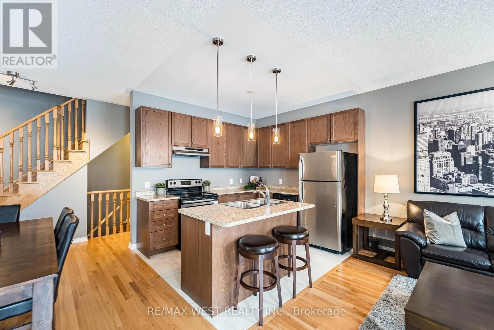 Kennedy / Dougall Welcome to 9 Melbrit Ln, an impeccably maintained 3 story Townhome in the highly desired Village of Southfield. This sun filled, 3 bed 2bath end unit features 1,698SqFt (including main floor Den), 9ft ceilings and hardwood flooring on the 1st & 2nd floors, plus a stellar open concept floor plan, ideal for entertaining friends and family. The perfect starter home for a first-time home buyer or young family. Open concept living... located in the heart of Southfield village, just a short walk to Parks, Rec centre, Schools, Shopping centre, other highly sought amenities and a short drive to Hwy 410. (id:27476)