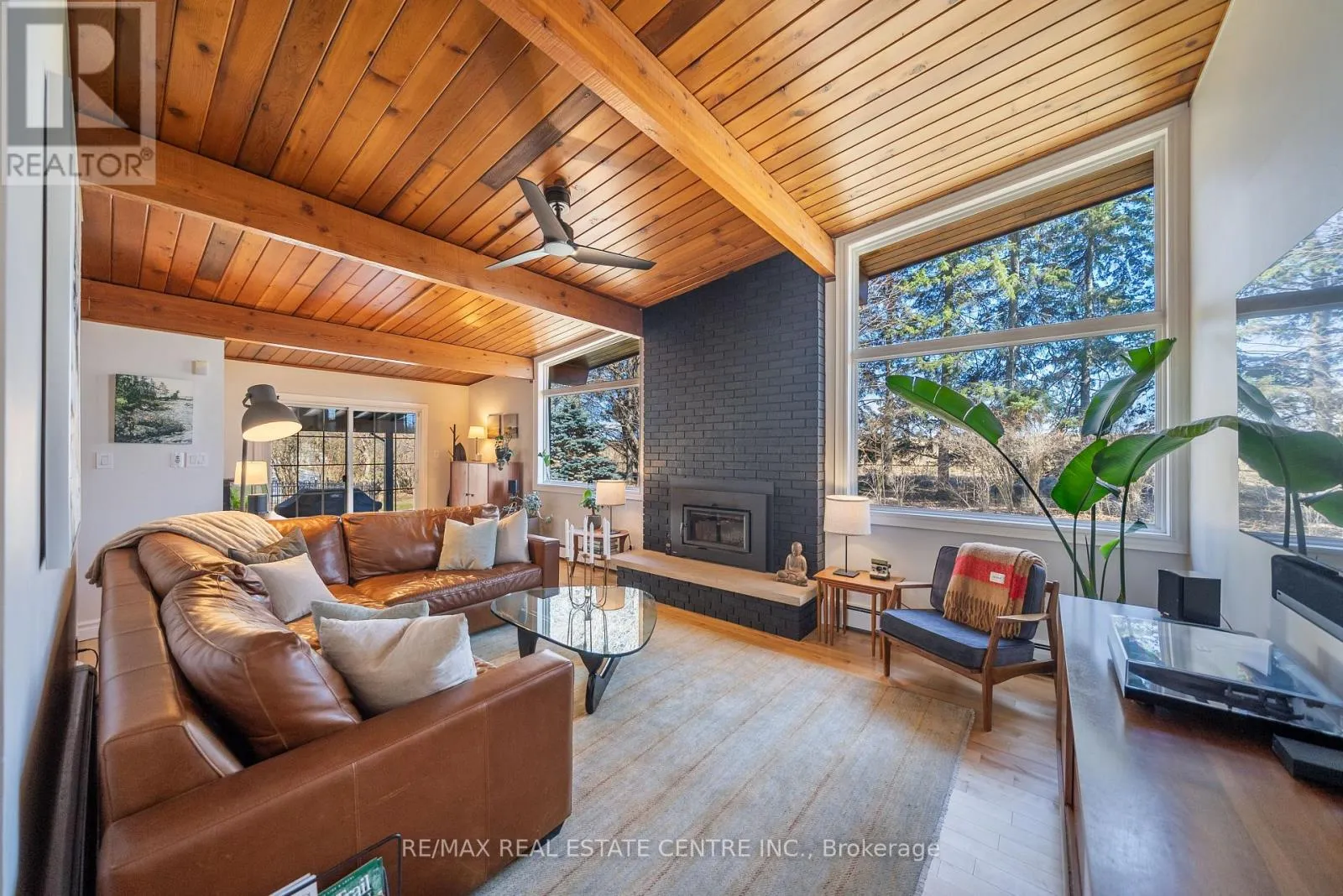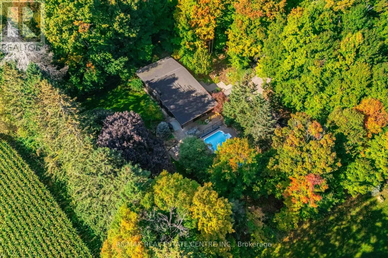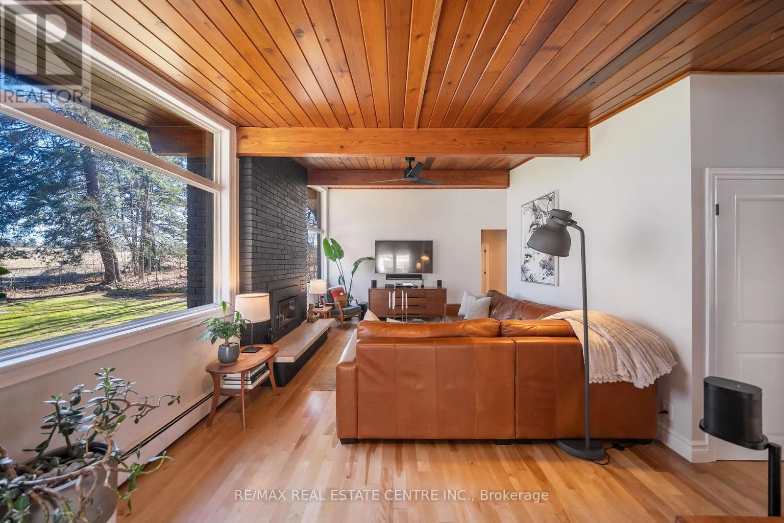 Heart Lake + Boston Mills Set beneath a canopy of mature trees along one of Caledon's most scenic roads, this 1965 bungalow is a rare offering-where timeless mid-century design meets the kind of setting that feels quietly tucked away, yet deeply connected.Positioned on 1.2 acres of private, fenced land, this is more than a home-it's a retreat. Surrounded by nature and moments to the Cheltenham Badlands, Devil's Pulpit, and the charming hamlets of Inglewood, Belfountain, and Caledon East, the lifestyle here is defined by trails, fresh air, and a pace that feels just right-while still only 15 minutes to Brampton and 20 to Orangeville.Inside, much of the home's original character has been thoughtfully preserved...warm wood tones, clean lines, and the kind of architectural simplicity that defines true mid-century living. Wood fireplace, exposed beams, expansive windows, and a layout that feels both open and intimate...A bright lower level with oversized above-grade windows adds versatility and natural light, offering space to gather, create, or unwind. Outdoors, summer takes centre stage. A gorgeous in-ground pool is framed by mature trees, with dedicated pool houses complete with a change room and bar designed for long afternoons that turn into evenings under the stars. An oversized detached two-car garage/workshop adds even more flexibility for hobbyists, creatives, or those seeking additional space.Extensively updated where it matters, the home offers peace of mind with recent improvements including a rebuilt chimney and hearth, new metal garage roof, upgraded electrical panel, new electric boiler system (radiator heat), pool liner and equipment, windows, doors, fencing, and more..This is the kind of property that rarely comes to market a preserved piece of mid-century design, set in one of Caledon's most coveted natural landscapes. (id:27476)