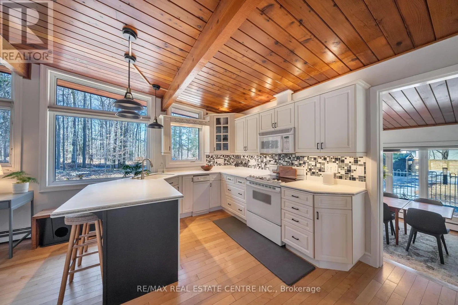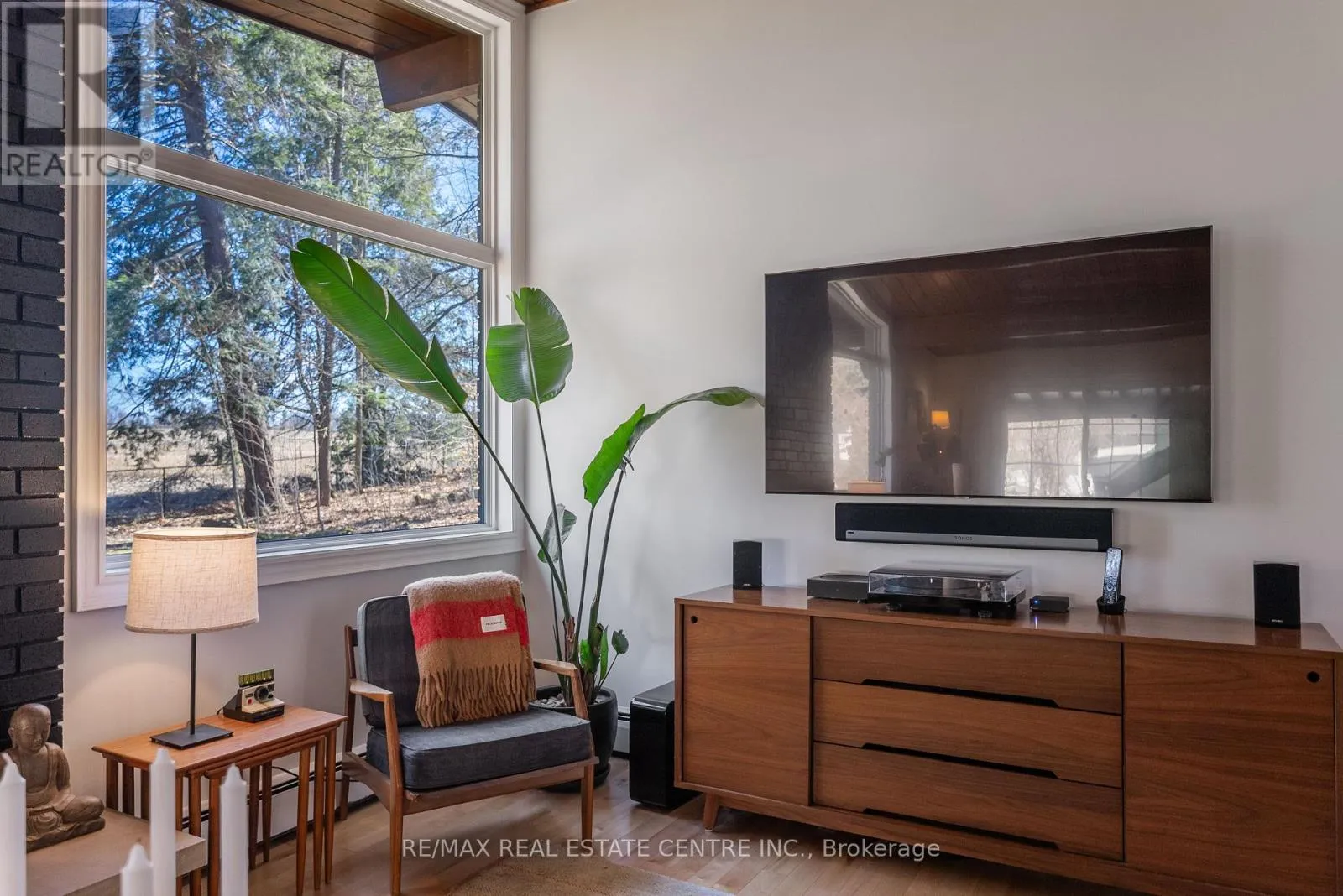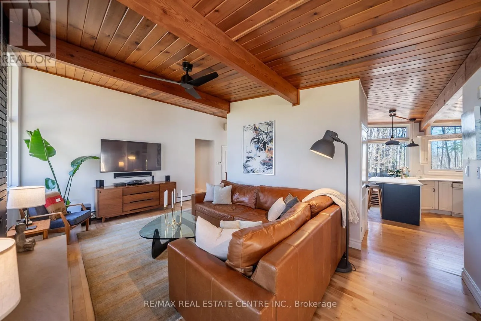 Heart Lake + Boston Mills Set beneath a canopy of mature trees along one of Caledon's most scenic roads, this 1965 bungalow is a rare offering-where timeless mid-century design meets the kind of setting that feels quietly tucked away, yet deeply connected.Positioned on 1.2 acres of private, fenced land, this is more than a home-it's a retreat. Surrounded by nature and moments to the Cheltenham Badlands, Devil's Pulpit, and the charming hamlets of Inglewood, Belfountain, and Caledon East, the lifestyle here is defined by trails, fresh air, and a pace that feels just right-while still only 15 minutes to Brampton and 20 to Orangeville.Inside, much of the home's original character has been thoughtfully preserved...warm wood tones, clean lines, and the kind of architectural simplicity that defines true mid-century living. Wood fireplace, exposed beams, expansive windows, and a layout that feels both open and intimate...A bright lower level with oversized above-grade windows adds versatility and natural light, offering space to gather, create, or unwind. Outdoors, summer takes centre stage. A gorgeous in-ground pool is framed by mature trees, with dedicated pool houses complete with a change room and bar designed for long afternoons that turn into evenings under the stars. An oversized detached two-car garage/workshop adds even more flexibility for hobbyists, creatives, or those seeking additional space.Extensively updated where it matters, the home offers peace of mind with recent improvements including a rebuilt chimney and hearth, new metal garage roof, upgraded electrical panel, new electric boiler system (radiator heat), pool liner and equipment, windows, doors, fencing, and more..This is the kind of property that rarely comes to market a preserved piece of mid-century design, set in one of Caledon's most coveted natural landscapes. (id:27476)