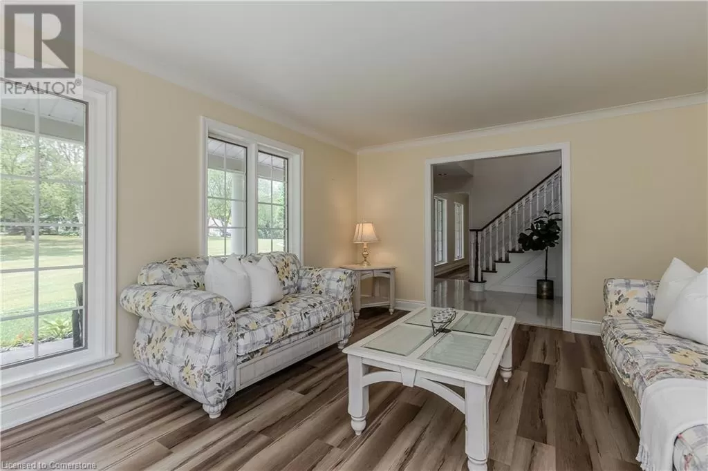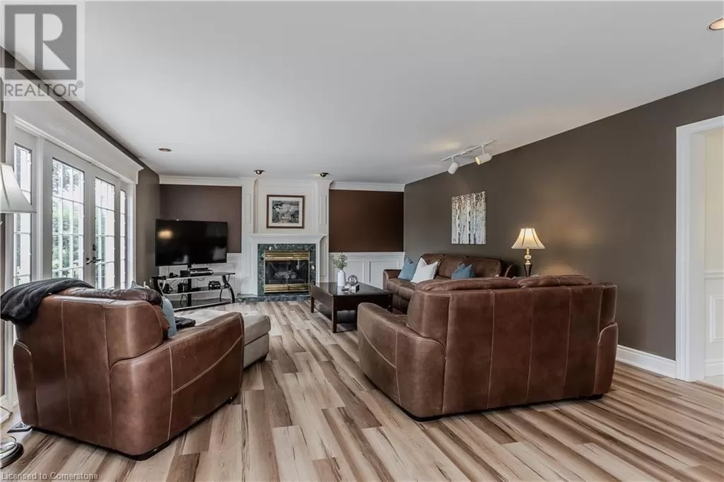Haddington St to Berwick St to Lanark St Welcome to the ultimate blend of comfort and serenity in the heart of Caledonia. This stunning country home offers 3965sf of total living space, combining timeless charm with functional design for peak family lifestyle. Situated on a quiet, dead-end street steps from the Grand River and mins from amenities, this property delivers the best of both peaceful countryside surroundings with daily convenience. Set back from the road on a professionally landscaped large private lot, the curb appeal is undeniable. A 200ft asphalt driveway leads to a triple car garage with room for 6â8 vehicles, and an extra-wide front porch invites you in. Inside, find a thoughtfully designed main floor featuring laminate flooring throughout. The living room is bathed in light due to oversized windows, while the dining room provides ample space for meals and entertaining. The heart of the home is a farmhouse style eat-in kitchen with a large island with breakfast bar, SS appliances, tile backsplash, coffee/wine bar, and seamless flow into the family room with gas fireplace, wainscoting, and French doors to the backyard. A convenient entrance from the back deck leads to a laundry room and full 3pc bathâperfect for pool days! Upstairs, a window seat nook adds character and charm. The expansive primary suite features a walk-in closet and a 4pc ensuite with extra-large jacuzzi tub. 3 additional bedroomsâ2 with walk-in closets and Deacons benches w/ storageâand a 4pc bathroom complete this level. The partially finished basement offers in-law potential with a separate entrance, large sitting room and an additional versatile space ideal for an office, games room, or guest bedroom. Step outside to your very own entertainerâs dream yard, complete with wood deck, stamped concrete patio, tons of green space, and a fully fenced in-ground pool with slideâperfect for summer fun with family and friends. A rare opportunity to enjoy a peaceful rural setting without sacrificing space, style, or convenience! (id:27476)