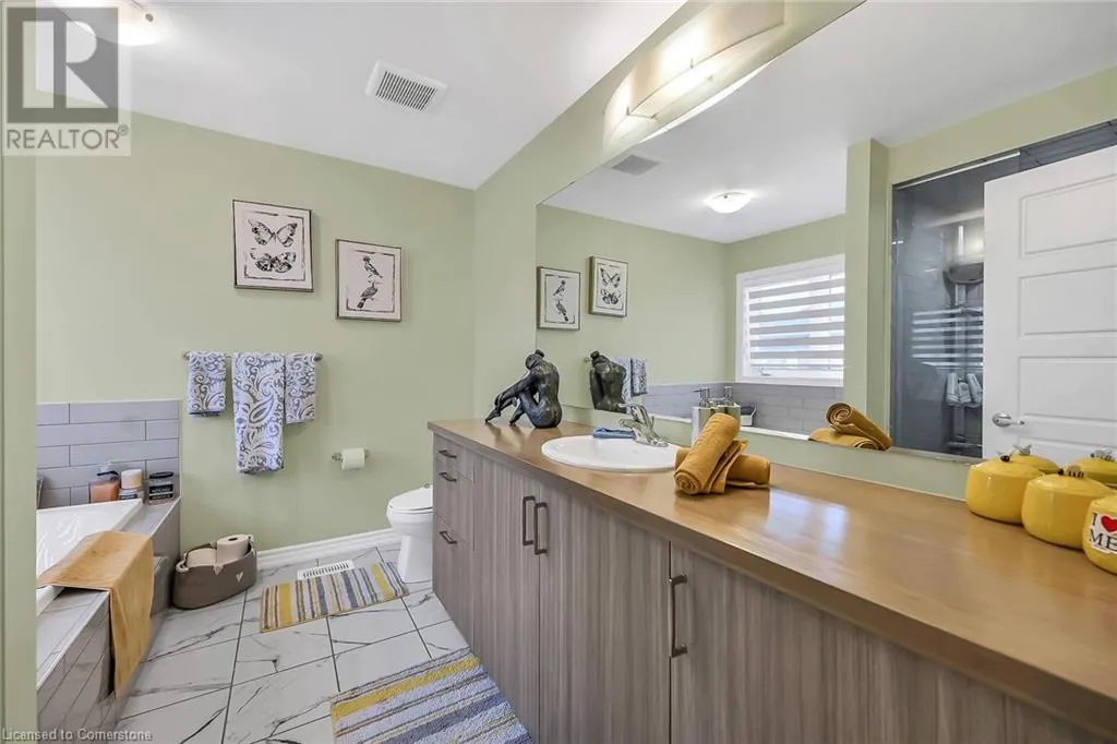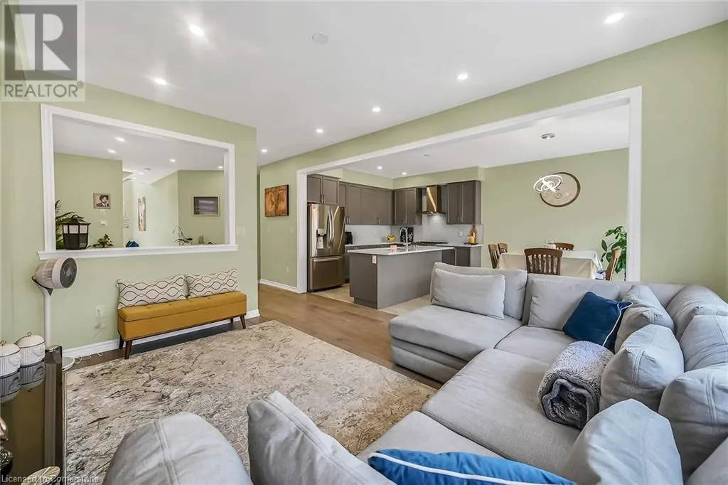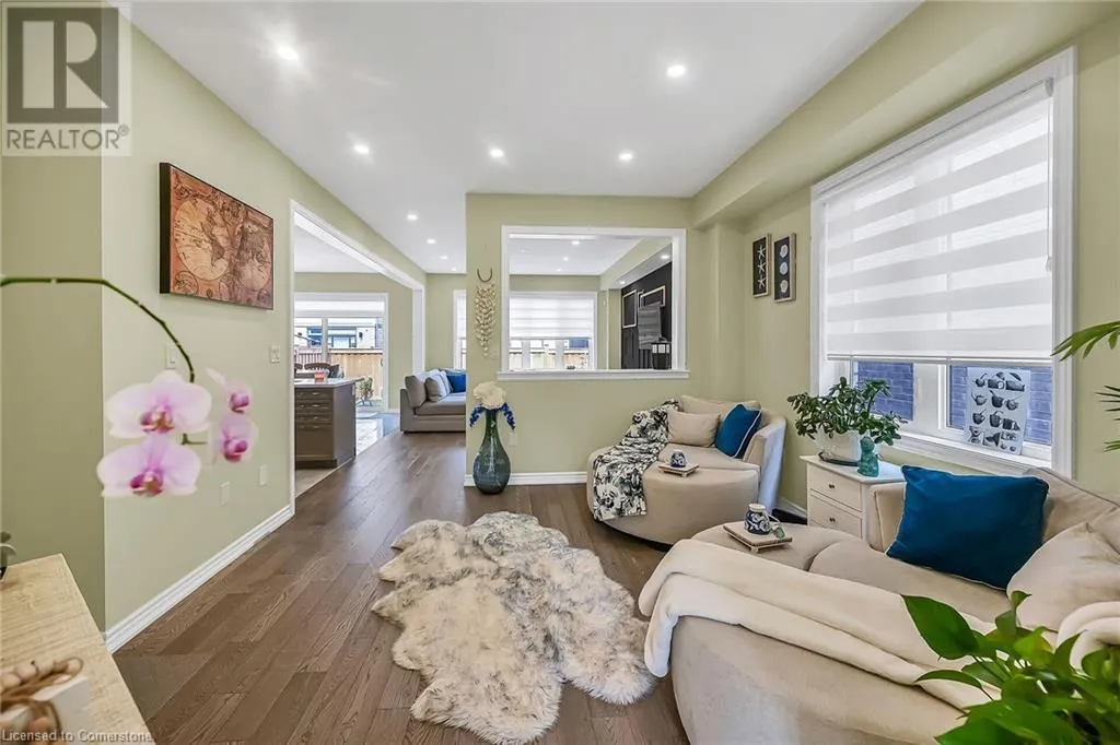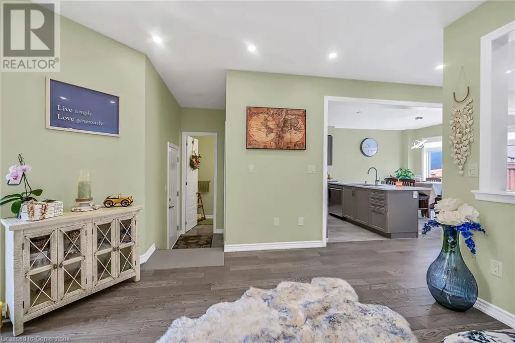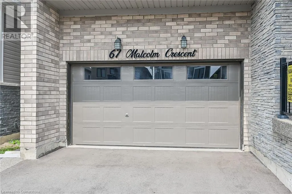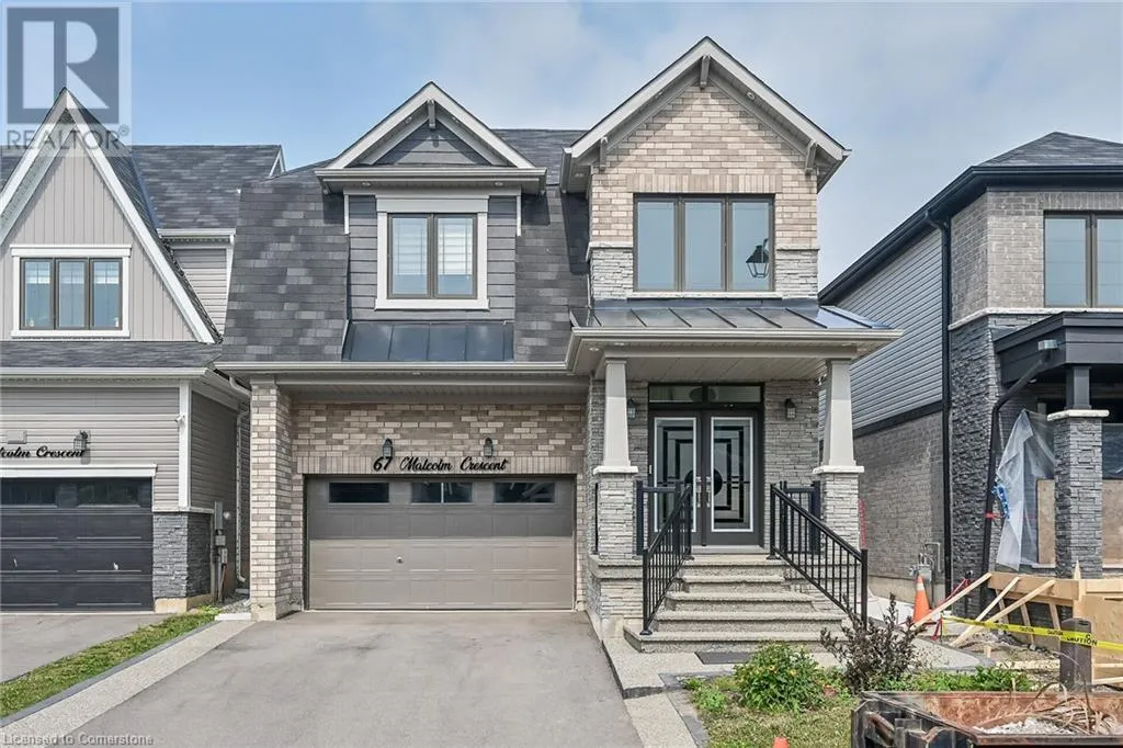 McClung Road to Rainbow Drive, turn left onto Malcolm Crescent. Welcome to 67 Malcolm Crescent. This tastefully decorated home offers 2,307 sq ft of thoughtfully designed living space and features spacious, open-concept living ideal for families of all sizes. The main floor features pot lights throughout, creating a warm and inviting atmosphere for everyday living and entertaining. The large kitchen is equipped with upgraded cabinetry, granite countertops, a center island, and a breakfast area. A separate dining room and bright great room complete the main floor. Upstairs, youâll find four generous bedrooms, including a primary suite with double walk-in closets and a private ensuite featuring a natural wood vanity top. The second level also includes a 4-piece bathroom which is also finished with a natural wood counter and convenient laundry facilities. The unfinished basement provides potential for future living space or storage. Step outside to a beautifully landscaped backyard with a concrete patio. Additional exterior pot lights have been added around the home for a polished look. Located steps from parks, walking trails, the Grand River, and a brand new school currently under construction. This is the perfect opportunity to join a growing, family-friendly neighbourhood! (id:27476)