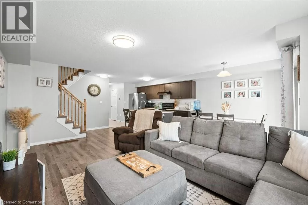 McClung Road To Thompson Road Welcome to this fabulous open concept freehold townhome nestled in the highly desirable and family-friendly Avalon community of Caledonia! This home is bright and spacious and perfect for modern living and entertaining! Enjoy cooking and gathering in the fabulous kitchen, complete with large island and cozy dining area that flows seamlessly into the generous family room, ideal for families with small children, hosting friends or family gatherings. Step outside to a fully fenced backyard, perfect for kids, pets, or summer BBQs. The upper level offers 3 good-sized bedrooms, including a lovely primary suite with a private 3-piece ensuite and convenient upper-level laundry! Lower level has been partially finished, additional 2-piece bath and lots of storage! Additional features include a private driveway, single car garage, easy inside entry and extra street parking across the road. All conveniently located in an incredible, family-friendly community close to schools, parks, and all amenities! Easy commute to Hamilton and 403. Call today to experience all that Caledonia living has to offer! (id:27476)
