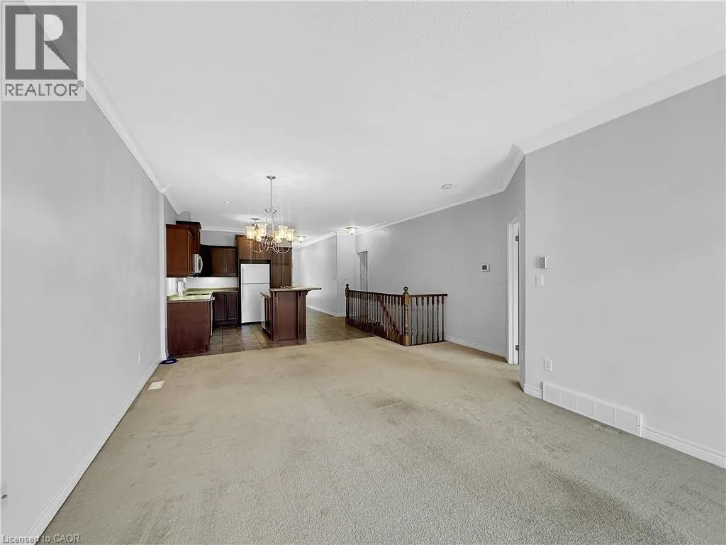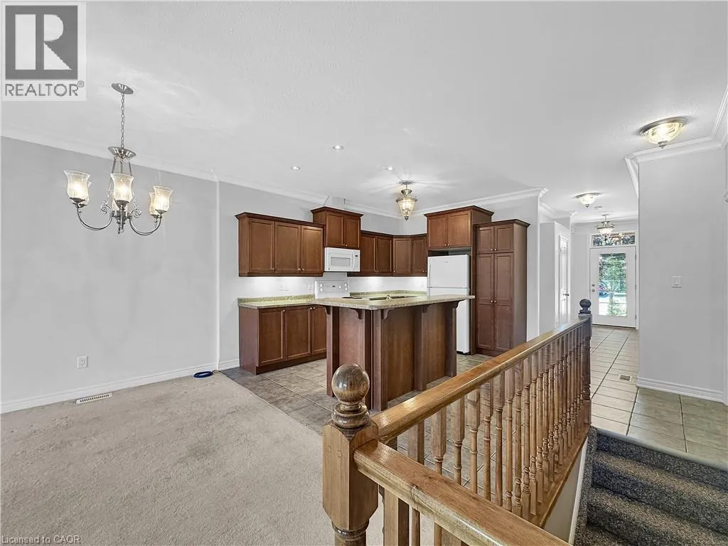 Argyle Street South to Stirling Street - right onto Iron Bridge Court Welcome to 15 Iron Bridge Court, a beautifully maintained freehold bungalow townhome nestled on a quiet court in the heart of Caledonia. This 2+1 bedroom, 2.5 bathroom home offers a functional and inviting layout with a walk-out basement and plenty of living space. The open-concept main floor features 9â ceilings with elegant cove trim, creating a bright and airy feel throughout. The spacious kitchen offers an island and plenty of cabinet and counter space, flowing seamlessly into the living and dining area with access to a beautiful balcony overlooking the backyard. The primary suite features a walk-in closet and a 4-piece ensuite, while an additional bedroom/den, main floor laundry, and a powder room add to the convenience. The finished lower level is bright and inviting, featuring large windows, a walk-out to the patio, an additional bedroom with a large window, a 3-piece bathroom, and ample storage space. Located in a peaceful and desirable neighborhood, this home is a rare opportunity - donât miss out! (id:27476)