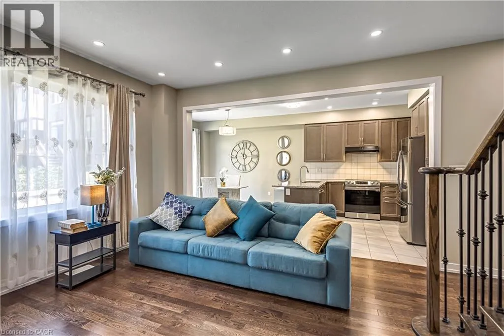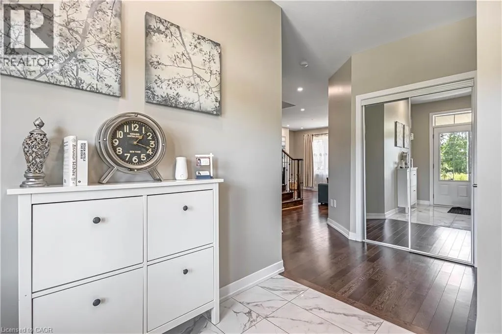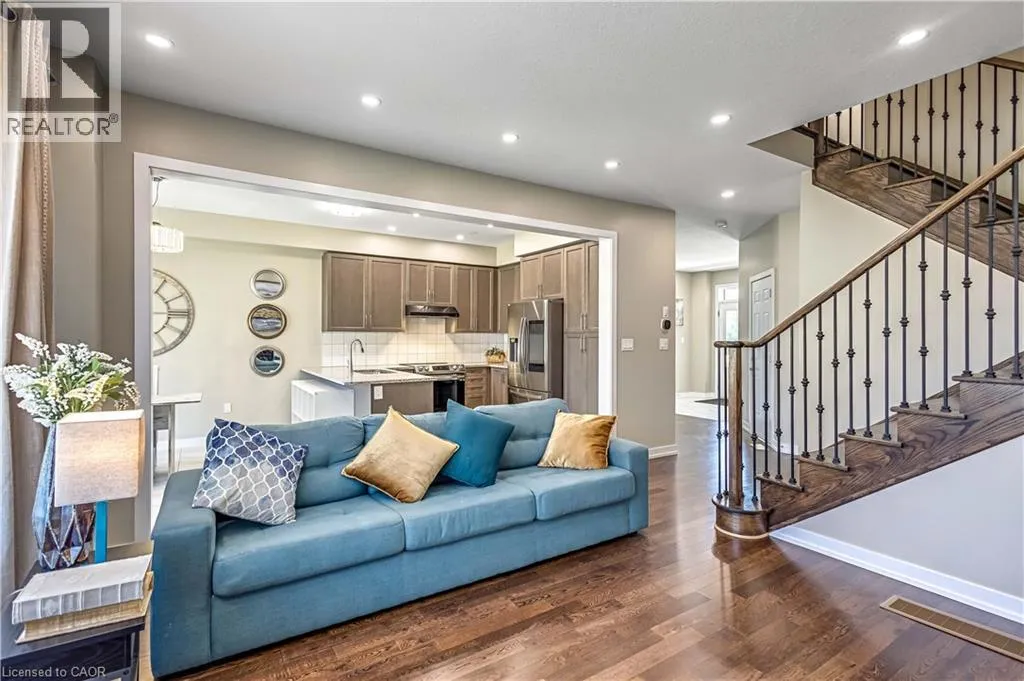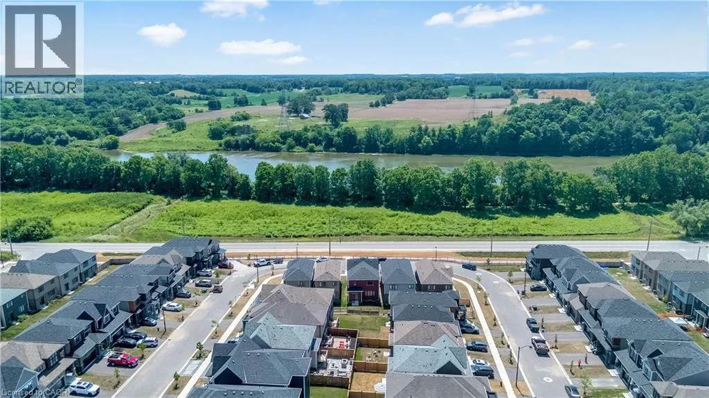 Exit onto Argyle Street South toward Caledonia.Turn left onto Caithness Street E / Hwy 54. Follow Regional Rd 54 east, then turn right on Sundin Drive. Turn left onto Santos Drive. Welcome to 44 Santos Drive, Caledonia! This immaculately maintained 3-bedroom, 2.5-bathroom Empire home blends thoughtful design with quality upgrades, set on a south-facing lot with no front neighbours and a beautiful Grand River view across the road. The main floor features 9-foot ceilings, an open-concept layout, and a gas fireplace with marble and metal surround. Hardwood flooring and LED lighting enhance the modern, bright feel throughout. The upgraded Samsung appliance package includes a smart-screen refrigerator, built-in dishwasher, and sleek backsplash, complemented by granite countertops and extended cabinetry for additional storage and workspace. Upstairs, the primary suite includes a walk-in closet and a private ensuite bathroom. The upper hallway offers hardwood flooring and a stained oak staircase with iron pickets, along with upgraded interior doors for a polished finish. Additional features include garage access with custom stairs, a cold cellar (builder upgrade), owned water softener, rough-in for central vacuum, and an EV charger outlet in the 1.5-car garage. The driveway accommodates four vehicles, providing excellent parking capacity. Located in the Avalon community of Caledonia, this home offers a quiet, family-friendly setting close to schools, parks, walking trails, and riverfront views. Immediate possession is available. Experience a welcoming blend of comfort, style, and functionality in this thoughtfully designed Avalon home â ready for its next chapter. (id:27476)
