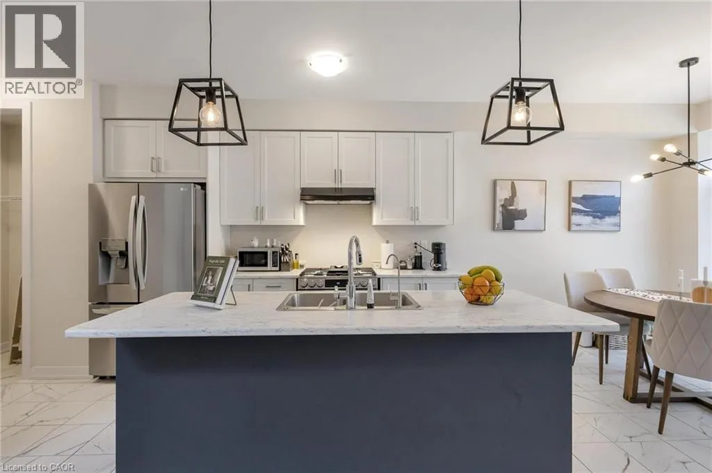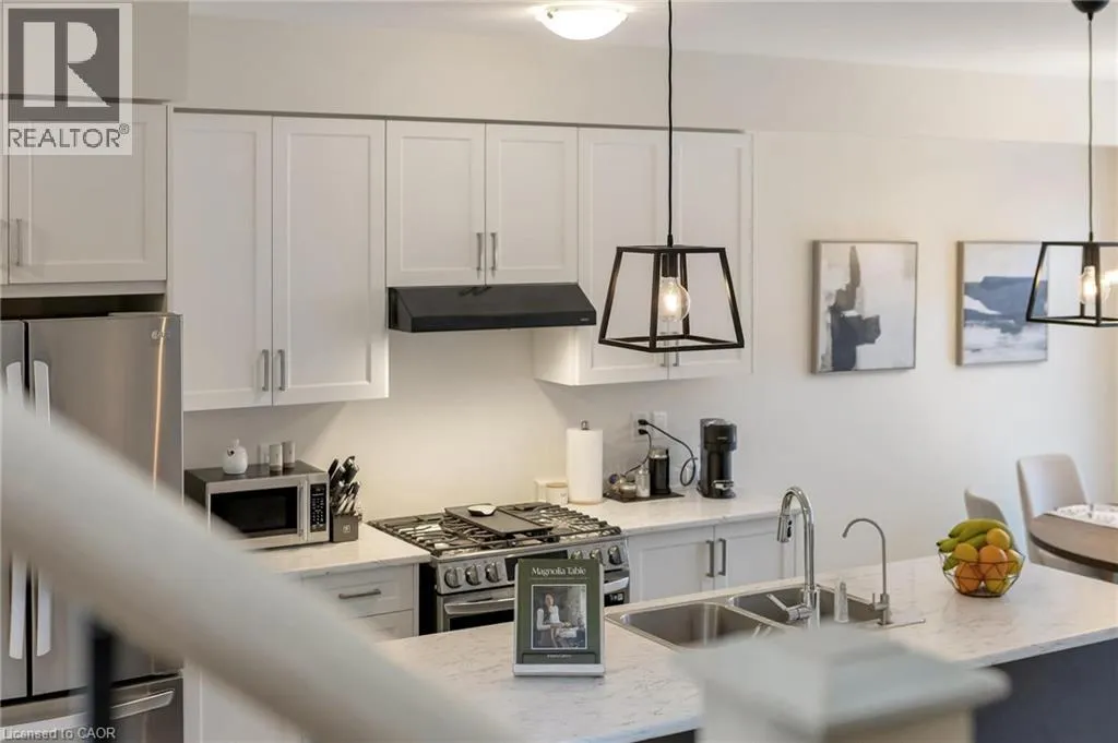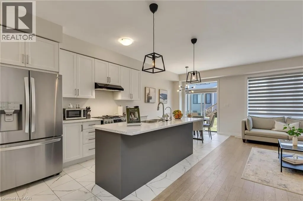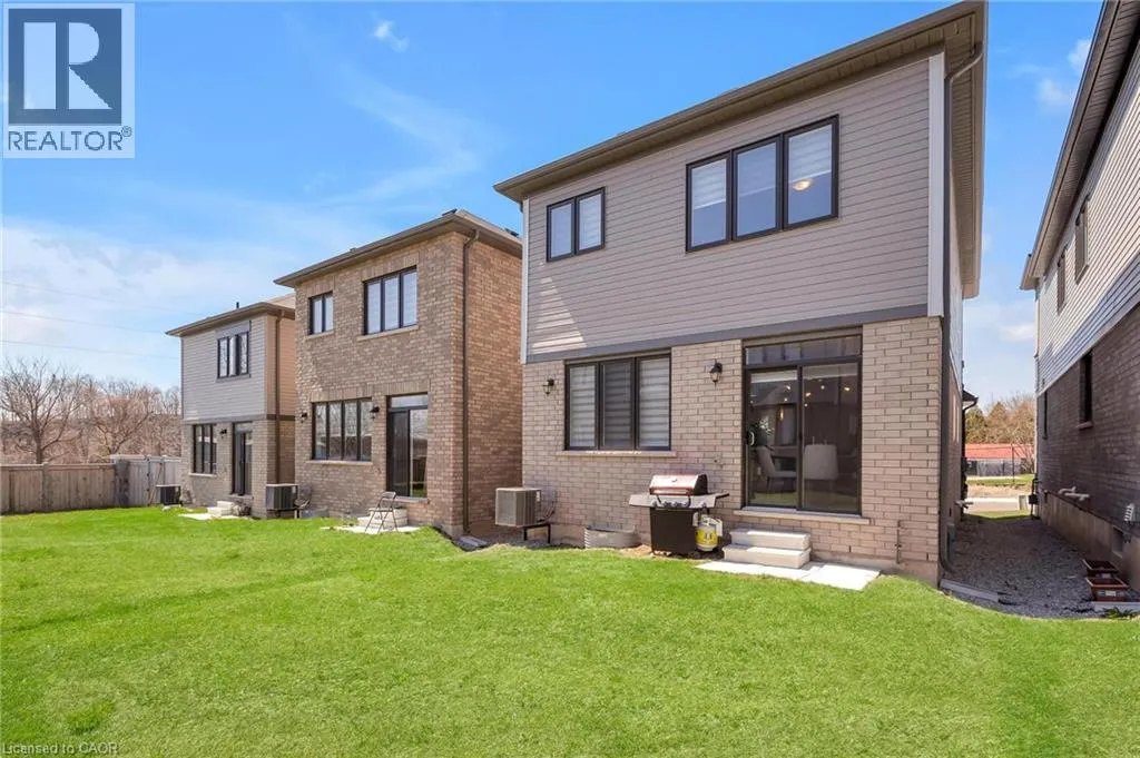 left on Sundin Dr coming from Mclung This modern detached residence offers 2,400+ sqft of finished living area. 1746 square feet of comfortable living space above grade, perfectly complemented by a fully finished basement (in-law suite) adding approximately 700 additional square feet. The main and upper floors feature three spacious bedrooms and the convenience of three well appointed bathrooms. You'll appreciate the modern touches like 8-foot doors on the main floor, Modern hard-wood flooring all through out main level and second floor hallway and stylish zebra blinds installed throughout. Stay comfortable year-round with the centralized A/C unit. For the tech-savvy, this home is equipped with an upgraded 200 AMP electrical panel and a EV rough-in the garage. The kitchen is a food lovers delight with a s/s stove ( dedicated gas line for stove available) , large island and walk-in pantry. Outdoor entertaining is a breeze with a dedicated gas line in the backyard for your BBQ. Descend to the finished basement and discover even more living space, ideal for guests, teenagers, In law suite or a home office. Here, you'll find a fourth bedroom, a kitchenette and a dedicated bathroom, providing flexibility and functionality. The upgraded basement windows brighten the space. You'll also appreciate the convenience of an automatic garage door. Upstairs, the primary bedroom features a modern ensuite bathroom with a glass-enclosed shower. This delightful home offers ample space for a growing family or those who love to entertain, with thoughtful upgrades for modern living. Don't miss the opportunity to make it yours! Enjoy stunning views of the Grand River right from the property. (id:27476)