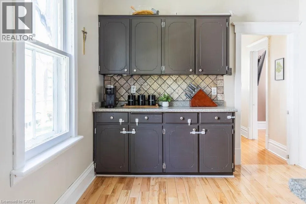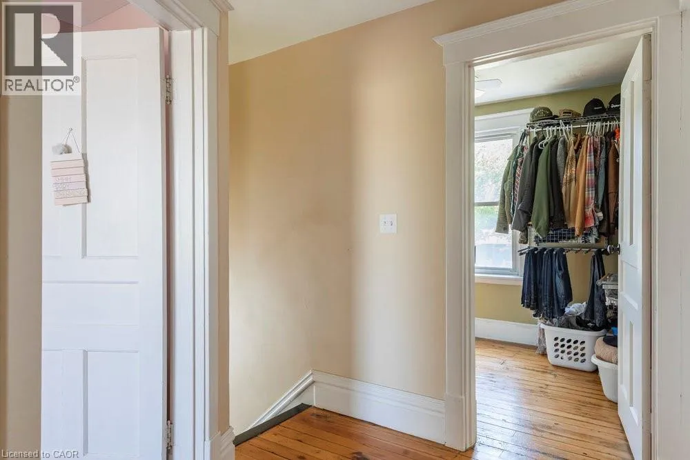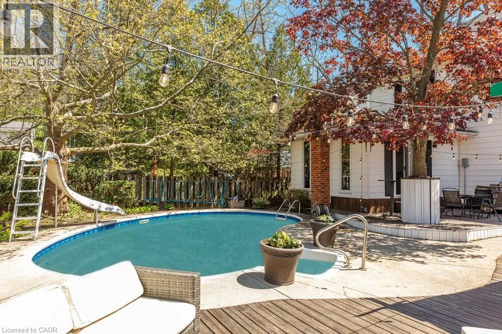 From Caithness Street E, south on Banff Street. Tucked away on a picturesque, tree-lined street just steps from the Grand River and Caledoniaâs vibrant downtown, this timeless home offers small-town living and big-time charm. Inside, youâll find a bright and spacious layout designed with families in mind. Featuring formal living and dining areas, plus a versatile addition that can serve as a main-floor bedroom, home office, playroom, or gym. Upstairs, the primary bedroom with ensuite privilege offers space to unwind, accompanied by two additional bedrooms accented by original pine floorboards that add warmth and authenticity. The backyard is your private retreat, complete with an in-ground pool, wood-burning fireplace, mature trees, and plenty of space to gather and entertain. A detached garage adds extra storage, and the private drive offers parking for up to three vehicles. Enjoy morning coffee on your covered front porch, evening walks along the river, and weekends exploring local shops, cafés, and the nearby farmers market. With top-rated schools, parks, and community amenities like Kinsmen Park, Lions Pool, Rotary Riverside Trail, and Edinburgh Square just minutes away, this location offers the best of both worlds - right here in one of Caledoniaâs most beloved neighborhoods. (id:27476)