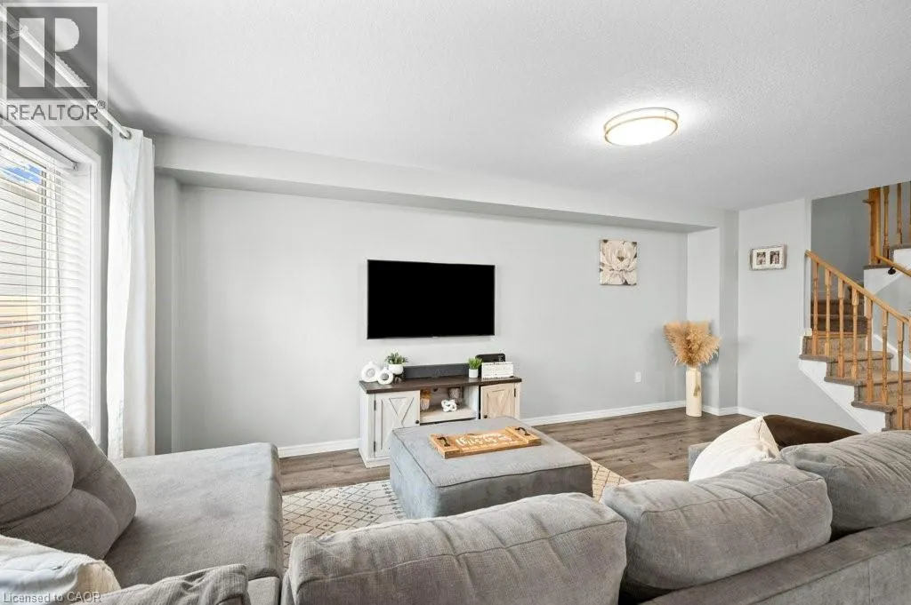 McClung Road To Thompson Road Welcome to this fabulous open concept freehold townhome nestled in the highly desirable and family-friendly Avalon community of Caledonia! This home is bright and spacious and perfect for modern living and entertaining! Enjoy cooking and gathering in the fabulous kitchen, complete with large island and cozy dining area that flows seamlessly into the generous family room, ideal for families with small children, hosting friends or family gatherings. Step outside to a fully fenced backyard, perfect for kids, pets, or summer BBQs. The upper level offers 3 good-sized bedrooms, including a lovely primary suite with a private 3-piece ensuite and convenient upper-level laundry! Lower level has been partially finished, additional 2-piece bath and lots of storage! Additional features include a private driveway, single car garage, easy inside entry and extra street parking across the road. All conveniently located in an incredible, family-friendly community close to schools, parks, and all amenities! Easy commute to Hamilton and 403. Call today to experience all that Caledonia living has to offer! (id:27476)