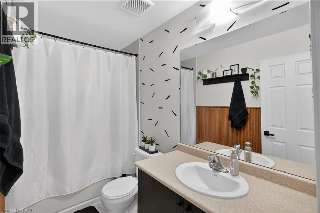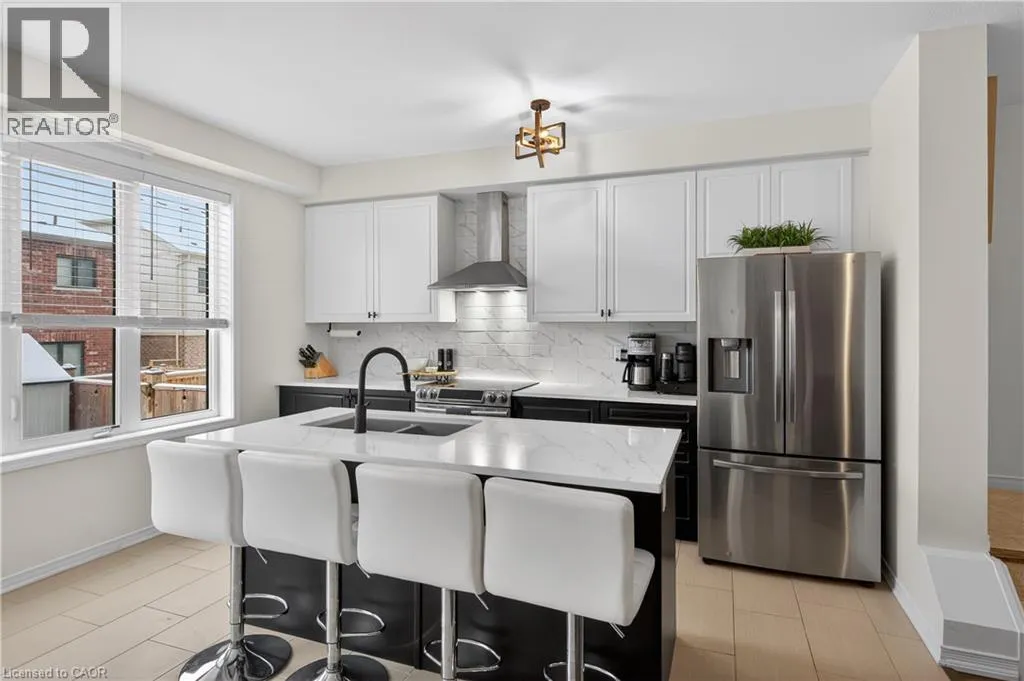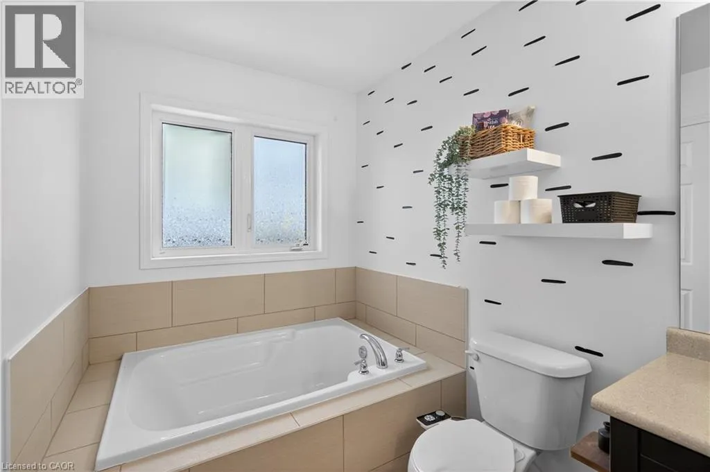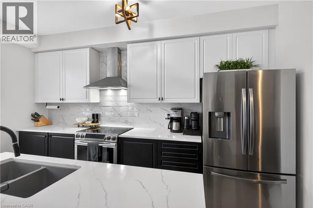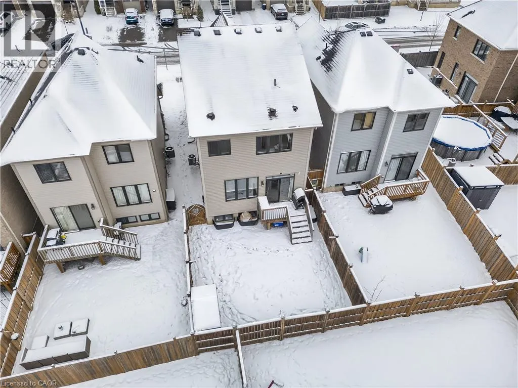 From McClung/Caithness, N on McClung, W on Arnold Marshall, N on Kelso Welcome to this beautifully maintained 3 bdrm, 2.5 bath detached home in Caledoniaâs desirable Avalon neighbourhood. Offering 1581 sq ft above grade, this home is thoughtfully designed for modern living while maintaining a warm, inviting feel throughout. Curb appeal is immediate, with surfaced parking for 1 vehicle & a covered front porch that sets the tone. Elegant French doors w/ a bonus transom window flood the interior w/ natural light, opening into a spacious & welcoming foyer. The 1-car grg feat convenient inside entry, adding everyday practicality. The open-concept main lvl is perfectly suited for both daily living & entertaining. The liv rm is anchored by a stylish feature wall, while the dining area offers sliding doors to the rear yard w/ an additional transom window. The functional kitch is a standout, feat S/S app, an attractive tiled backsplash, quartz countertops, & a centre island w/ seating for 4. An oversized window overlooks the rear yard, bringing in abundant natural light. A convenient main-lvl powder rm completes the space. Upstairs, the spacious primary retreat feat a walk-in closet & a 4-pc ensuite w/ an oversized soaker tub & separate shower. 2 additional bdrms, a full 4-pc bath, & convenient bdrm-lvl laund provide comfort & efficiency for busy households. The unspoiled bsmt, highlighted by large windows, presents endless potential. Outside, the f-fenced rear yard incl a storage shed & plenty of room to entertain. Noteworthy updates incl c-air, quartz countertops, some flring, range hood (all in '20), feature walls ('24), fresh neutral paint ('25), & updated lighting fix. The Avalon neighbourhood is one of Caledoniaâs most desirable areas, known for its family-friendly streets, nearby parks, & sense of community. Enjoy the charm of Caledoniaâs shops & the scenic Grand River, while having easy access to Hamilton, major transp routes, & everyday amenities. This is small-town living with big-city convenience - an exceptional place to call home. (id:27476)