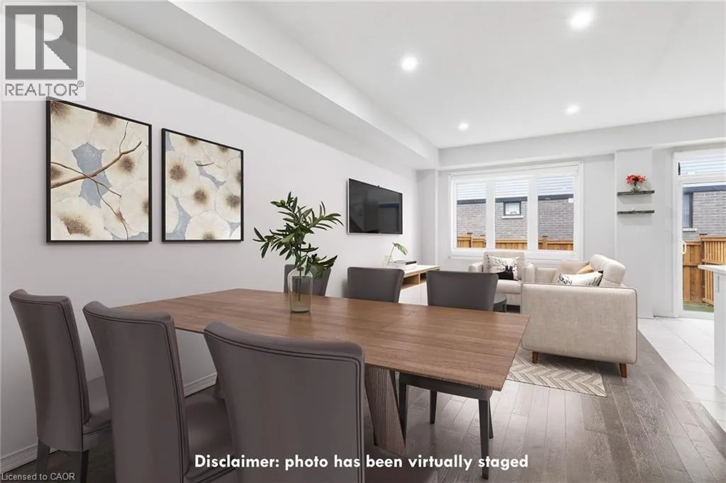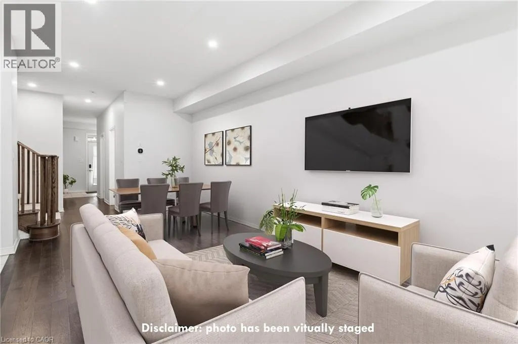 Go West onto Oaktree Drive from McClung Rd. Welcome home to this beautifully designed 3-bedroom, 3-bathroom freehold townhome, built in 2020 and located in one of the area's most vibrant and fast-growing communities. Thoughtfully finished with hardwood flooring, quartz countertops, designer pot lights, and black stainless steel appliances, this home offers a perfect blend of modern style and everyday functionality. The open-concept main floor is ideal for entertaining and busy family life, featuring a contemporary kitchen with clean lines, ample prep space, modern finishes, and pot lighting throughout. A walk-in coat closet off the front entrance provides excellent storage and helps keep the space organized and clutter-free. Upstairs, you'll find three generously sized bedrooms, including a spacious primary retreat complete with a walk-in closet and a private ensuite featuring a soaker tub and separate shower-your own peaceful escape at the end of the day. Step outside to enjoy your fully fenced backyard, offering added privacy and the perfect setting for kids, pets, or summer BBQs. Parking is convenient with a 1-car garage plus a private driveway space. This home is perfectly situated within walking distance to: two elementary schools, two daycare centers, a comprehensive medical hub (walk-in clinic, pharmacy, and dental),Tim Hortons, walking trails, a premier kids' park featuring basketball and tennis courts and a playground. Just minutes away, the Grand River offers scenic trails, kayaking, and year-round outdoor enjoyment. This move-in-ready townhome delivers modern living, comfort, and community-an ideal place to truly put down roots. (id:27476)
