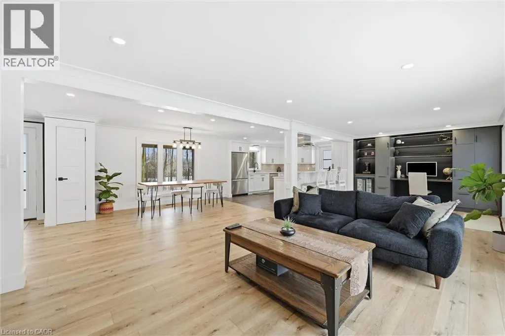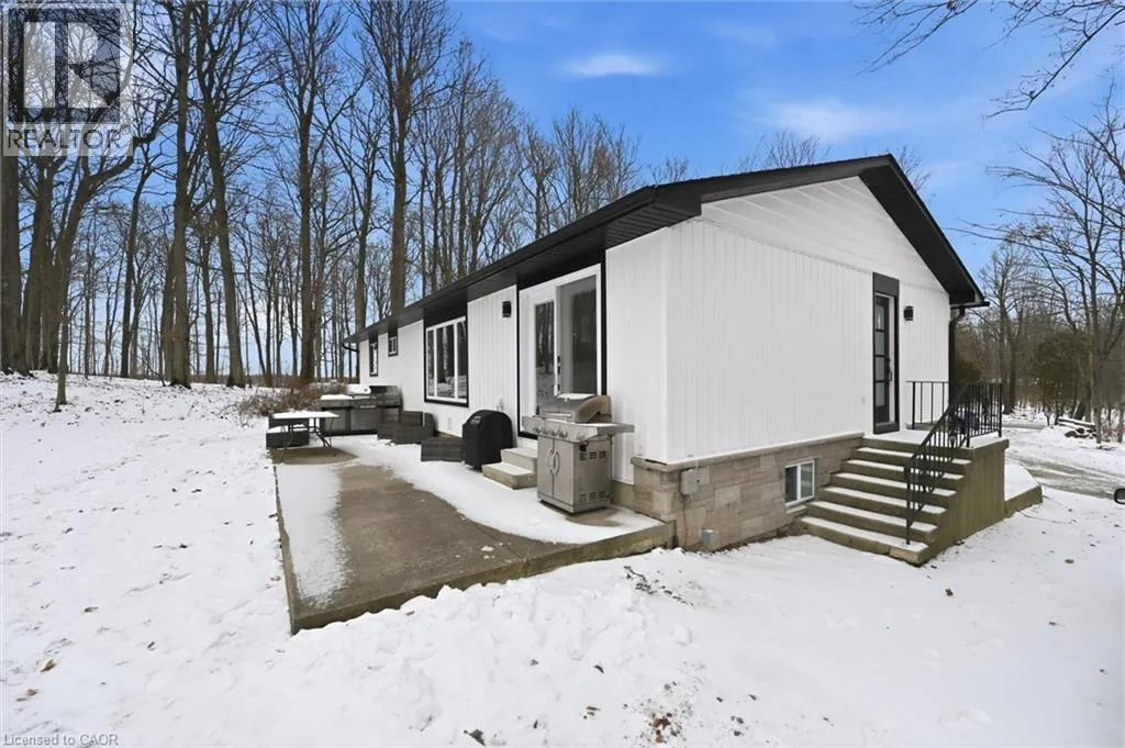HWY 6 SOUTH TO 5TH LINE Experience modern luxury in this fully renovated bungalow set on over 3 acres pristine, treed acres in rural Caledonia. This 3 bedroom, 2 bathroom home features a seamless open concept design and a fully finished lower level with a second kitchen -- perfect for multi-generational living or rental potential. New flooring, appliances, windows, light fixtures, bathrooms, windows and doors. Your friends will be envious the moment they walk through the door. The large front porch is perfect to sit outside and enjoy your morning coffee. Backyard is perfect for bbqs, family gatherings or sitting outside enjoying a fire on a fall day. Ample parking with second driveway is perfect for trades people with multiple vehicles and equipment. Significant equity opportunity exists with ample space for a shop, garage or future land severance. (id:27476)