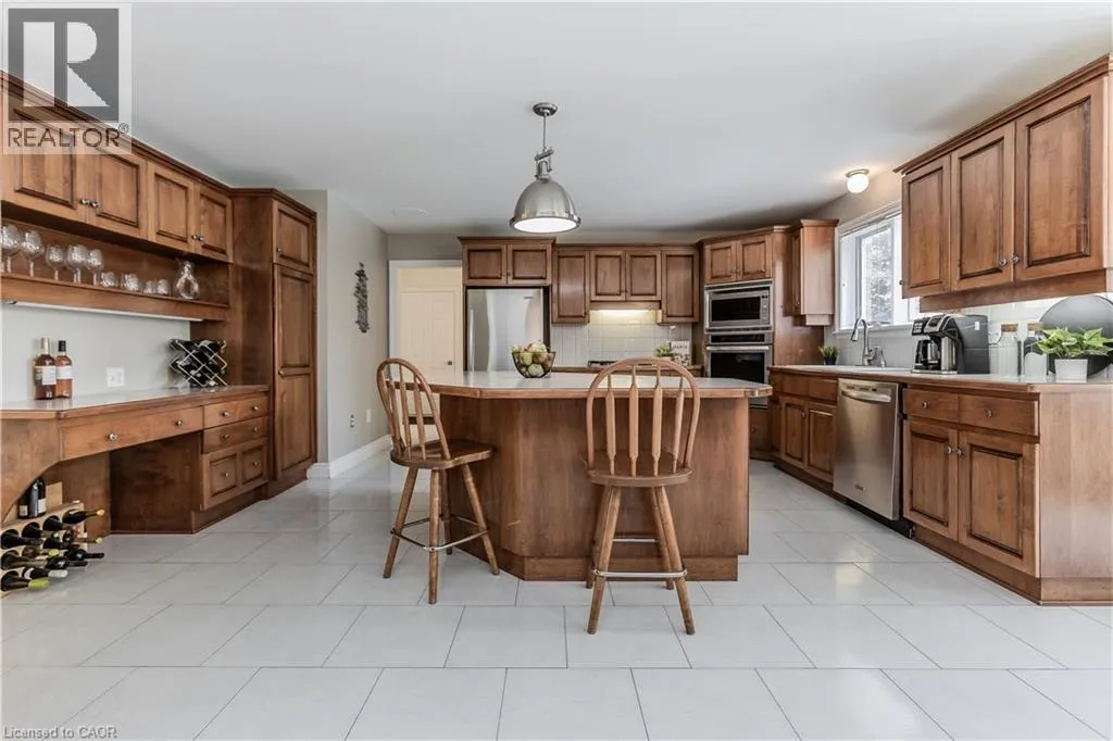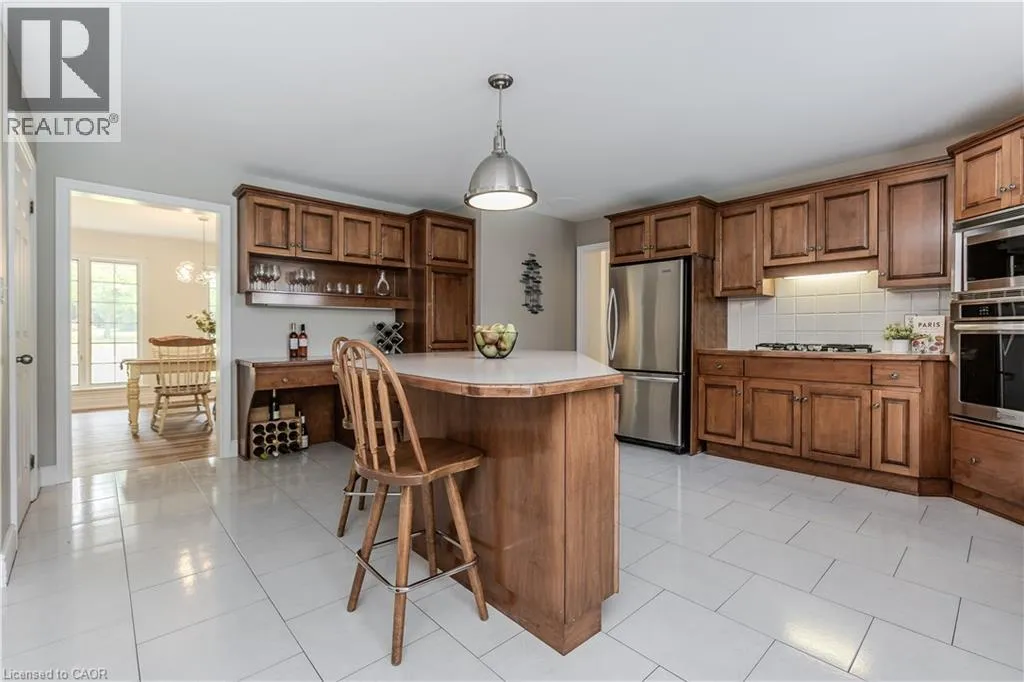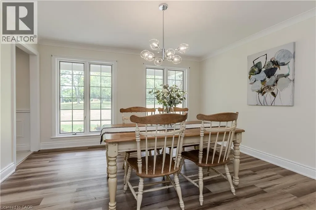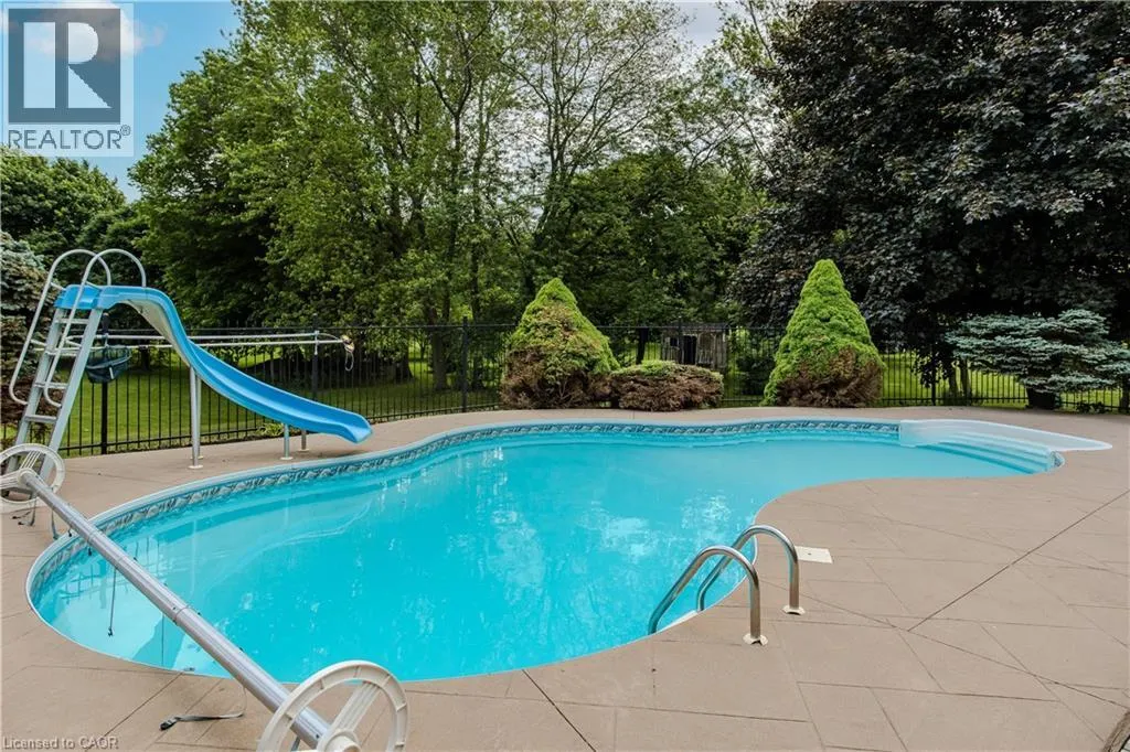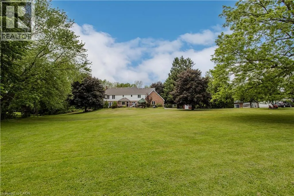 Haddington St to Berwick St to Lanark St Welcome to the ultimate blend of comfort and serenity in the heart of Caledonia. This stunning country home offers 3965sf of total living space, combining timeless charm with functional design for peak family lifestyle. Situated on a quiet, dead-end street steps from the Grand River and mins from amenities, this property delivers the best of both peaceful countryside surroundings with daily convenience. Set back from the road on a professionally landscaped large private lot, the curb appeal is undeniable. A 200ft asphalt driveway leads to a triple car garage with room for 68 vehicles, and an extra-wide front porch invites you in. Inside, find a thoughtfully designed main floor featuring laminate flooring throughout. The living room is bathed in light due to oversized windows, while the dining room provides ample space for meals and entertaining. The heart of the home is a farmhouse style eat-in kitchen with a large island with breakfast bar, SS appliances, tile backsplash, coffee/wine bar, and seamless flow into the family room with gas fireplace, wainscoting, and French doors to the backyard. A convenient entrance from the back deck leads to a laundry room and full 3pc bath perfect for pool days! Upstairs, a window seat nook adds character and charm. The expansive primary suite features a walk-in closet and a 4pc ensuite with extra-large jacuzzi tub. 3 additional bedrooms2 with walk-in closets and Deacons benches w/ storage and a 4pc bathroom complete this level. The partially finished basement offers in-law potential with a separate entrance, large sitting room and an additional versatile space ideal for an office, games room, or guest bedroom. Step outside to your very own entertainers dream yard, complete with wood deck, stamped concrete patio, tons of green space, and a fully fenced in-ground pool with slide perfect for summer fun with family and friends. A rare opportunity to enjoy a peaceful rural setting without sacrificing space, style, or convenience! (id:27476)