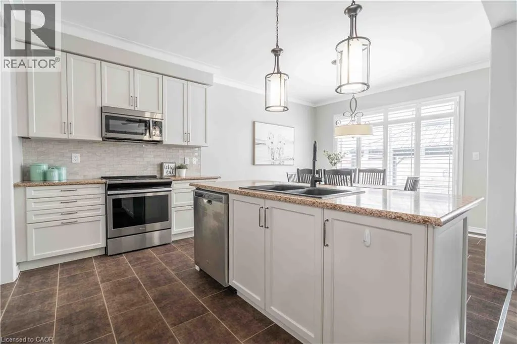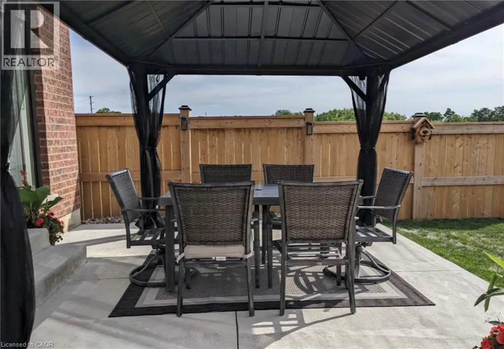 Hwy #6 to Reg Rd # 66, south on McClung Rd, West on Arnold Marshall Drive. AVALON Community Welcome to 115 Larry Crescent, beautifully located just steps from the lovely Grand River and Seneca Park. The newer community of AVALON provides conveniences and service for families in a sought-after rural setting. This impressive all-brick home is situated on a generous 37 ft lot, with excellent curb appeal, fully fenced back yard, double drive and double garage. You are invited to enjoy the well-maintained home at the covered front porch- a great place to enjoy a peaceful morning coffee or a sip at end of day! The spacious entrance of this 4 bedroom, 3 bath home escorts you into the foyer and then the open concept main level. Note the gas fireplace, the extensive use of crown moulding, the large windows and oversized patio doors to let the sunshine stream in. Features include: central peninsula, oversized pantry, stainless appliances, quartz countertops, built-in OTR micro-oven, ample cabinetry all in eat-in-kitchen, special central planning centre which could easily be home office or home-work centre, custom wooden California shutters throughout main level, inside access to garage. Upper level boasts brand new carpet on staircase and in 3 of 4 bedrooms; ideally located laundry (brand new dryer Feb 2026) and 2 full baths. Primary bedroom is oversized with 4 piece ensuite bath featuring soothing spa tub with separate shower. 3 other bedrooms share the primary 4-pc bath. Basement is partially finished awaiting your designer touches. Fenced private backyard provides a poured concrete patio complete with gazebo and also a handy garden shed. Back-flow valve, hard-wired CO detectors. Make this your next home! (id:27476)