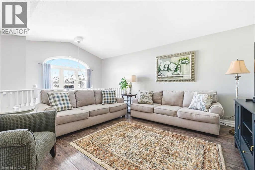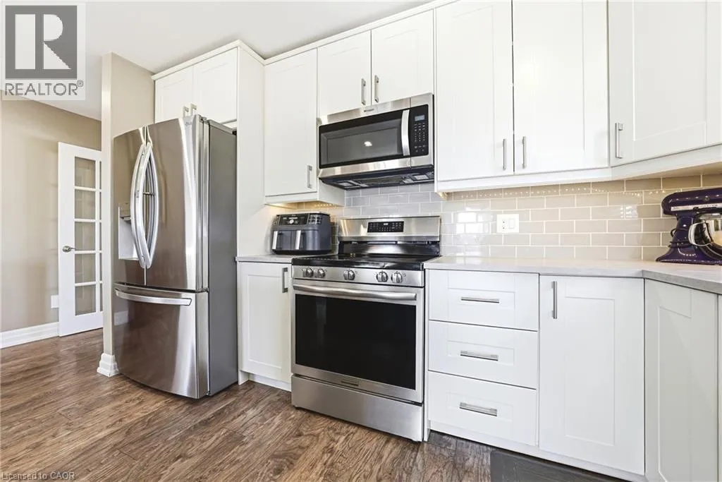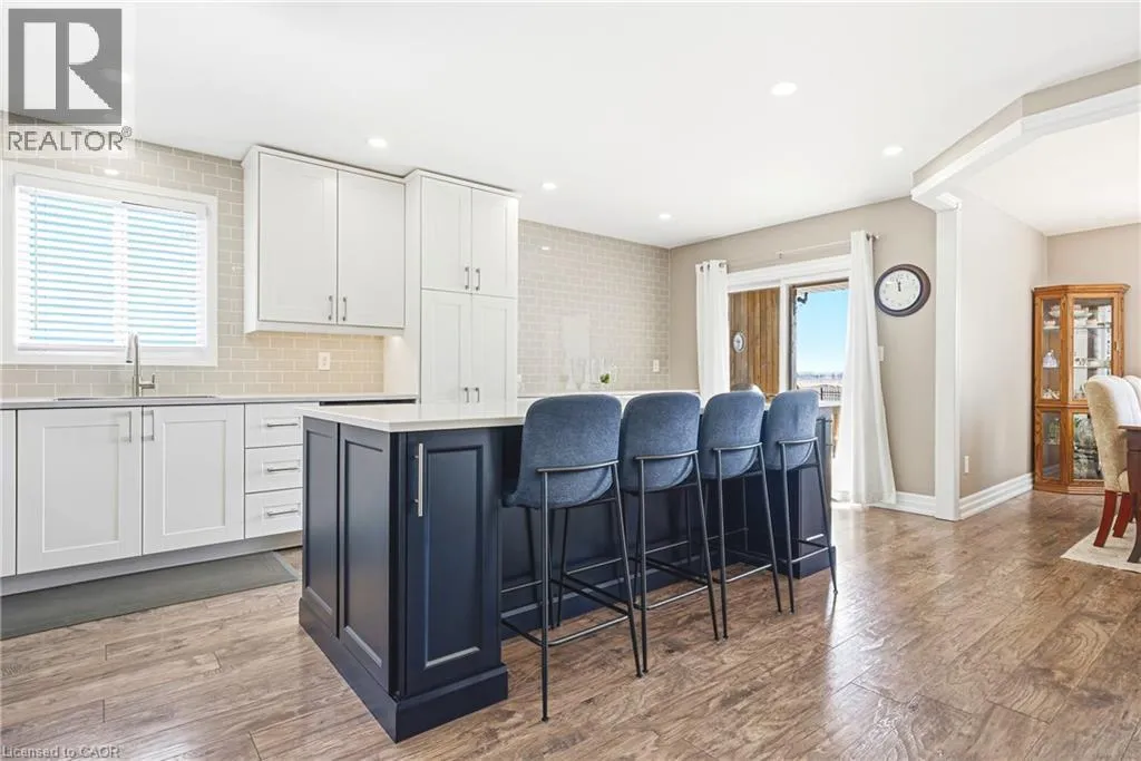 MCKENZIE RD-WEST ON FULLER DR Step inside and prepare to be impressed. This tastefully decorated, extensively updated home is ideal for the discerning buyer. With 2 bedrooms on the main floor (dining room could be converted back to 3rd bedroom), 2 bedrooms on the lower level and 2 full bathrooms, this home has room for the whole family. Both levels have been beautifully updated with thoughtful, yet practical upgrades. The stunning, bright white modern kitchen features a tiled backsplash, ample cupboard space, generous counter space, pot lights, as well as a beautiful new island with seating for four. The spacious family room boasts a soaring cathedral ceiling, creating a welcoming atmosphere for relaxing or entertaining. Throughout the home, youâll find updated flooringâprimarily wide-plank, easy-care laminateâextra-tall baseboards and abundant closet/storage space. Outside, enjoy a double asphalt driveway, oversized garage and a fully fenced backyard with new patio area and gazebo with no immediate rear neighbours for added privacy. Ideally located in a popular Caledonia neighbourhood, this impressive, well cared for home is a must-see. Close to all amenities. Room sizes approximate. (id:27476)