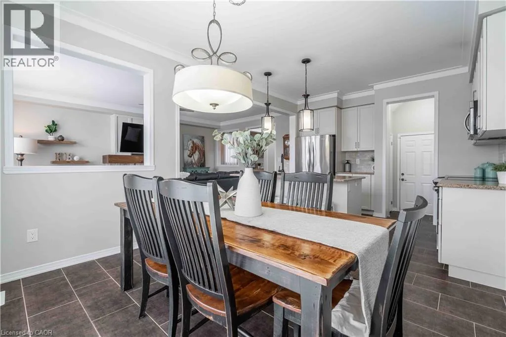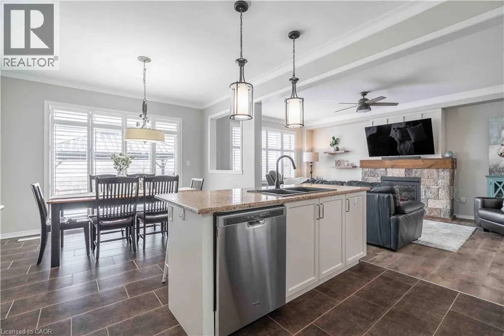 Hwy #6 to Reg Rd # 66, south on McClung Rd, West on Arnold Marshall Drive. AVALON Community OPEN HOUSE SUN FEB 22ND FROM 2PM-4PM.Welcome to 115 Larry Crescent, beautifully located just steps from the lovely Grand River and Seneca Park. The newer community of AVALON provides conveniences and service for families in a sought-after rural setting. This impressive all-brick home is situated on a generous 37 ft lot, with excellent curb appeal, fully fenced back yard, double drive and double garage. You are invited to enjoy the well-maintained home at the covered front porch- a great place to enjoy a peaceful morning coffee or a sip at end of day! The spacious entrance of this 4 bedroom, 3 bath home escorts you into the foyer and then the open concept main level. Note the gas fireplace, the extensive use of crown moulding, the large windows and oversized patio doors to let the sunshine stream in. Features include: central peninsula, oversized pantry, stainless appliances, quartz countertops, built-in OTR micro-oven, ample cabinetry all in eat-in-kitchen, special central planning centre which could easily be home office or home-work centre, custom wooden California shutters throughout main level, inside access to garage. Upper level boasts brand new carpet on staircase and in 3 of 4 bedrooms; ideally located laundry (brand new dryer Feb 2026) and 2 full baths. Primary bedroom is oversized with 4 piece ensuite bath featuring soothing spa tub with separate shower. 3 other bedrooms share the primary 4-pc bath. Basement is partially finished awaiting your designer touches. Fenced private backyard provides a poured concrete patio complete with gazebo and also a handy garden shed. Back-flow valve, hard-wired CO detectors. Make this your next home! (id:27476)