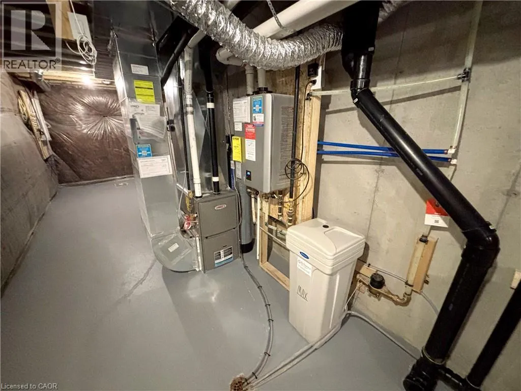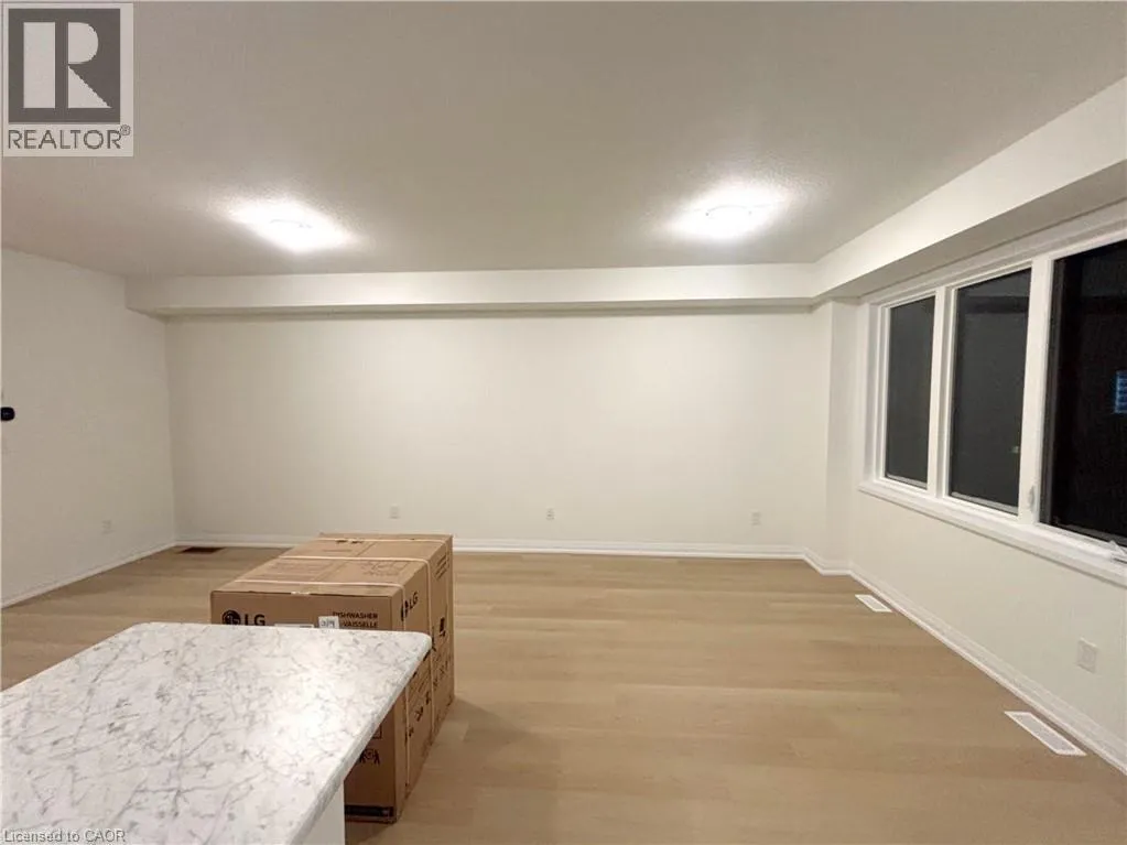 From Hwy 66 Head South On Stanley Ave and the East On March Dr BRAND NEW NEVER LIVED IN! This spacious 1,618 sq ft, move-in ready 3-bedroom plus den, 2.5-bath townhouse islocated in Empire Avalon's sought-after Caledonia community and offers modern, upscale living with a good-sized backyard and thousands spent in quality upgrades throughout. The bright open-concept main floor features 9ft ceilings, upgraded laminate flooring on the main and second levels, a convenient walk-in closet on the main floor by the foyer, and a premium kitchen with stylish modern finishes, brand new stainless steel appliances, ample cabinetry and counter space, and a functional island with breakfast bar, flowing seamlessly into sun-filled living and dining areas with sliding patio doors. Upstairs, the spacious primary bedroom offers a walk-in closet and a luxurious ensuite with a soaker tub, with two additional well-sized bedrooms, including a walk-in closet in the second bedroom along with a versatile office or study area and a full 4-piece bath. ***Enhanced with premium water and comfort rentals throughout, including a water softener, chlorine filter, reverse osmosis system, tankless water heater, and air conditioner which are ALL INCLUDED IN THE RENTAL PRICE*** while additional highlights include direct access to the single-car garage and an unfinished basement with painted concrete floors, lower-level laundry, and plenty of storage space, all set in a prime location minutes to schools, parks, shopping, dining, golf courses, scenic trails, the Grand River, and easy access to Hamilton. (id:27476)