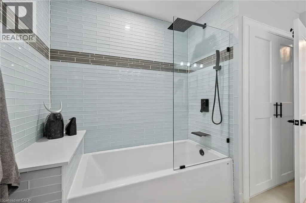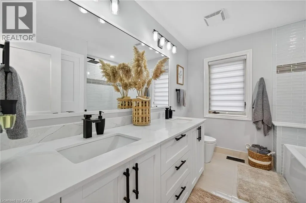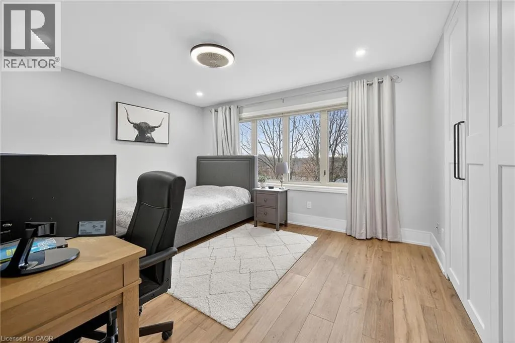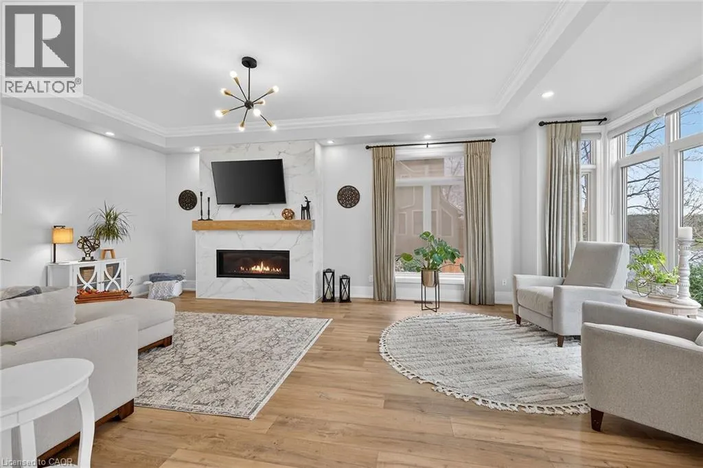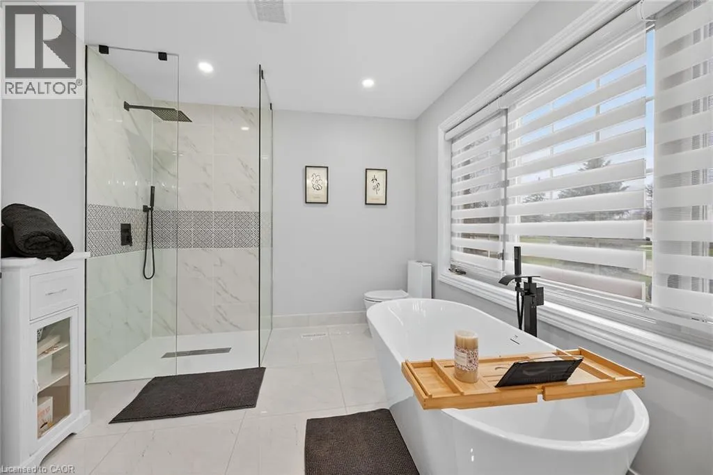Argyle St. N to Caithness St. E. This stunning home backing onto the Grand River has been completely renovated from top to bottom! This beautiful home sits on a double lot with over 5000 sq ft of living space. Amazing curb appeal with a circular driveway big enough for 10 cars and an oversized double garage. A grand foyer welcomes you to the spacious main level with 10' ceilings. You will notice the amazing nature light from the front foyer window and a wall of windows along the back of the home. A cozy living room awaits you with a gas fireplace leading to a lovely dining room perfect for meals with family and friends and an amazingly large functional kitchen with cabinets galore and a 10' island. Patio doors from the kitchen open to an upper deck with stunning views of the Grand River, an expansive backyard with a firepit and a 30' dock, you'll will feel like you're on vacation everyday. The main level also includes an office/bedroom off the front foyer, a 2 piece bathroom, laundry room and automatic blinds on the front foyer window, living room and dining room windows. Moving up to the 2nd floor, you will find a gorgeous primary bedroom with a walk in closet, a spa like ensuite with a walk in shower and soaker tub, also 3 generous sized bedrooms and a 4 piece bathroom. All bedroom closets have closet organizers. The expansive lower level includes a large family room with pool table, 3 more bedrooms and a bright 3 piece bathroom. The lower level family room leads you to a covered patio with an 8 person Beachcomber hot tub, enjoy peaceful evenings star gazing and river views. In addition to the oversized double garage, there is a utility garage at the back of the house which is perfect for your riding lawnmower and anything other landscaping equipment. Country feels with all the amenities near by! Don't miss out on this wonderful family home! (id:27476)
