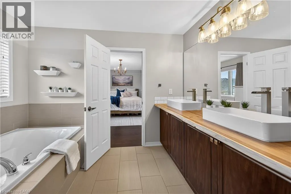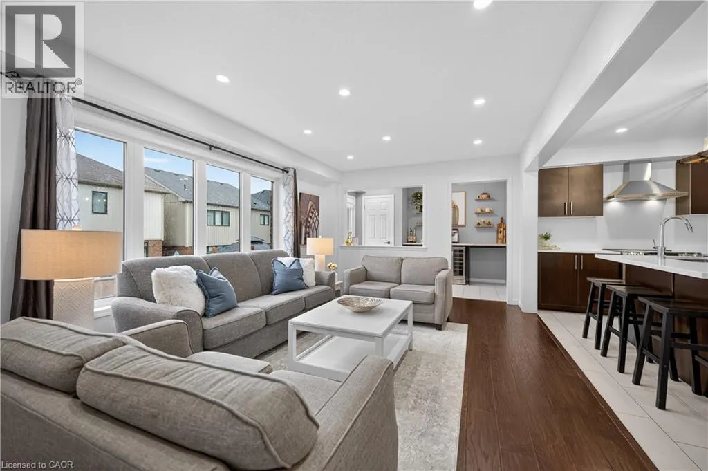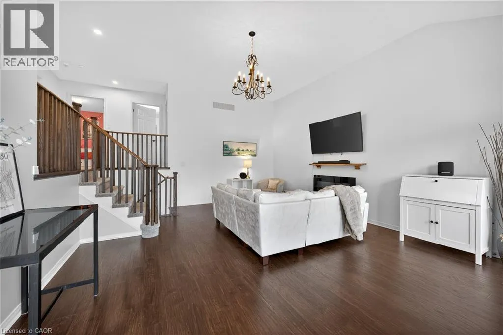 Stylish, spacious, and move-in ready! This beautiful detached 4-bedroom home in Avalon area of Caledonia, built in 2018, offers the ideal blend of modern design and everyday function. The open concept main floor is perfect for family living and entertaining, featuring a gorgeous kitchen with quartz countertops and backsplash and a thoughtfully designed side area ideal as a coffee station, bar, or serving space with convenient access to the rear yard. One of the standout features of this home is the stunning great room with soaring ceilings, an electric fireplace, and patio doors opening to a front balcony, offering a bright and inviting space to relax or gather. The spacious primary bedroom retreat includes two walk-in closets and a lovely ensuite complete with his and hers sinks, a separate shower, and a soaker tub. Main-floor laundry adds to the homeâs everyday practicality. Beautiful floors, wood stairs, a large kitchen pantry, and spacious bedrooms offer everything you need and must be seen. This home, located in one of Caledonia's desirable family neighbourhoods, features a double garage, driveway, and proximity to newer elementary schools, making it a perfect fit for families. (id:27476)