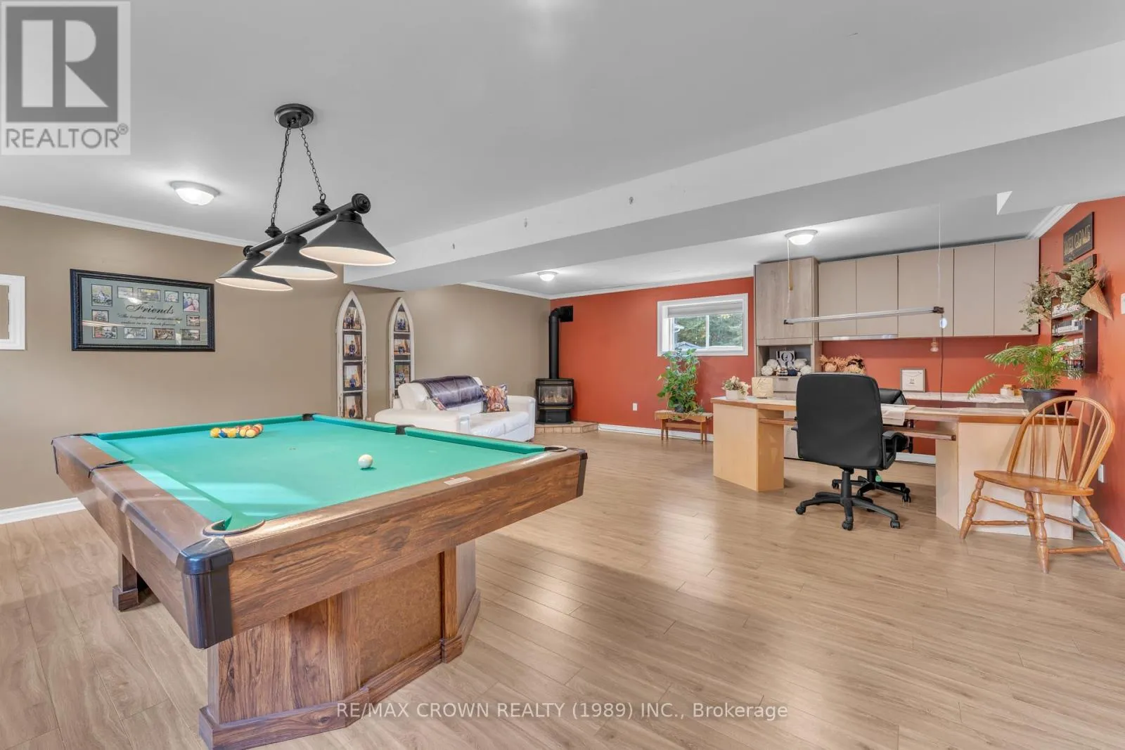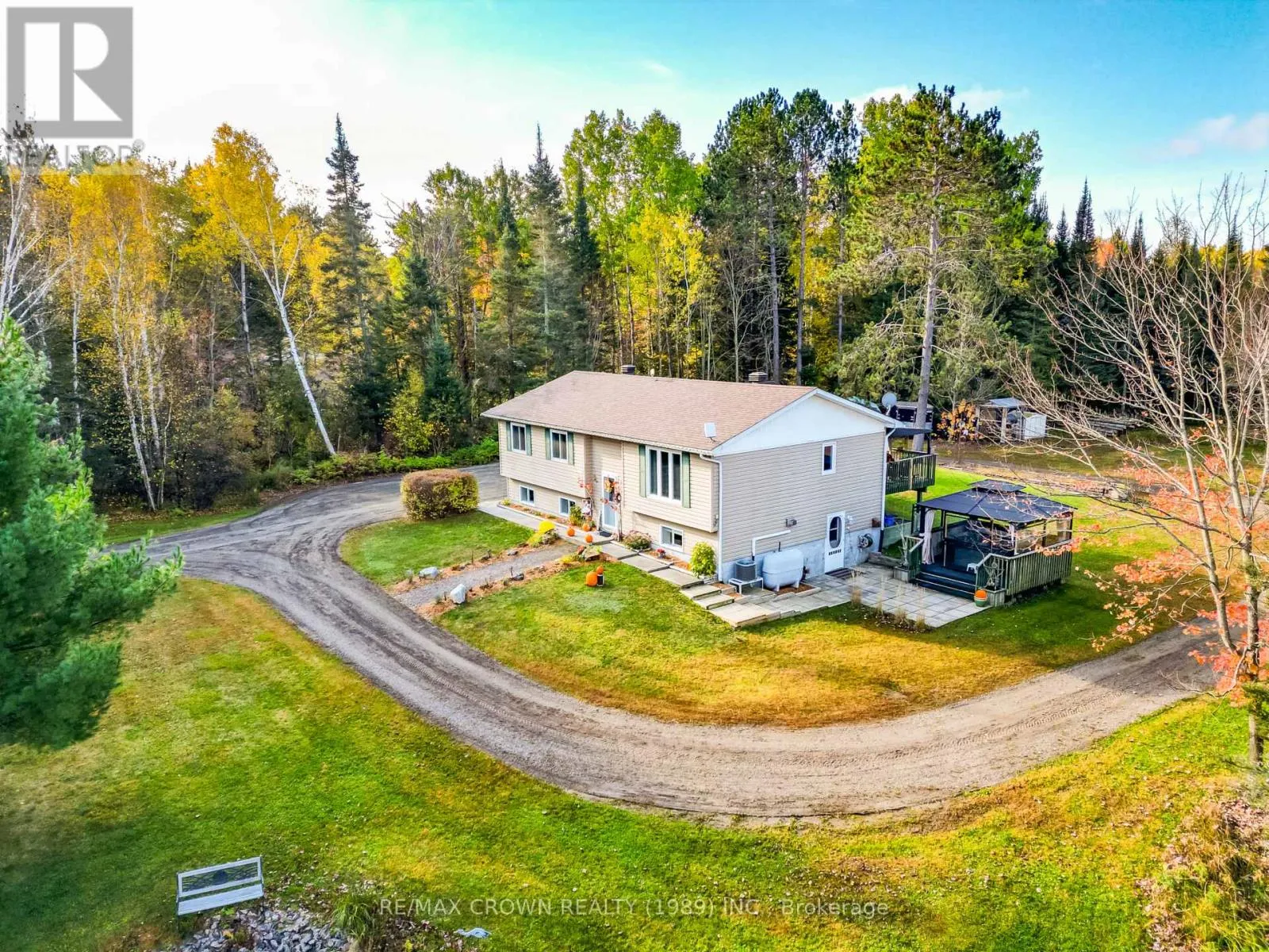Cross Streets: Hart Road. ** Directions: West on HWY 654 Left on McDonald Road, Right on Hart Road, Left on Byers Road, property on Right, SOP. Charming Country Bungalow on 4 Acres. Welcome to 65 Byers Road. A beautiful 4-bedroom, 2-bathroom bungalow perfectly set on a serene 4-acre lot just minutes from downtown Callander. This property combines peaceful country living with modern comfort and functionality, offering everything you need to enjoy life both indoors and out. Step inside to find an inviting open-concept layout featuring a spacious kitchen with a center island, perfect for cooking and gathering. The formal dining area includes french doors that open to a large back deck, ideal for relaxing or entertaining while overlooking your private, landscaped surroundings. The main floor hosts three comfortable bedrooms, each with closet space, and a full 4-piece bathroom. Downstairs, the finished lower level offers a large rec room with a cozy fireplace, a pool table and dart board, an additional bedroom, and a second full bathroom, providing flexible living space for guests, teens, or in-laws. A convenient mudroom with access to the side/back yard and hot tub adds practicality for busy families or outdoor enthusiasts. Outside, you'll love the property's detached 24'x30' double-car garage fully insulated and heated, along with plenty of gardens, a picturesque man-made pond, and endless room to explore or enjoy outdoor hobbies. This property captures the best of rural living with all the comforts of home. Heated by a brand new forced air propane furnace, propane fireplace and features AC for those toasty days! Don't miss the opportunity to make 65 Byers Road your own piece of paradise in beautiful Callander. (id:27476)