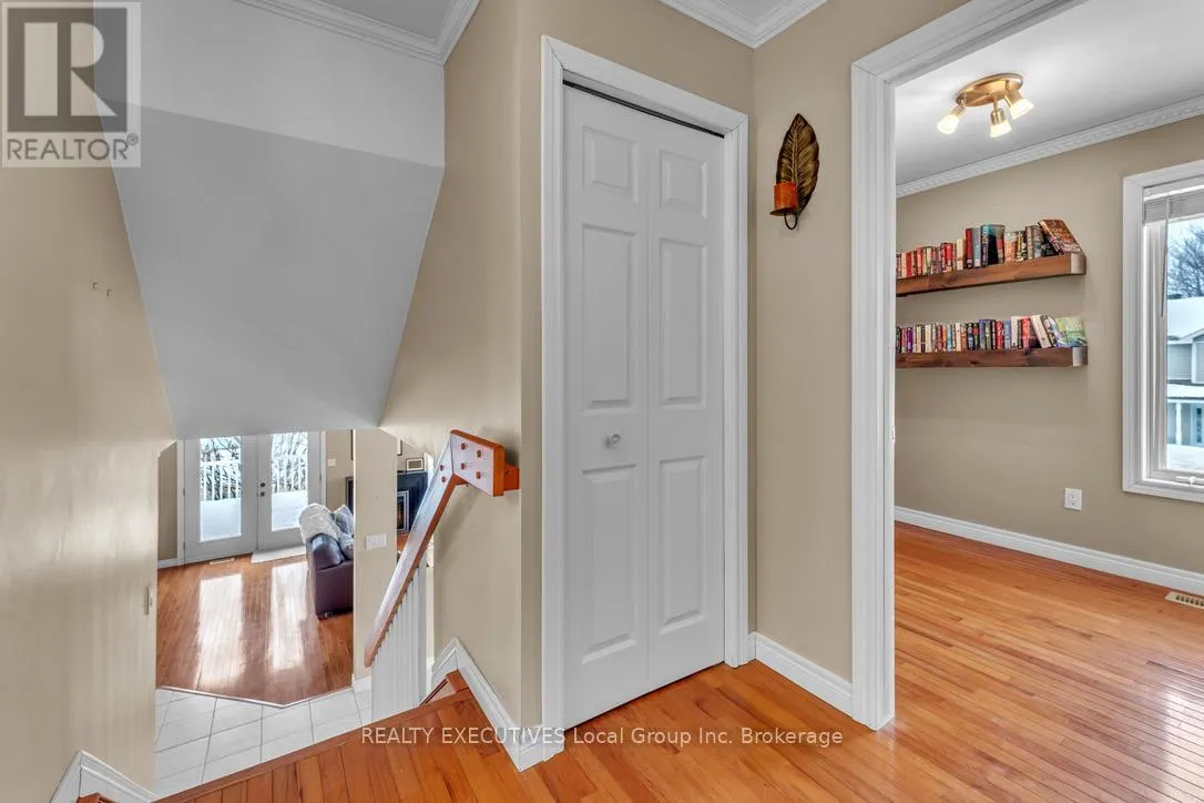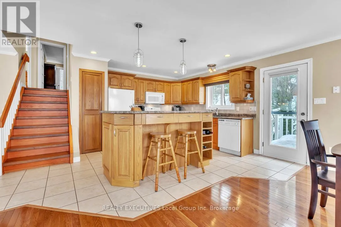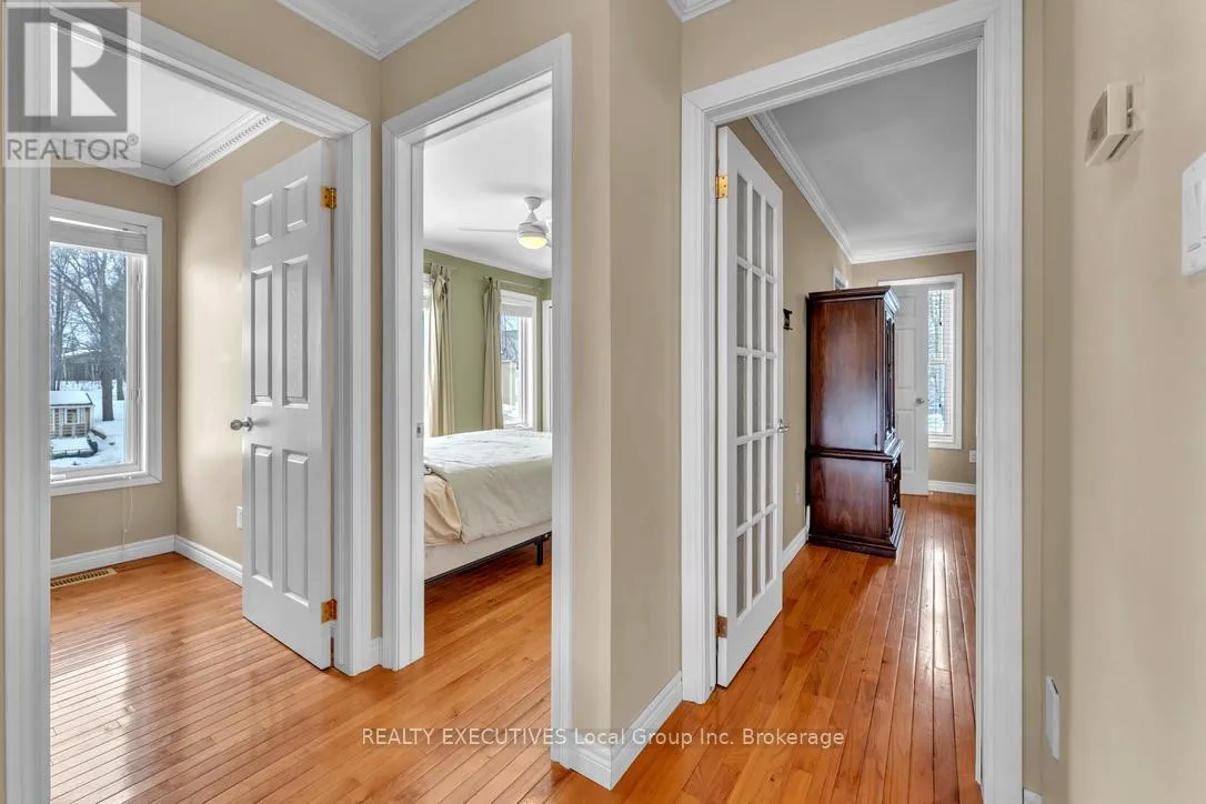 Cross Streets: Callander Bay Dr and Swale. ** Directions: Swale to King to Woodlands. Welcome to this beautifully maintained detached home in the sought-after community of Callander, just a short walk to the waterfront and the popular Centennial Park on the shores of Lake Nipissing. This inviting property offers the perfect blend of comfort, space, and small-town charm.The home features a double car garage and a triple-wide interlocking brick driveway, providing ample parking for family and guests. Inside, you'll find a bright open-concept living space highlighted by large windows that fill the home with natural light, along with beautiful hardwood flooring throughout the main living areas.The upper level includes three bedrooms, including a spacious primary suite with a walk-in closet and private ensuite bath, offering a comfortable retreat at the end of the day.The lower level boasts a generous recreation room, perfect for entertaining or relaxing with family. A pool table is included with the home, making the space ready for game nights. From here, enjoy a convenient walk-out to a screened-in porch, ideal for summer evenings without the bugs.Outside, the yard offers a peaceful, natural setting with mature trees that provide privacy and a cottage-like atmosphere. A storage shed adds extra space for tools, lawn equipment, or recreational gear.Located within walking distance to the beach, parks, and local amenities, this home offers a wonderful lifestyle in one of the most scenic communities near North Bay. (id:27476)