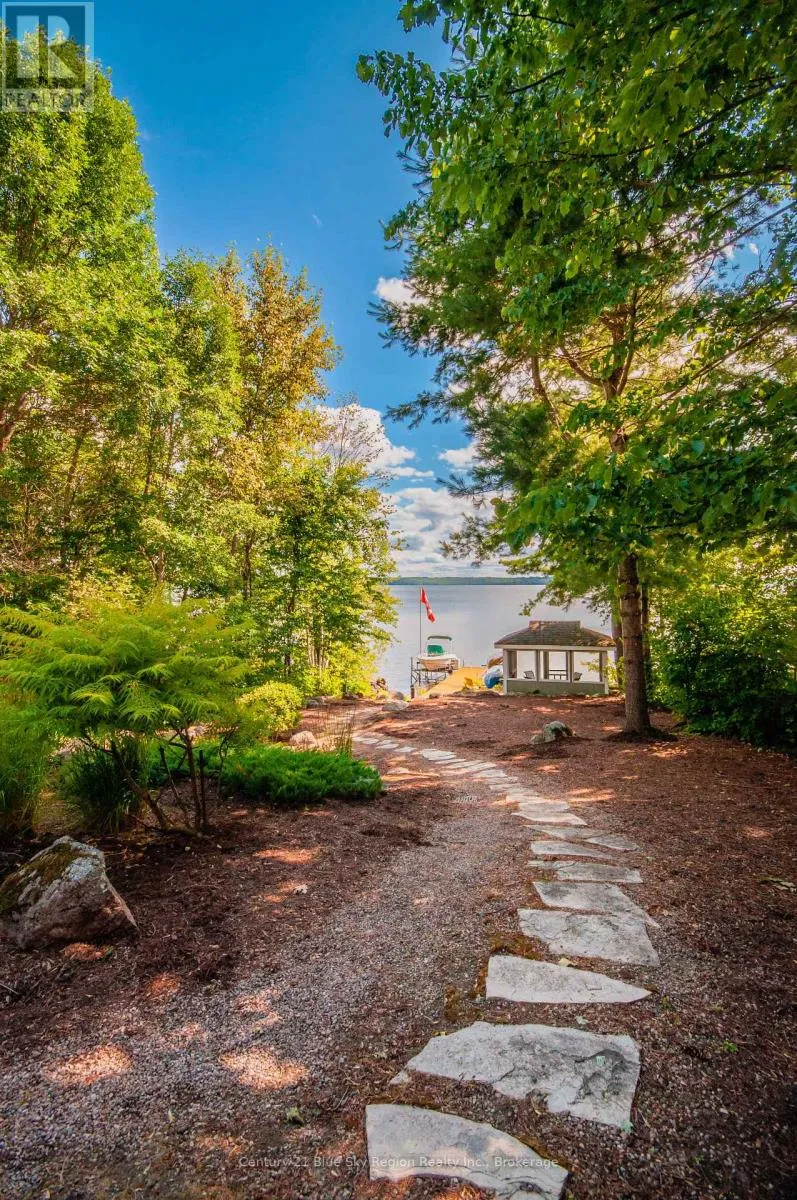 Cross Streets: OSPREY/MARINE. ** Directions: OSPREY CRES TO MARINE DR. Welcome to this stunning, custom-built south-facing home on an extra-deep waterfront lot on Callander Bay, Lake Nipissing, located in the desirable Osprey Links Subdivision with full municipal services. Nestled among majestic pines, this 3,900 sq. ft. home offers 4 bedrooms, 3.5 bathrooms, and both attached & detached double car garages. The main floor boasts a welcoming foyer, a sunken living room with vaulted pine ceiling, and a beautiful floor-to-ceiling limestone double-sided gas fireplace. The open-concept kitchen and dining area features maple cabinetry, granite counters, a large island with bar seating, and 21ft vaulted ceilings, with direct access to a large south-facing deck. The main floor primary suite overlooks the lake and includes its own fireplace, two walk-in closets, and a luxurious 5pc ensuite with a soaker tub. A 2pc powder room and a spacious mudroom/laundry area with garage access complete the main level. Upstairs, a large loft with custom maple staircase overlooks the living area ideal as a lounge, office, or kids' space. The walkout lower level includes a spacious rec room, exercise/flex area, 3 bedrooms (each with double closets), a 3pc bath (shared ensuite), and a 4pc Jack & Jill bath, plus storage and utility space. The naturally landscaped lot gently slopes to the water, with a lakeside gazebo, deck, and cantilever dock for easy seasonal use. Efficient forced air gas heating with AC, plus radiant heat in the lower level. From Callander Bay to the French River you have direct access to endless boating, sailing, fishing & snowmobiling from your front door. Close to the 18-hole Osprey Links Golf Course, beaches, trails, shopping, and only minutes from North Bay, 3.5 hours north of Toronto. (id:27476)