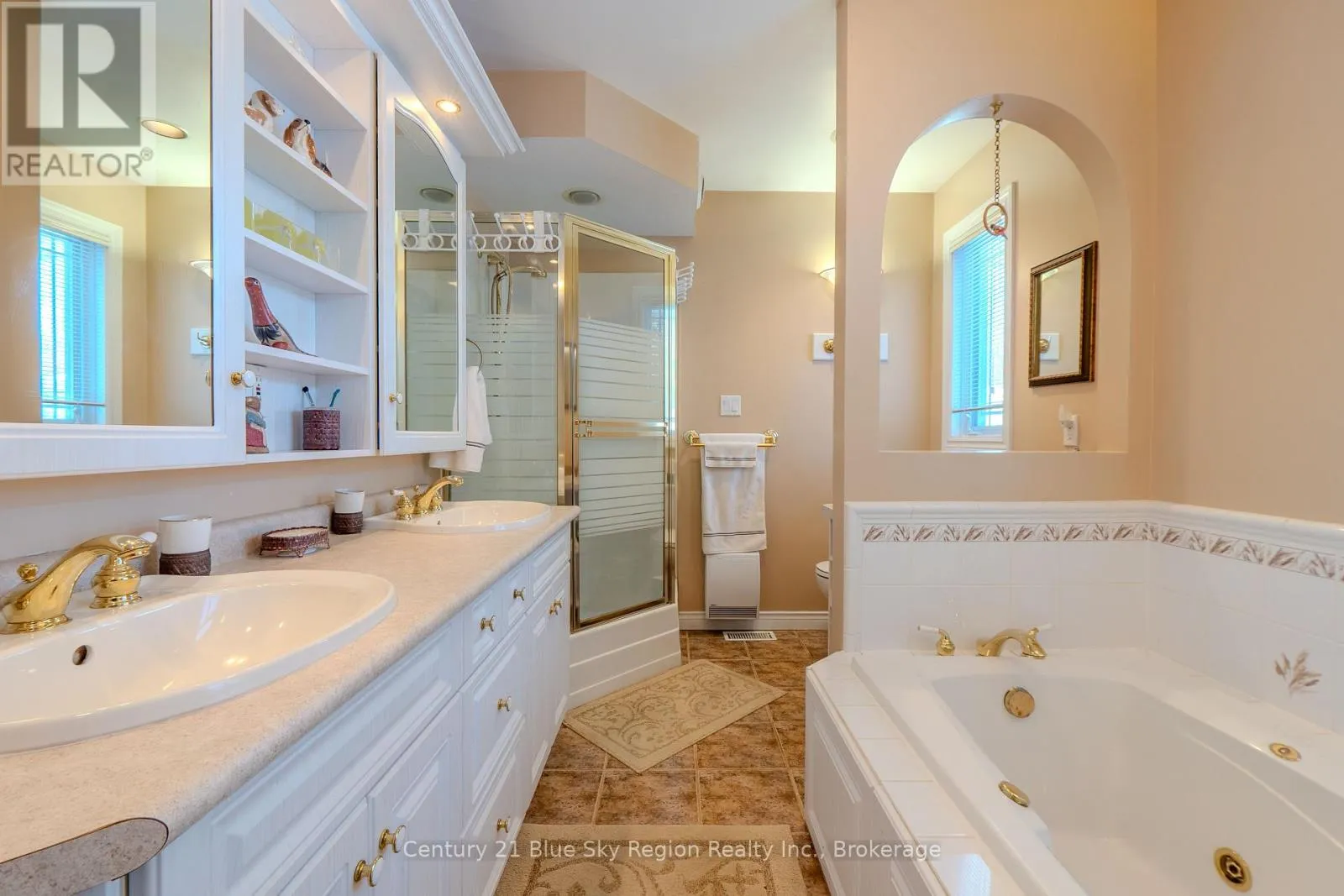 Cross Streets: OSPREY & MARINA. ** Directions: GOLF COURSE TO KILBY TO OSPREY. "HOME OF DISTINCTION" Panoramic views of Callander Bay, this Exquisite Custom-Built Executive Home is situated in Osprey Links subdivision, Callander, features 2600 ft. of finished living space with True Elegance. Main floor features a designer Kitchen & Island, fashioned from bleached oak & designed by Dowdal Cabinets. Beautiful oak hardwood flooring, trim, and ceramic tile, plus casement windows, with a walkout to an L-shaped composite deck (28 x 9'6), overlooking Callandar Bay. Open concept main floor, with a living room with a gas fireplace, plus a dining room, ideal for entertaining. Main floor laundry, two-piece powder room, and entrance to a two-car heated garage. Main floor master bedroom with a five-piece en suite Jacuzzi tub, along with 3 bedrooms downstairs and a four-piece bath with a walkout onto the front Rock Garden, ideal for the gardener. Mechanics include: Forced air heat(blower) with in-floor heating downstairs and in the garage, using a hot water boiler system, which is very efficient, and a central VAC system. Exterior features include low-maintenance rock gardens & an interlocking brick driveway for six vehicles, a garden shed, and a parking pad for your four-wheeler. Located minutes away from the Osprey Links Golf Club, this property can be the Dream Home, that you've been looking for. "Shows Pride of Ownership". (id:27476)