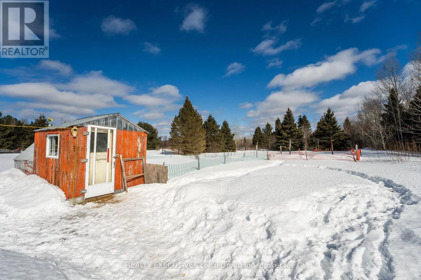Cross Streets: Development Rd. ** Directions: Hwy 17 East to Gagne Rd at the Red and White Store in Rutherglen. Turn left of Park Street, right on Rutherglen Line, left on Development Rd, Right on Mt Pleasant Rd to sign. Nestled in the peaceful countryside of Rutherglen, just 20-30 minutes from North Bay, this charming farmhouse offers the perfect blend of rural tranquility and everyday convenience. Set on over 100 acres of picturesque land, the property provides endless opportunities to create your dream hobby farm, grow your own food, and embrace a self-sufficient lifestyle. The cozy home features three comfortable bedrooms and two full bathrooms, ideal for those seeking extra space for growing families. The two-story portion of the house is equipped with efficient boiler/radiant in-floor heating, delivering consistent warmth and energy-conscious comfort. In the inviting family room and welcoming entryway, an efficient woodburner adds both charm and supplemental heat, creating a warm and inviting atmosphere throughout the cooler months. Outside, the expansive acreage offers room for gardens, livestock, and recreation. A chicken coop is already in place, making it easy to enjoy fresh eggs from your own backyard, and wild blueberries, blackberries, raspberries, sunchokes and staghorn sumac make this property a forager's dream. Whether you envision cultivating crops, raising animals, or simply enjoying wide-open spaces, fresh stream and scenic views, this property provides the flexibility and privacy to make it your own. Affordable country living meets modern comfort in this serene farmhouse retreat-where peaceful surroundings and practical features come together to create a truly special place to call home. (id:27476)