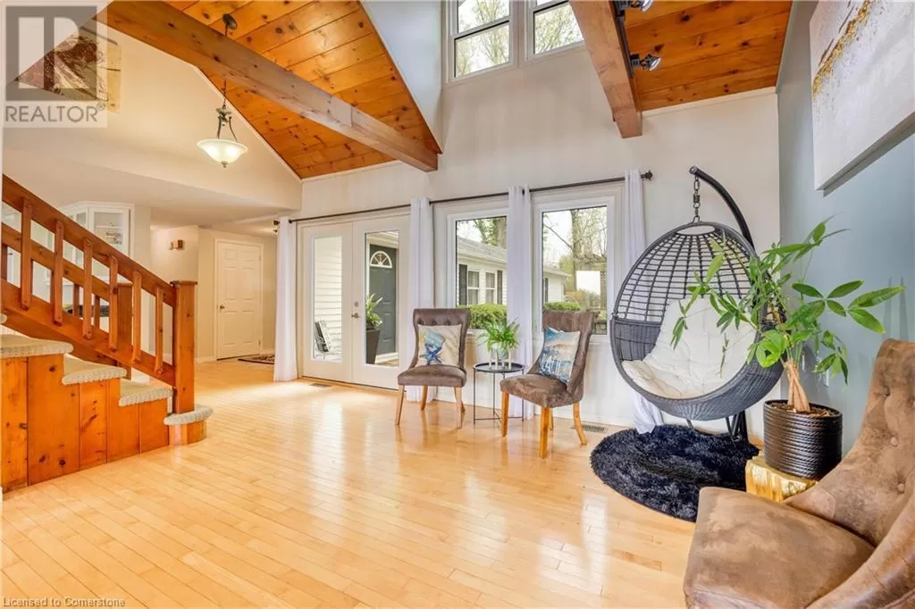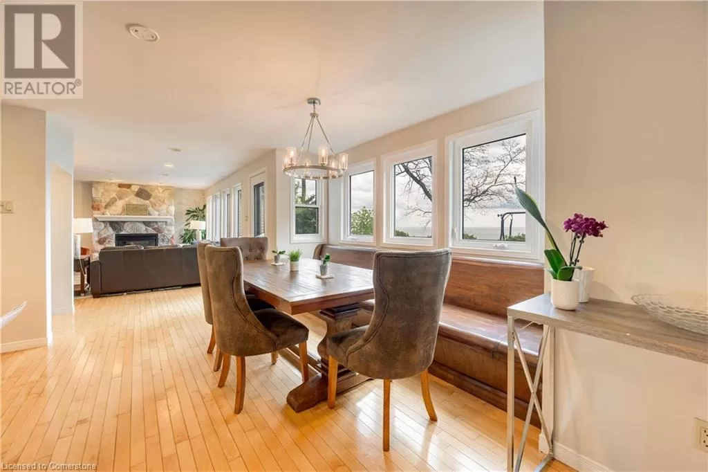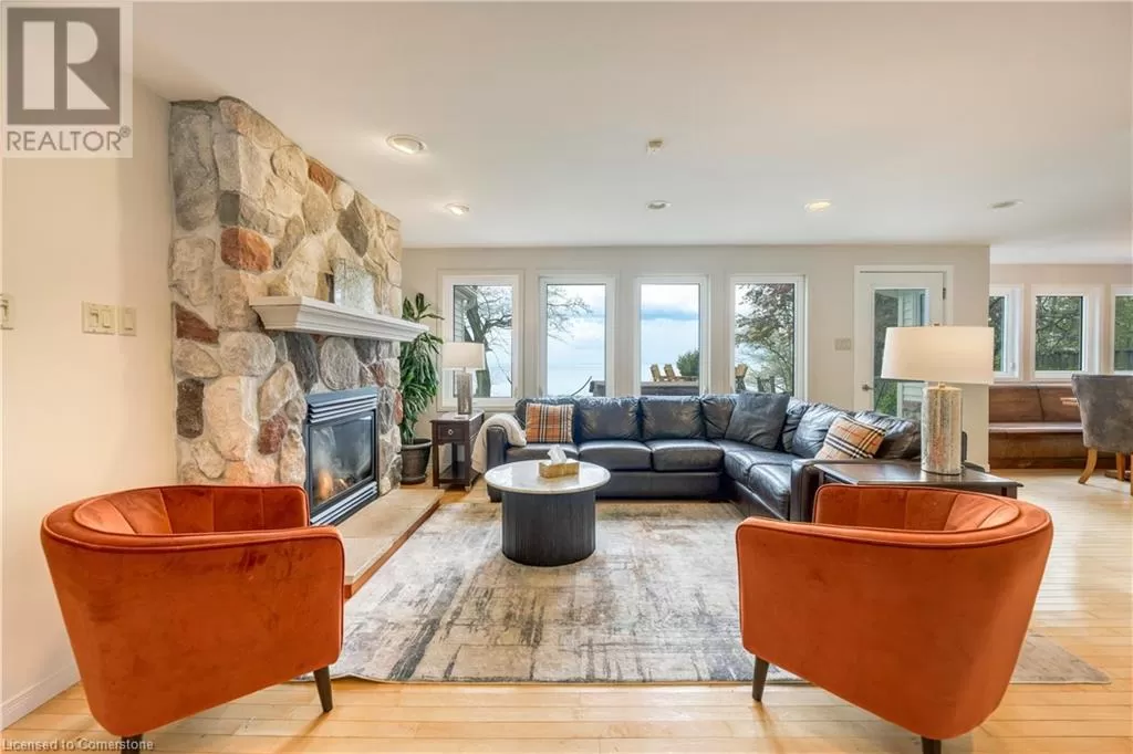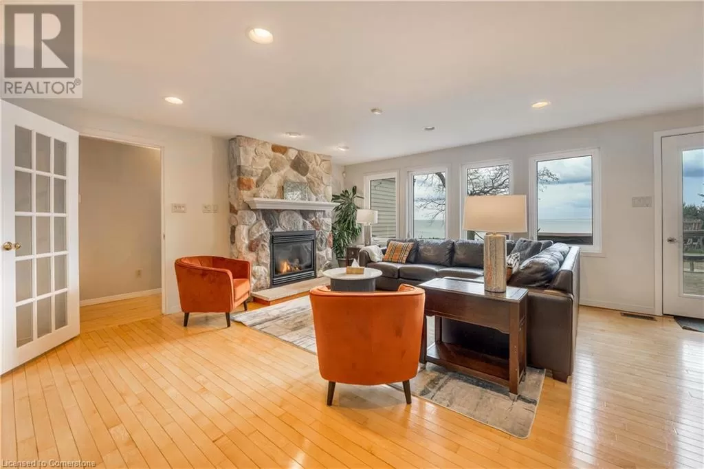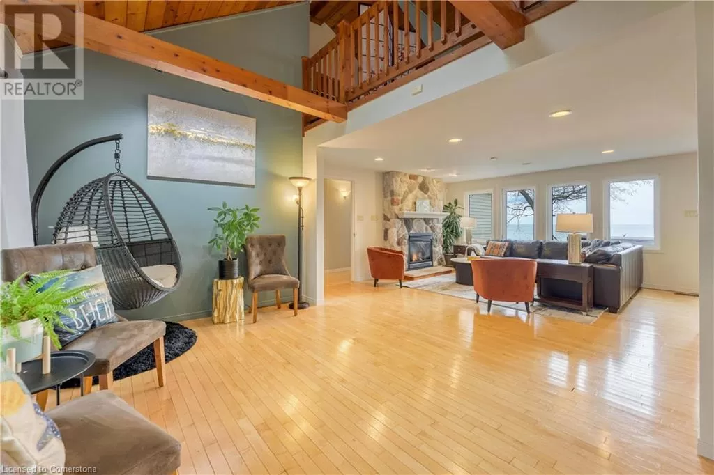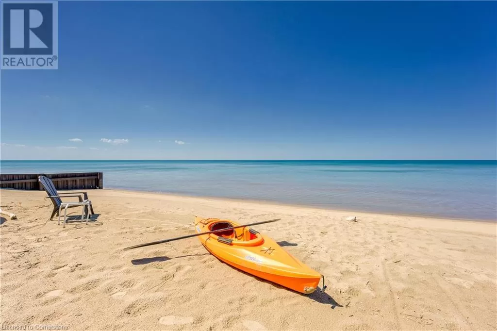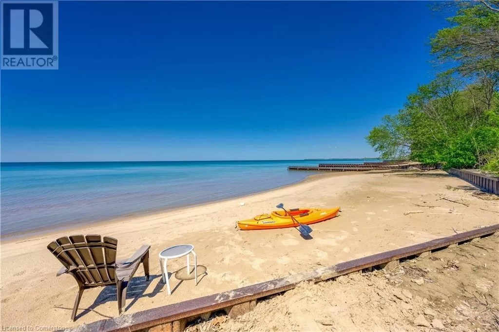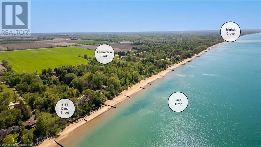 From Egremont Road (Old Lakeshore Rd) to Wellington Beach 2, Left onto Dana Street. Home is on your right. Charming lakefront retreat on 75ft of stunning shoreline overlooking the crystal blue waters of Lake Huron. Tucked away on a private road, surrounded by mature trees, sits a beautifully crafted beach house with coastal inspired design & wall to wall windows showcasing remarkable sunsets over the water. From the courtyard you are welcomed through double doors to an inviting, character filled space. Sun streams in from the many windows highlighting the warm wood beams, staircase railing, wood clad vaulted ceilings & natural toned hardwood flrs. Featuring ~3,000 sq.ft. of living space, this thoughtfully designed home offers 4 bedrms & 3 full bathrms on the main floor. The loft/mezzanine boasts a 5th bedrm, 1/2 bathrm & flexible living space where you could set up a cozy reading nook, creative artist studio, home office or all of the above. At the heart of the home lies the open-concept living area with a stone surround gas fireplace, spacious kitchen with breakfast bar & a built-in dining nook. Imagine the fun gathering as everyone sits down to dinner with the lake as your backdrop. Wake up to the sound of gentle waves hitting the shore from the primary bedrm retreat that offers privacy with your own ensuite bathrm & walk-in-closet. Sliding doors from the main living area provides for a seamless flow between indoors & outdoors. Stepping outside to the gorgeous backyard, your choice of where to relax are many - be it on the stone patio with hot tub, down on the deck overlooking your private beach or sunbathing on the sand at the waterâs edge. Although you feel far away from it all, necessities are close by & you are only minutes to the beachside community of Brightâs Grove. Enjoy paddle boarding, kayaking & boating - or stay on land with tennis & pickleball courts nearby. Whether you are dreaming of year-round beachside living, planning family getaways or looking for a home you could occasionally rent out as an AirBnB look no further than this exceptional property! (id:27476)