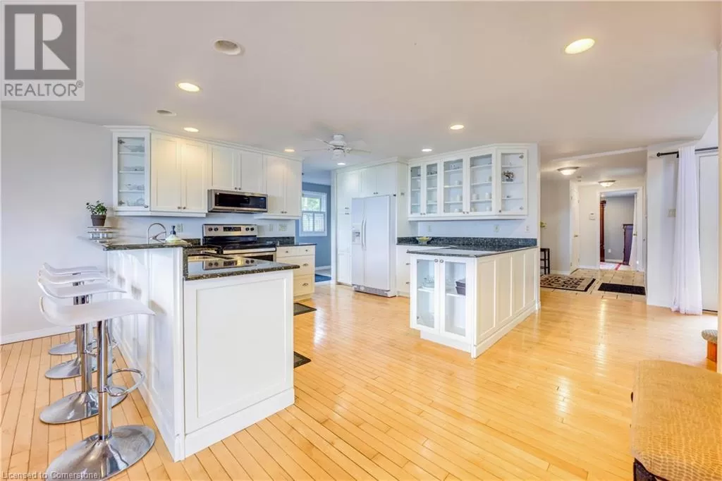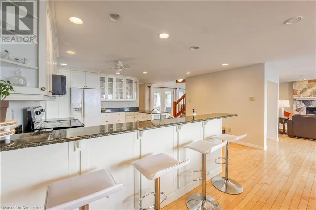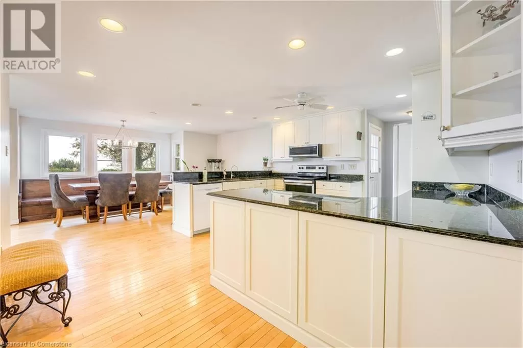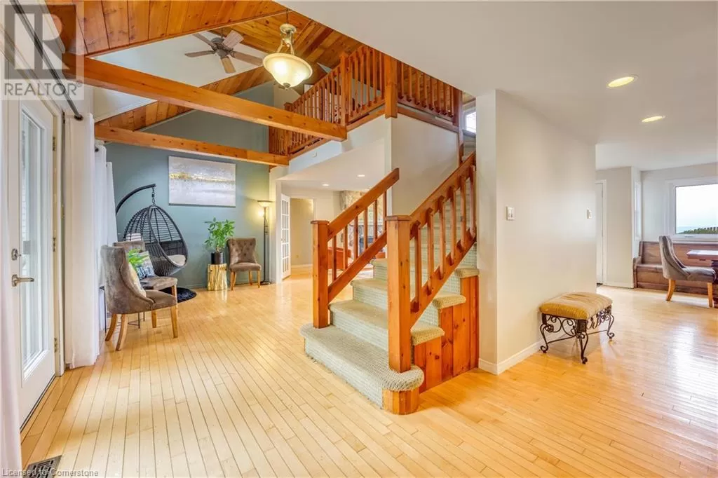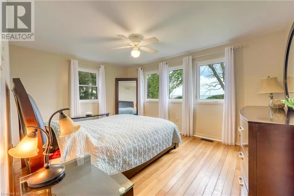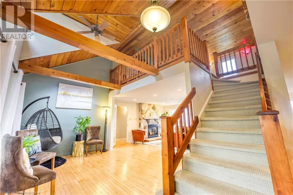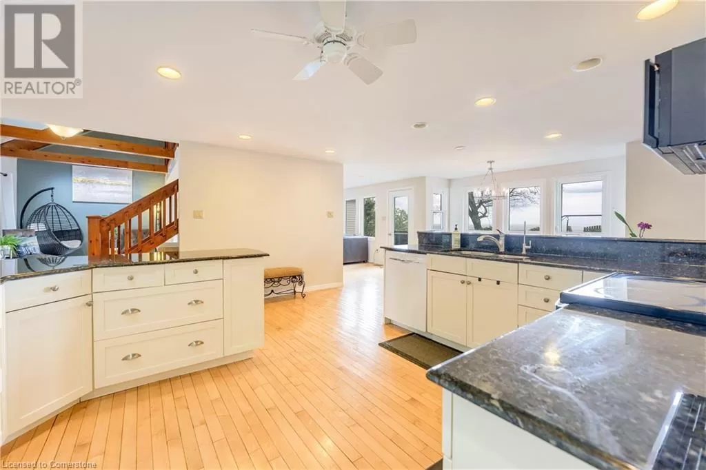 From Egremont Road (Old Lakeshore Rd) to Wellington Beach 2, Left onto Dana Street. Home is on your right. Charming lakefront retreat on 75ft of stunning shoreline overlooking the crystal blue waters of Lake Huron. Tucked away on a private road, surrounded by mature trees, sits a beautifully crafted beach house with coastal inspired design & wall to wall windows showcasing remarkable sunsets over the water. From the courtyard you are welcomed through double doors to an inviting, character filled space. Sun streams in from the many windows highlighting the warm wood beams, staircase railing, wood clad vaulted ceilings & natural toned hardwood flrs. Featuring ~3,000 sq.ft. of living space, this thoughtfully designed home offers 4 bedrms & 3 full bathrms on the main floor. The loft/mezzanine boasts a 5th bedrm, 1/2 bathrm & flexible living space where you could set up a cozy reading nook, creative artist studio, home office or all of the above. At the heart of the home lies the open-concept living area with a stone surround gas fireplace, spacious kitchen with breakfast bar & a built-in dining nook. Imagine the fun gathering as everyone sits down to dinner with the lake as your backdrop. Wake up to the sound of gentle waves hitting the shore from the primary bedrm retreat that offers privacy with your own ensuite bathrm & walk-in-closet. Sliding doors from the main living area provides for a seamless flow between indoors & outdoors. Stepping outside to the gorgeous backyard, your choice of where to relax are many - be it on the stone patio with hot tub, down on the deck overlooking your private beach or sunbathing on the sand at the waterâs edge. Although you feel far away from it all, necessities are close by & you are only minutes to the beachside community of Brightâs Grove. Enjoy paddle boarding, kayaking & boating - or stay on land with tennis & pickleball courts nearby. Whether you are dreaming of year-round beachside living, planning family getaways or looking for a home you could occasionally rent out as an AirBnB look no further than this exceptional property! (id:27476)