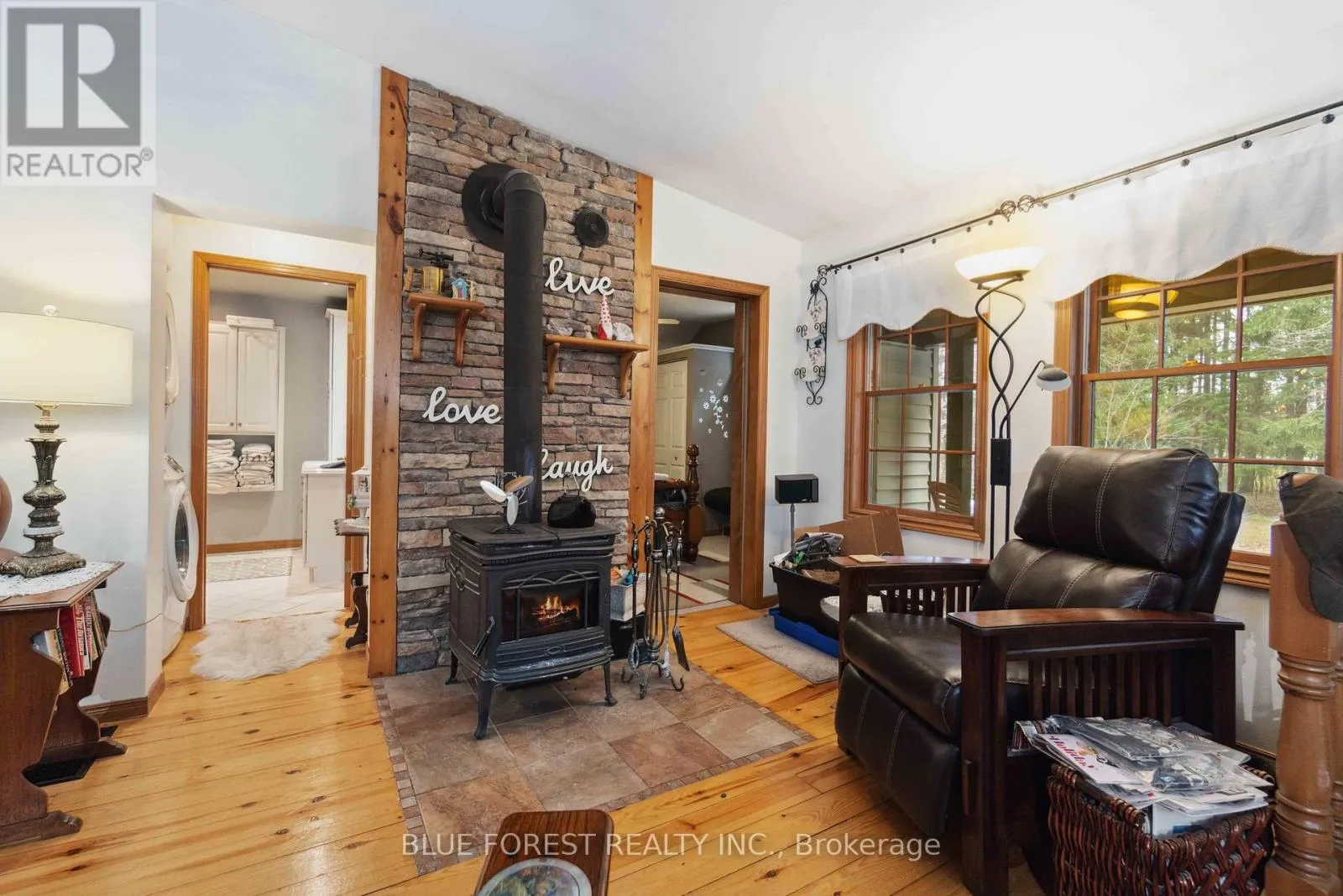 From Townline Rd 33 turn onto Wellington Rd 32. The property will be on the left side. Development Opportunity! This remarkable 22.8-acre property is located between Cambridge, Kitchener, Waterloo, and within easy reach of the GTA. Featuring an updated residential home sitting on cleared land of around 3 acres and 2,560 sq ft of living space. Outbuildings include a two-story barn with hydro, and a Quonset hut for equipment storage. The surrounding acreage includes two fields currently used for growing crops, estimated around 6-8 acres combined. Remaining area includes bush with a mix of cedar, birch and pine. With a prior severance history, the property has an application ready with the township to further sever an additional 3 acres with approx 300ft frontage on the properties west side along Ellis Rd (pending approvals). This unique property is a rare chance to own a versatile estate with future potential in a prime location. (id:27476)