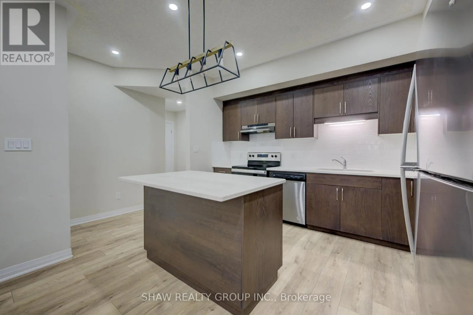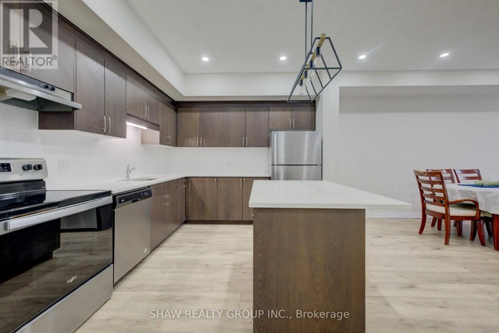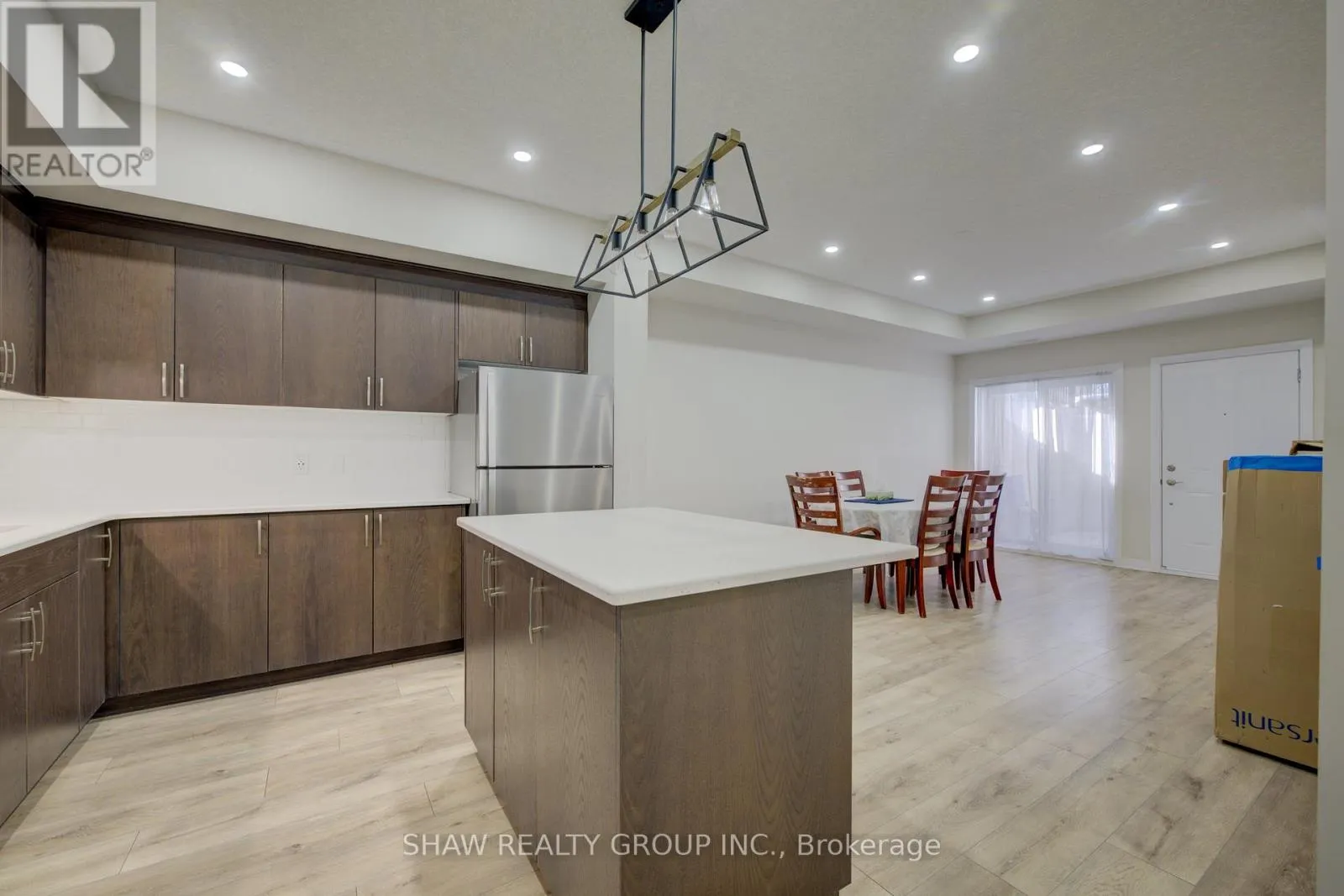 Hwy 24/Isherwood Ave This modern, upgraded end-unit townhome offers 3 spacious bedrooms, 2 full bathrooms, and 1,150 sq.ft. of thoughtfully designed living space with pot lights throughout. Located in a prime area of Cambridge, it delivers both comfort and convenience in a desirable community setting. Step into a bright, open-concept living room featuring soaring 9 ceilings and abundant natural light, with a sliding glass door that leads to your private patio backing onto peaceful greenspace. The stylish kitchen is perfect for entertaining, equipped with a large quartz island, granite countertops, stainless steel appliances, and generous cabinet space. The primary bedroom includes a walk-in closet and a sleek ensuite bathroom with a glass shower enclosure. Two additional well-sized bedrooms, a second full 4-piece bathroom, and in-suite laundry complete the layout. This home is carpet-free throughout for easy maintenance. Extras include one parking space and 1.5 Gbps high-speed unlimited internet, all included in the affordable condo fees. Ideally situated near Cambridge Centre, excellent schools, the Grand River, Galt Country Club, downtown Cambridge, Highway 24, and just a short drive to Hwy 401 this home is perfect for anyone seeking a low-maintenance, move-in-ready lifestyle. (id:27476)