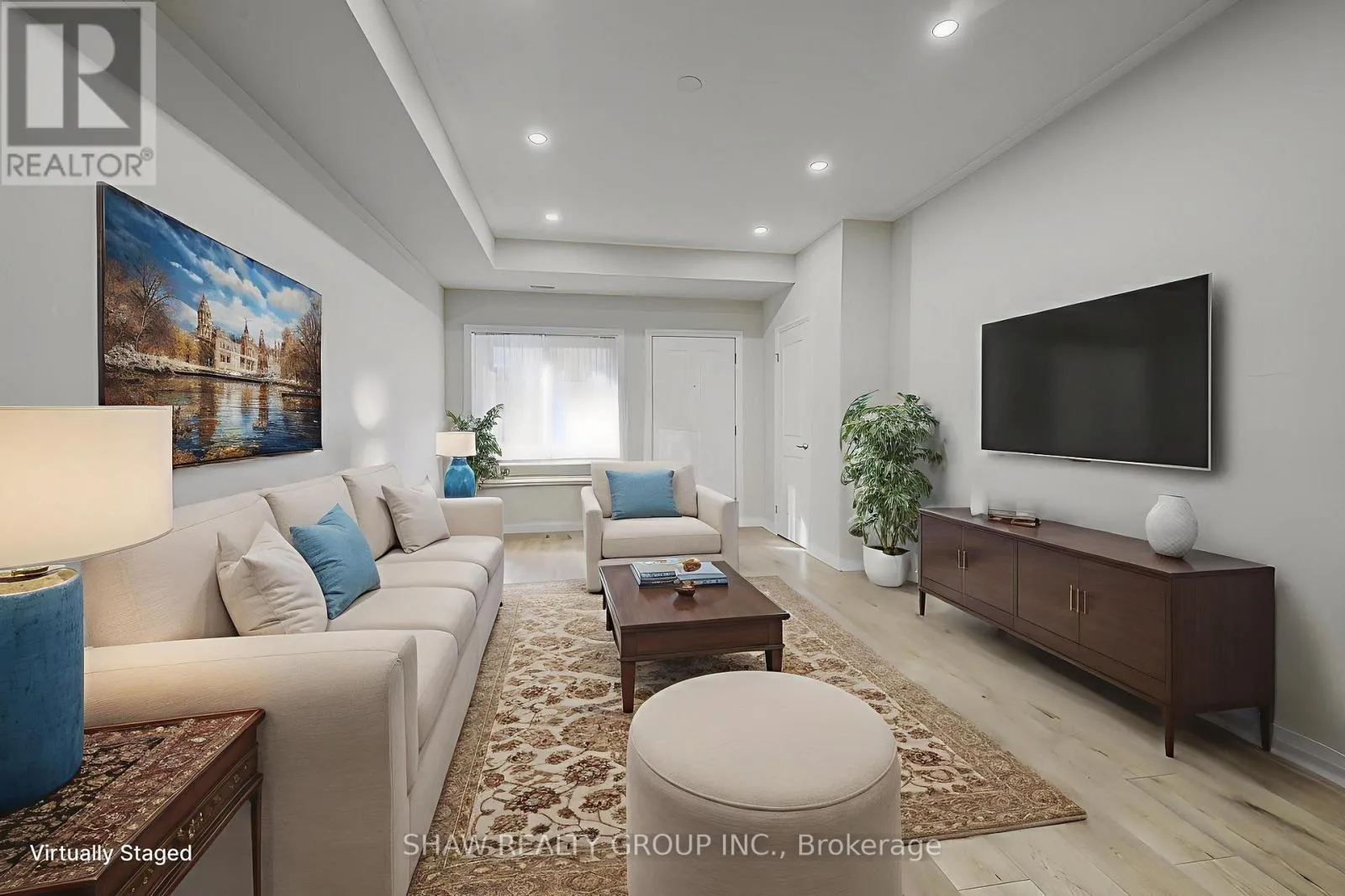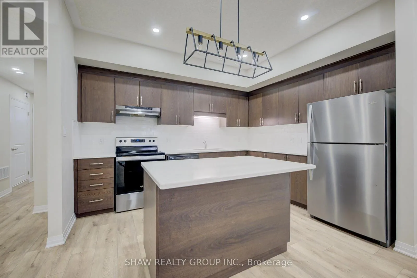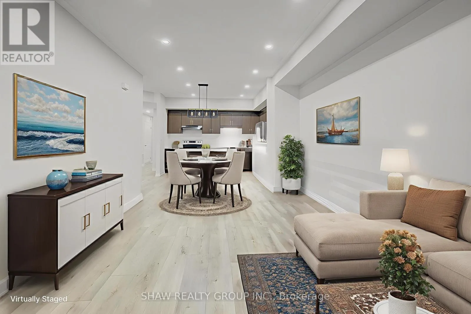 Hwy 24/Isherwood Ave This modern, upgraded end-unit townhome offers 3 spacious bedrooms, 2 full bathrooms, and 1,150 sq.ft. of thoughtfully designed living space with pot lights throughout. Located in a prime area of Cambridge, it delivers both comfort and convenience in a desirable community setting. Step into a bright, open-concept living room featuring soaring 9 ceilings and abundant natural light, with a sliding glass door that leads to your private patio backing onto peaceful greenspace. The stylish kitchen is perfect for entertaining, equipped with a large quartz island, granite countertops, stainless steel appliances, and generous cabinet space. The primary bedroom includes a walk-in closet and a sleek ensuite bathroom with a glass shower enclosure. Two additional well-sized bedrooms, a second full 4-piece bathroom, and in-suite laundry complete the layout. This home is carpet-free throughout for easy maintenance. Extras include one parking space and 1.5 Gbps high-speed unlimited internet, all included in the affordable condo fees. Ideally situated near Cambridge Centre, excellent schools, the Grand River, Galt Country Club, downtown Cambridge, Highway 24, and just a short drive to Hwy 401 this home is perfect for anyone seeking a low-maintenance, move-in-ready lifestyle. (id:27476)